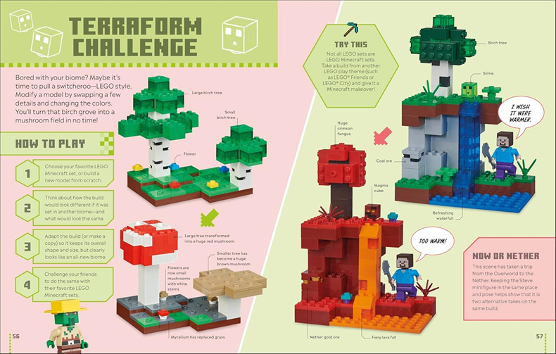 Grab this book and your own LEGO collection and get ready to level up the fun with your friends and family! Challenge friends to a Nether minecart race. Find the odd crafting block out. Design your own Minecraft-themed fairground and much more!