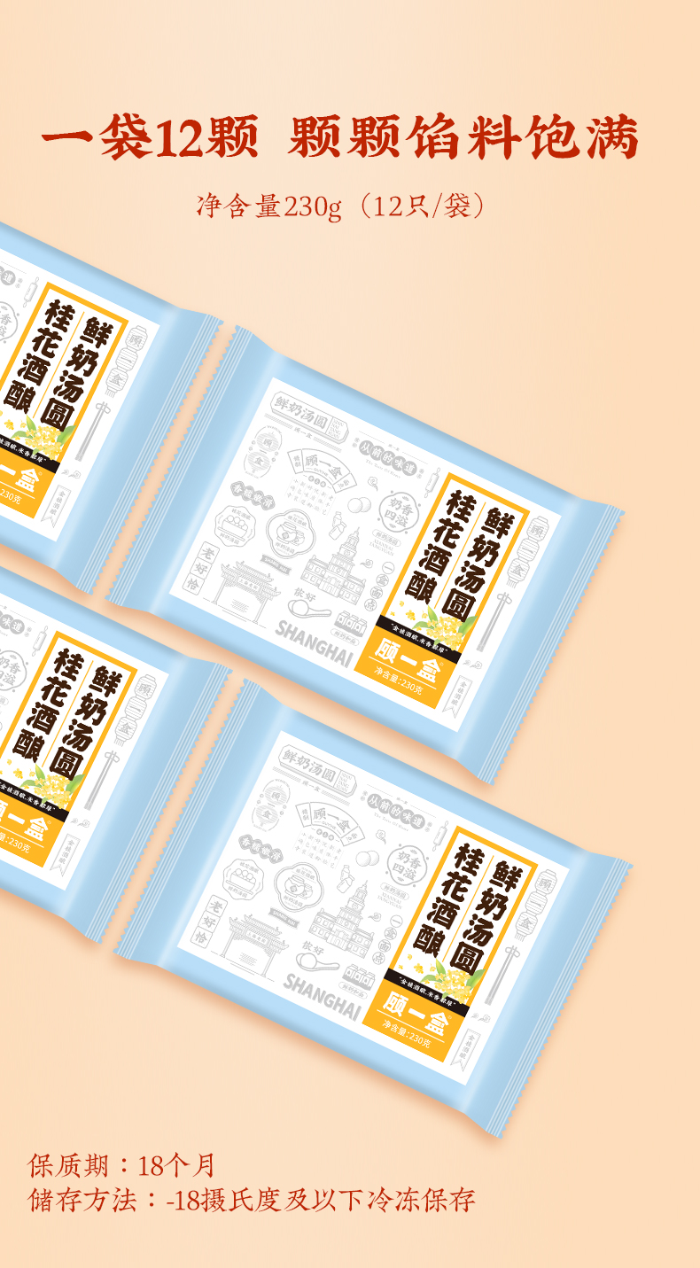 【元宵】顾一盒 桂花酒酿鲜奶汤圆 230g*3/230g*4