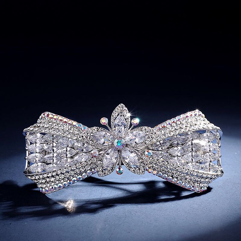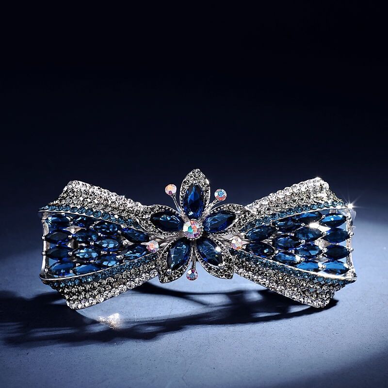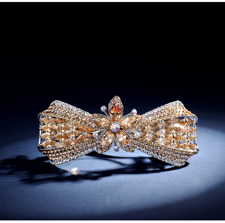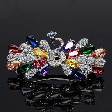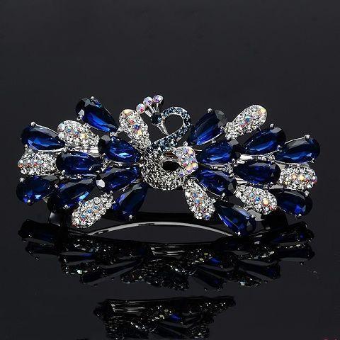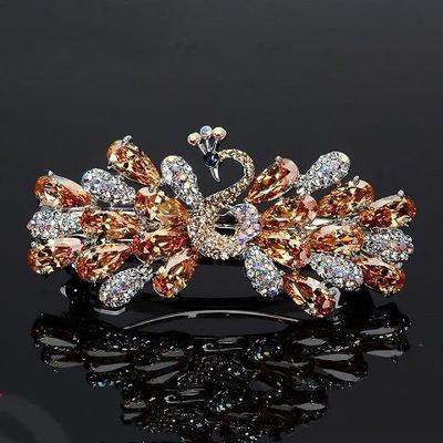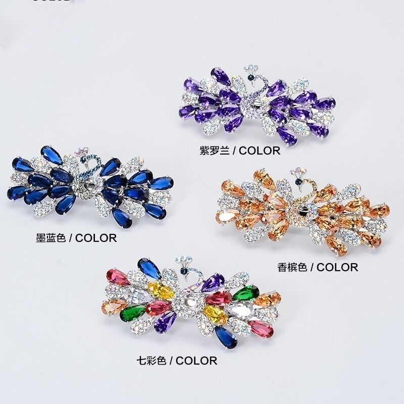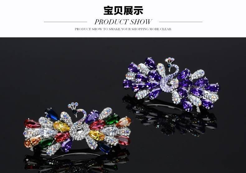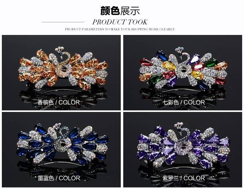 韩国头饰后脑勺弹簧夹孔雀蝴蝶顶夹水钻发饰