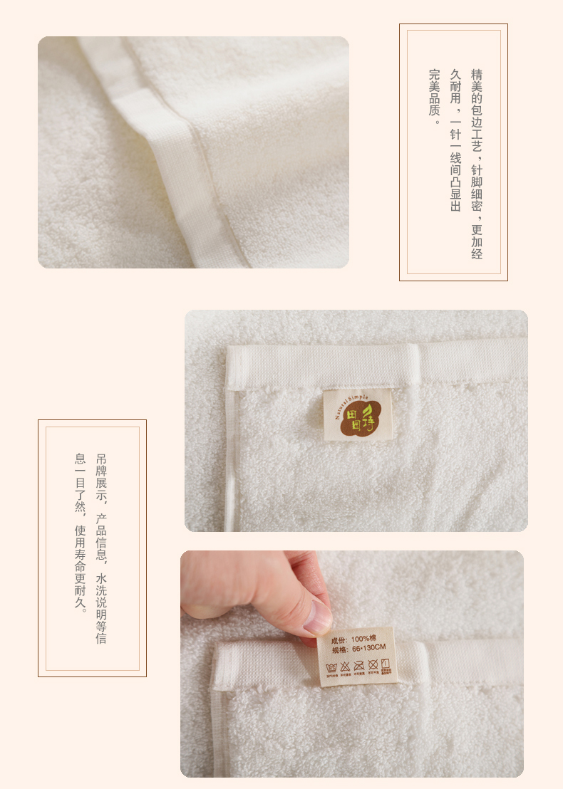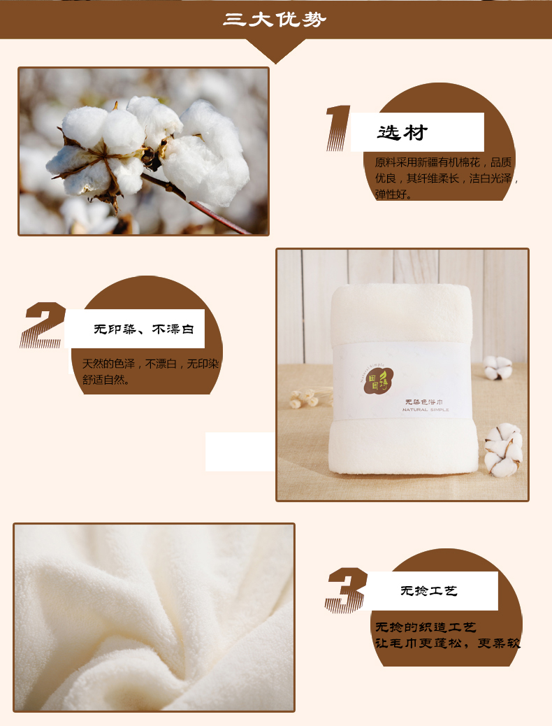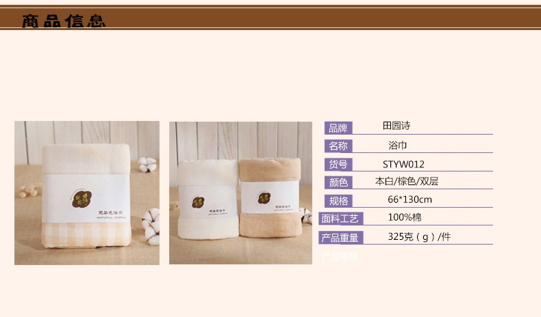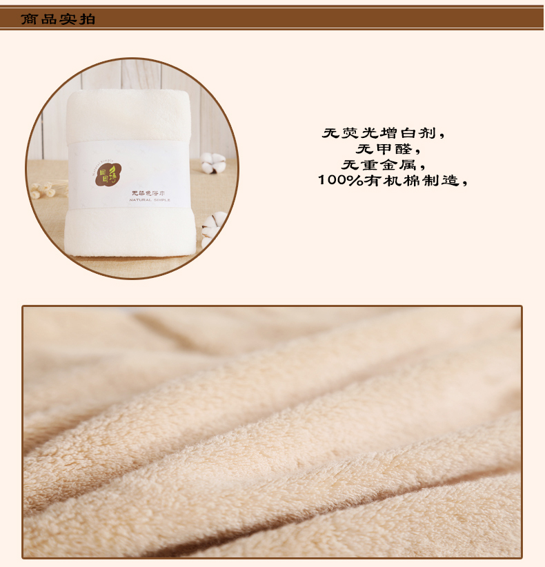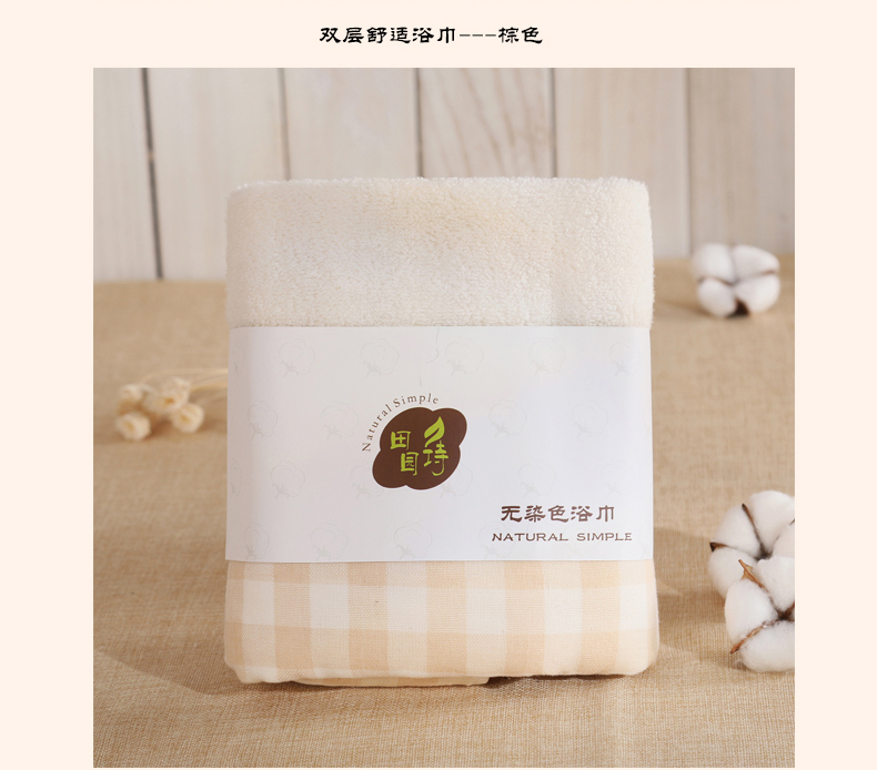 田园诗有机棉浴巾无捻棕色浴巾70cm*140cm