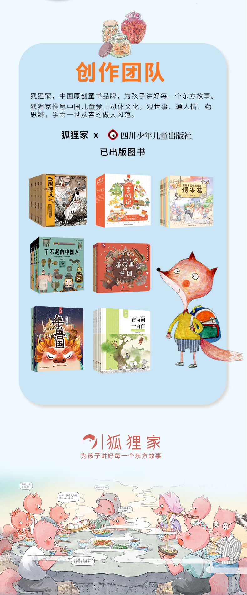- 狐狸家专注于东方文化儿童教育,执念于“为孩子讲好每一个东方故事”。 惟愿中国儿童爱上母体文化,学会感时、惜物、得体,学会一世从容的做人风范。