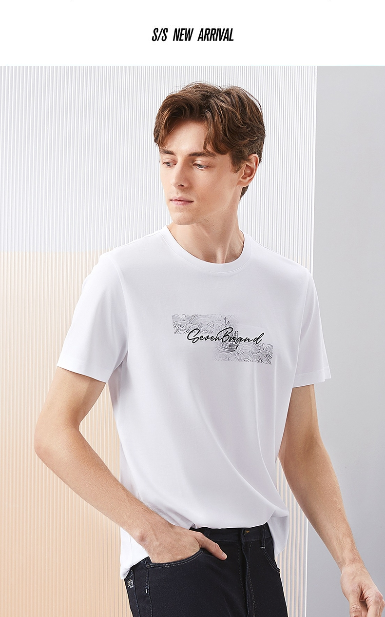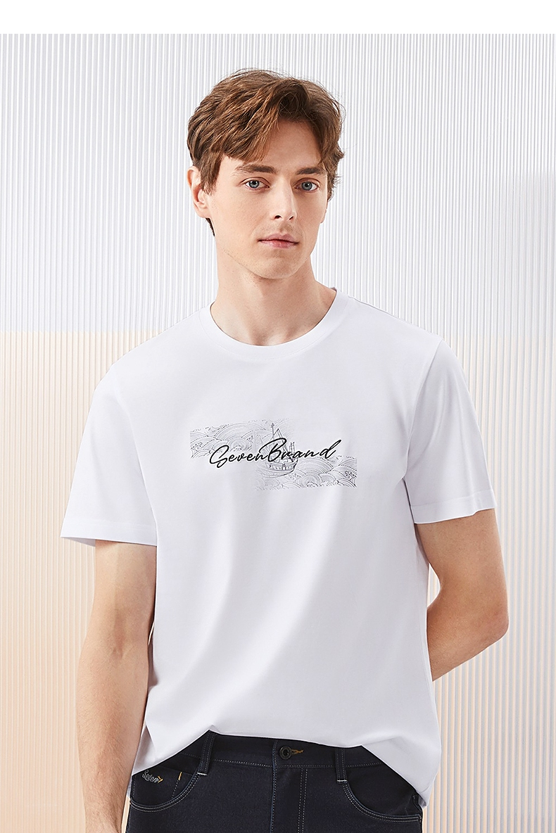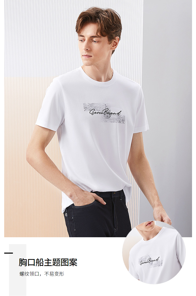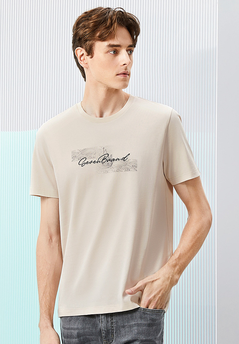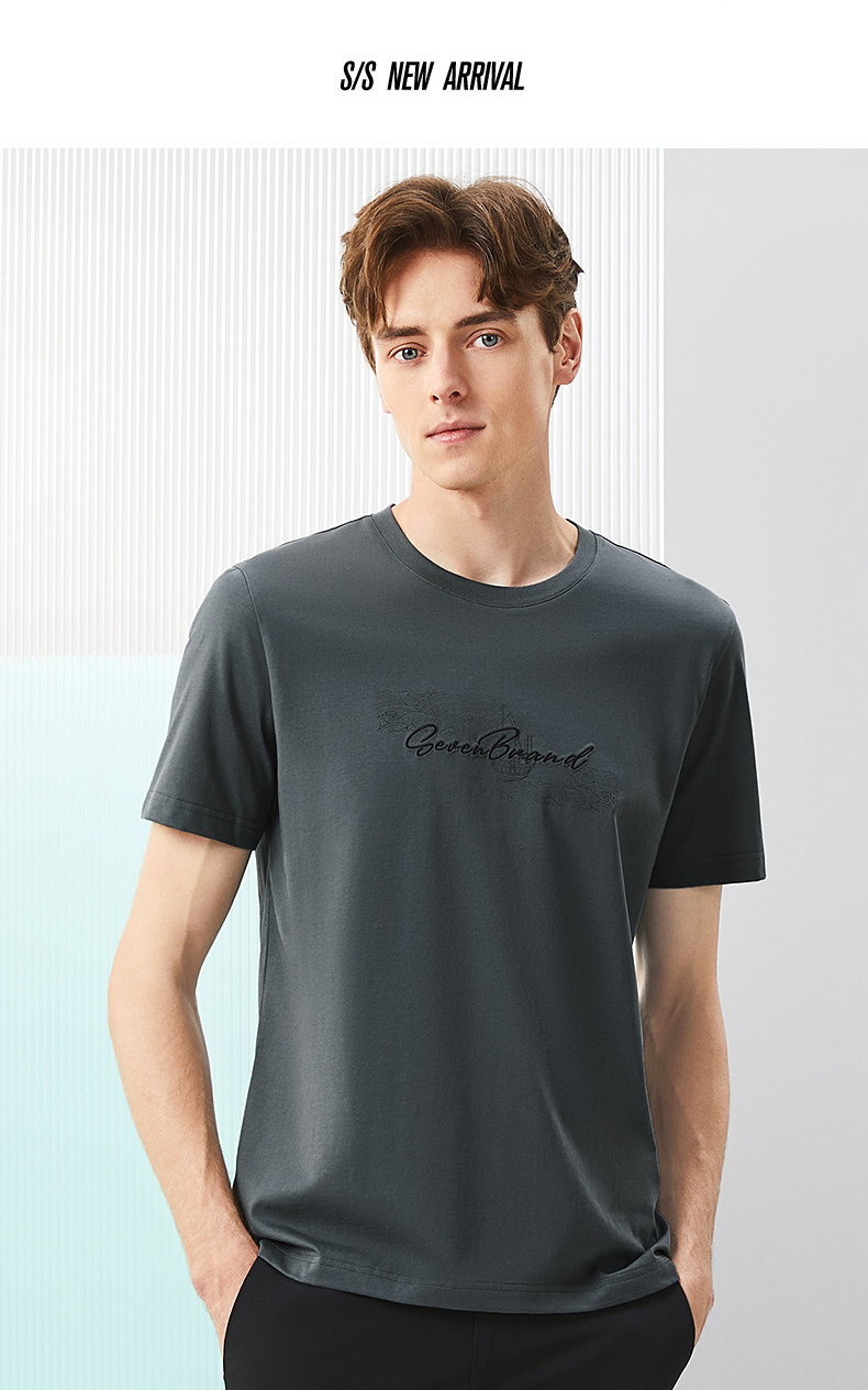 【冰茶素纤维】柒牌凉感短袖T恤男2024夏季新款印绣时尚休闲上衣126T71380