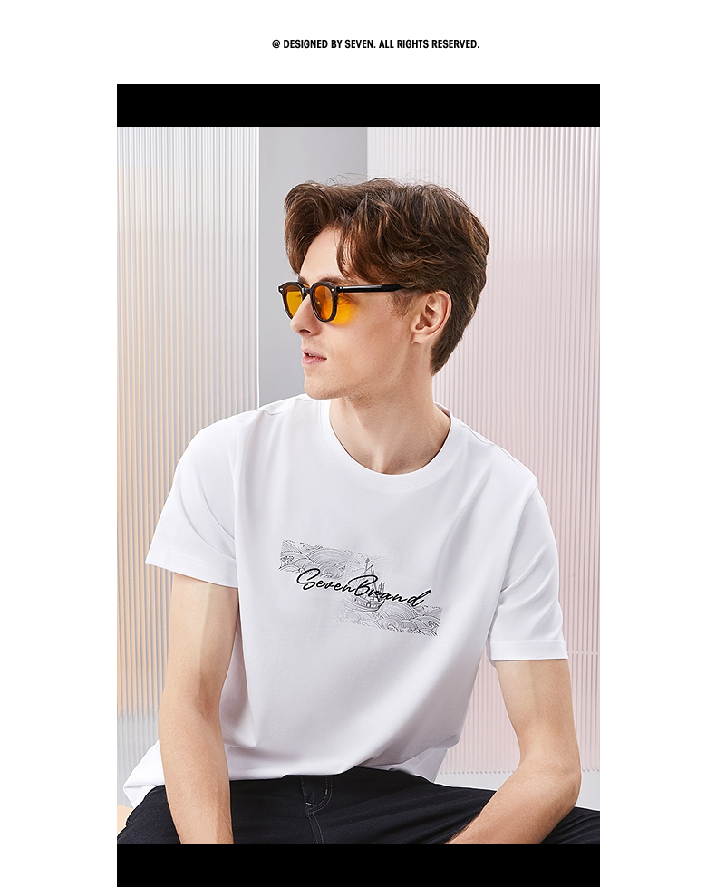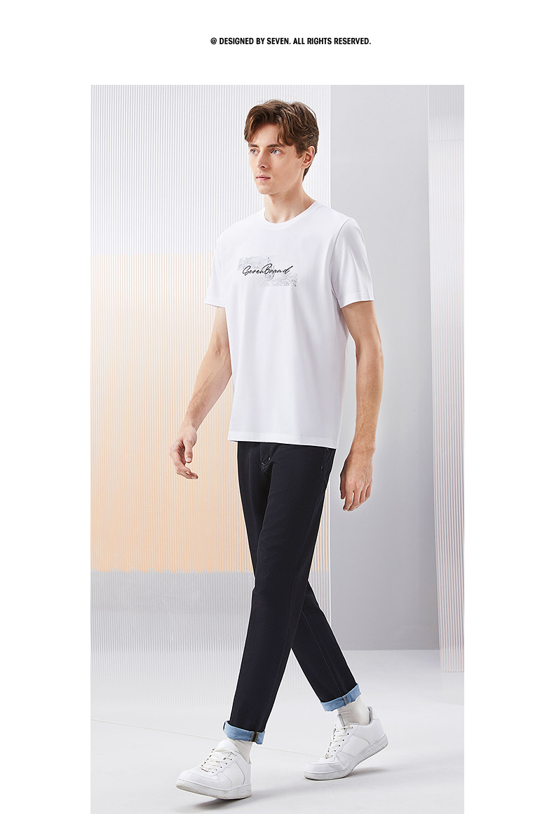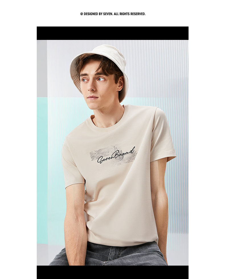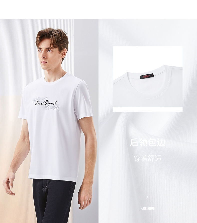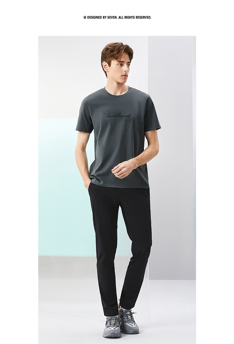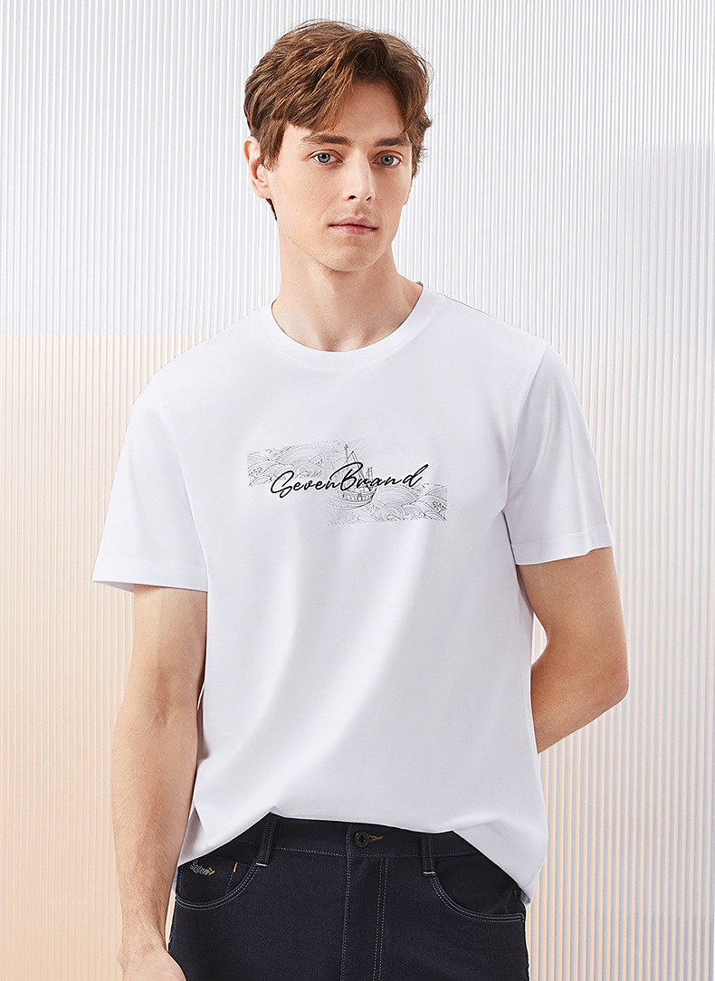 【冰茶素纤维】柒牌凉感短袖T恤男2024夏季新款印绣时尚休闲上衣126T71380