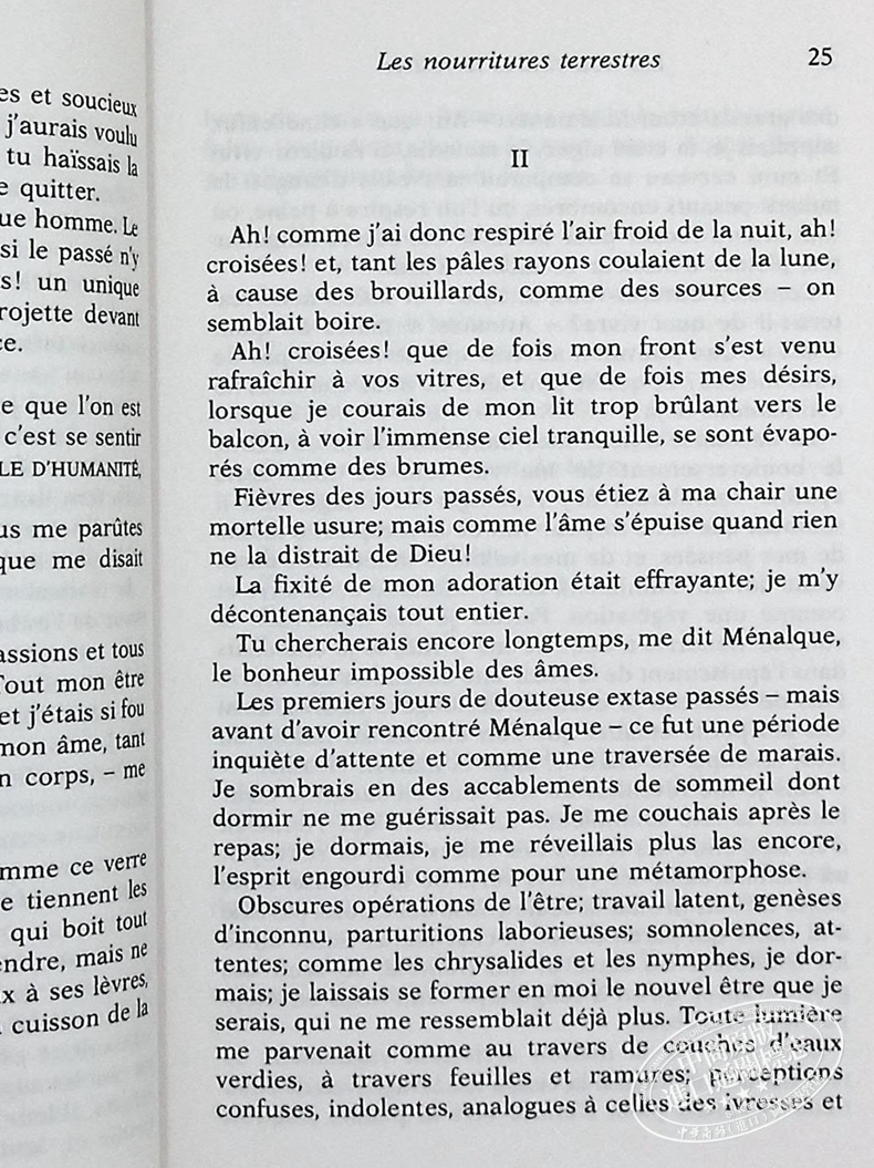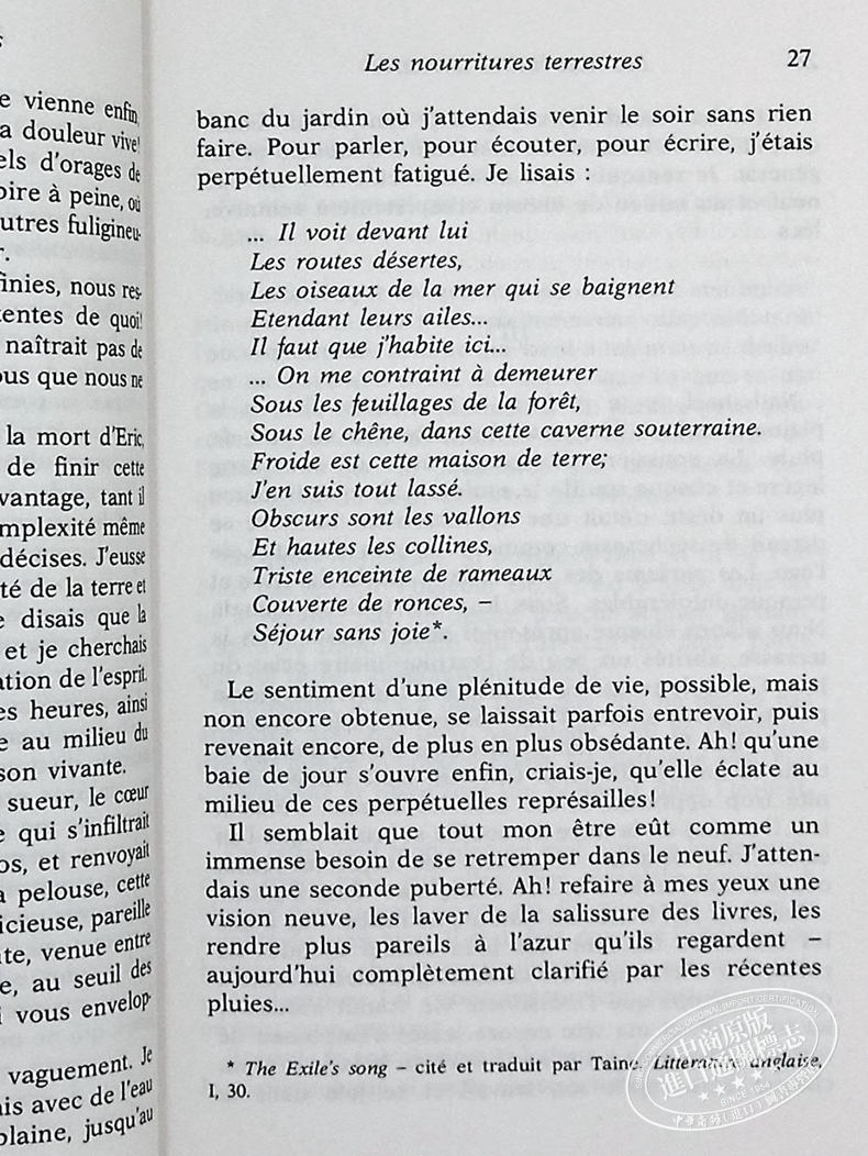 【中商原版】【法国法文版】安德烈·纪德:人间食粮 法文原版 Les nourritures terrestres 法文文学