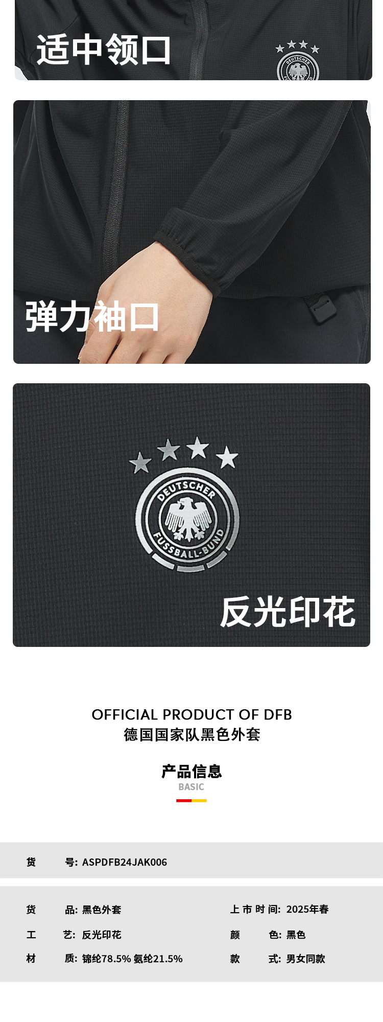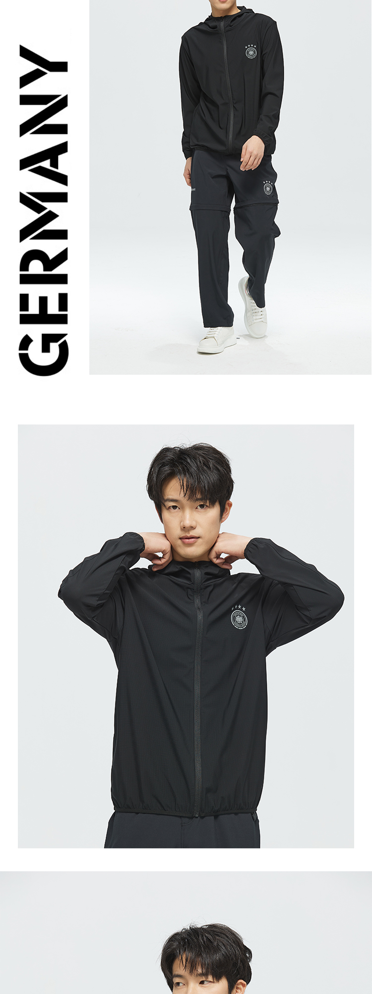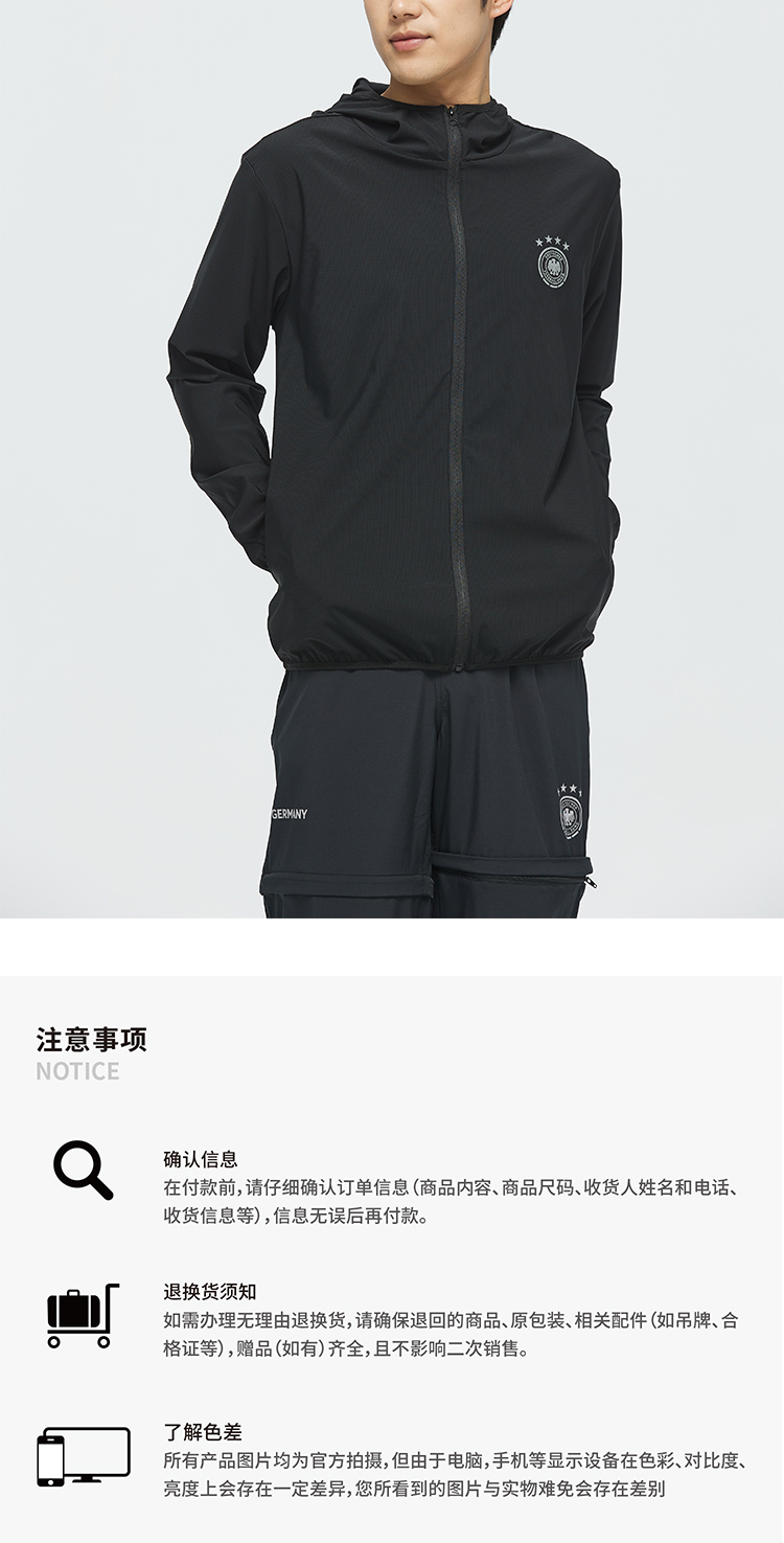 【官方正版】德国国家队 | 春夏季黑色透气速干防晒连帽外套