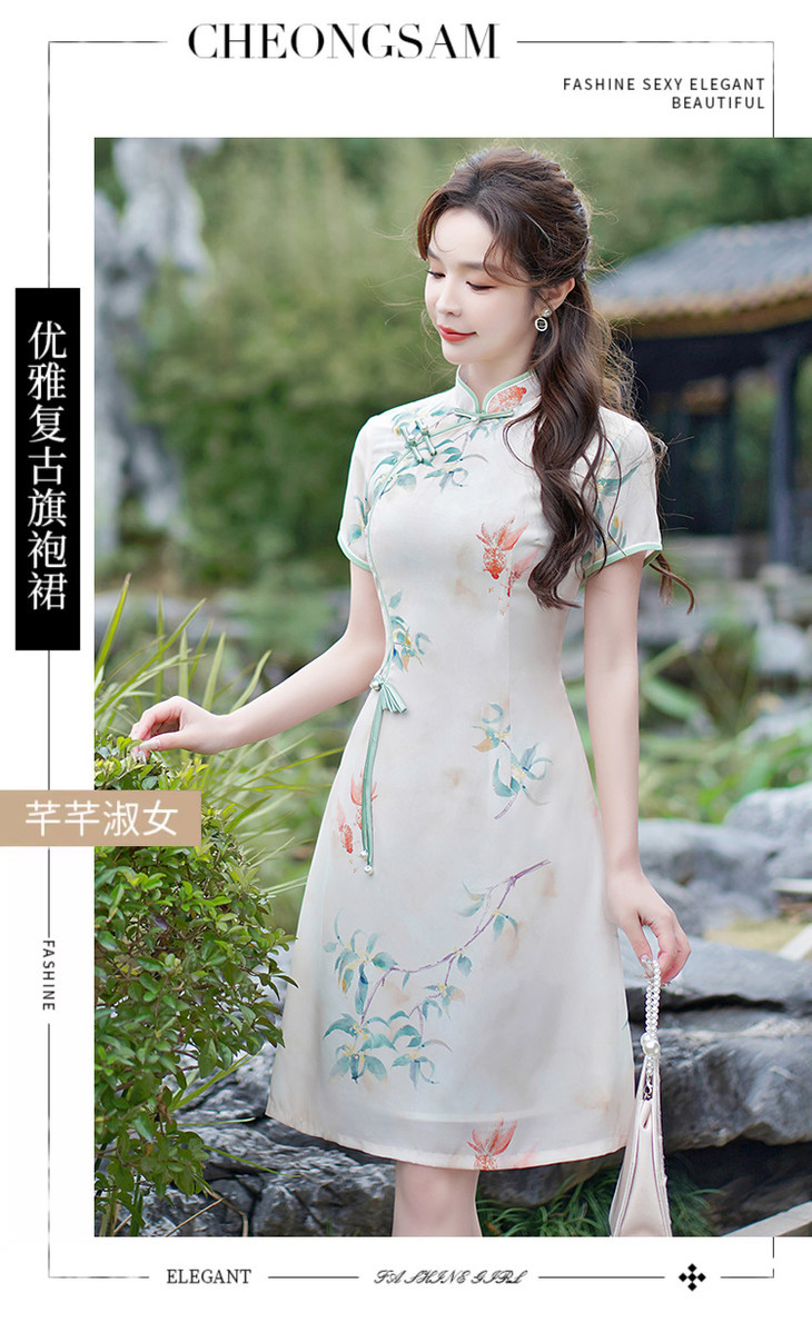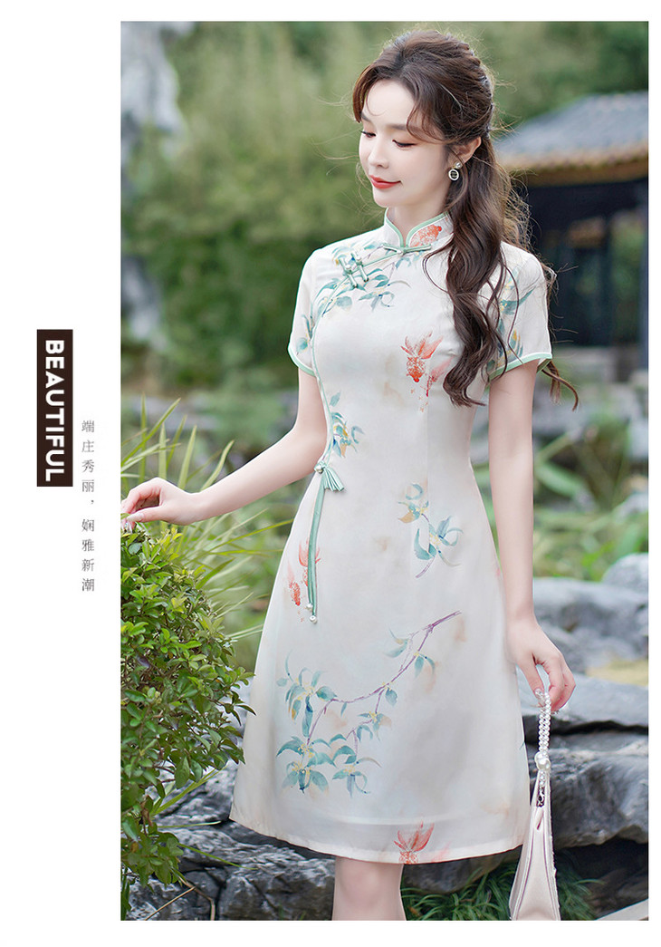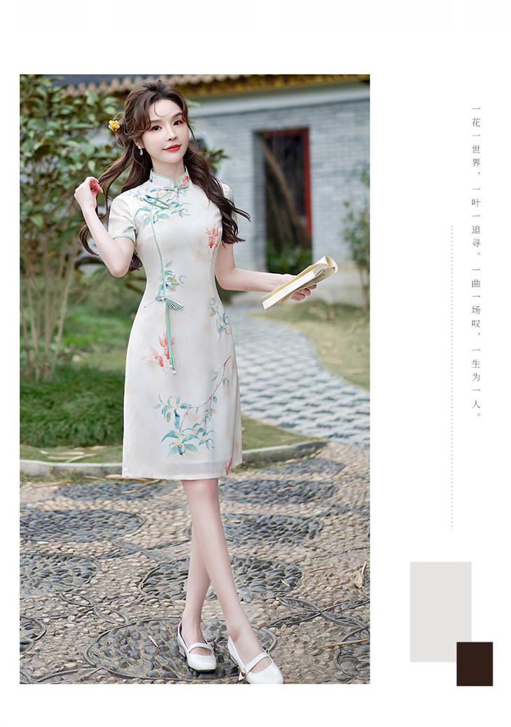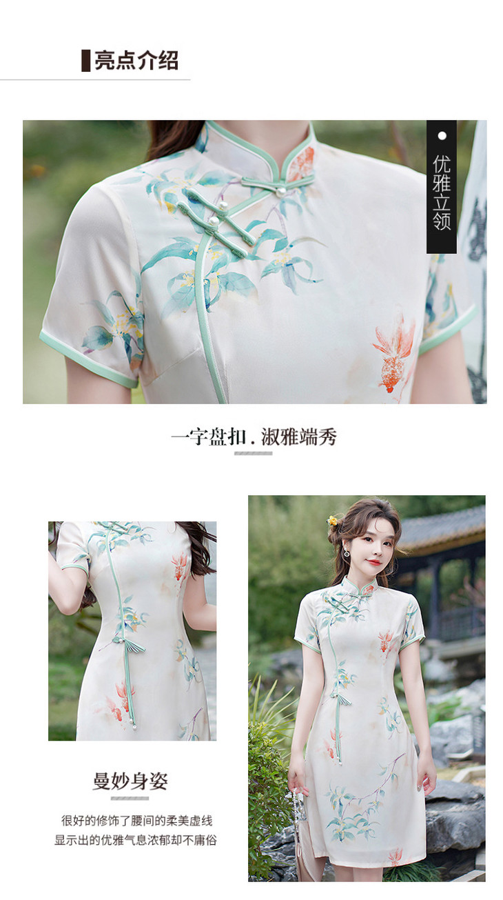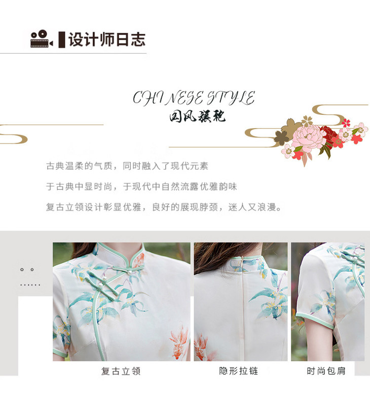 秋冬新款,气质仿水貂复合超柔中长款女士清新年轻款改良旗袍MLS-6826