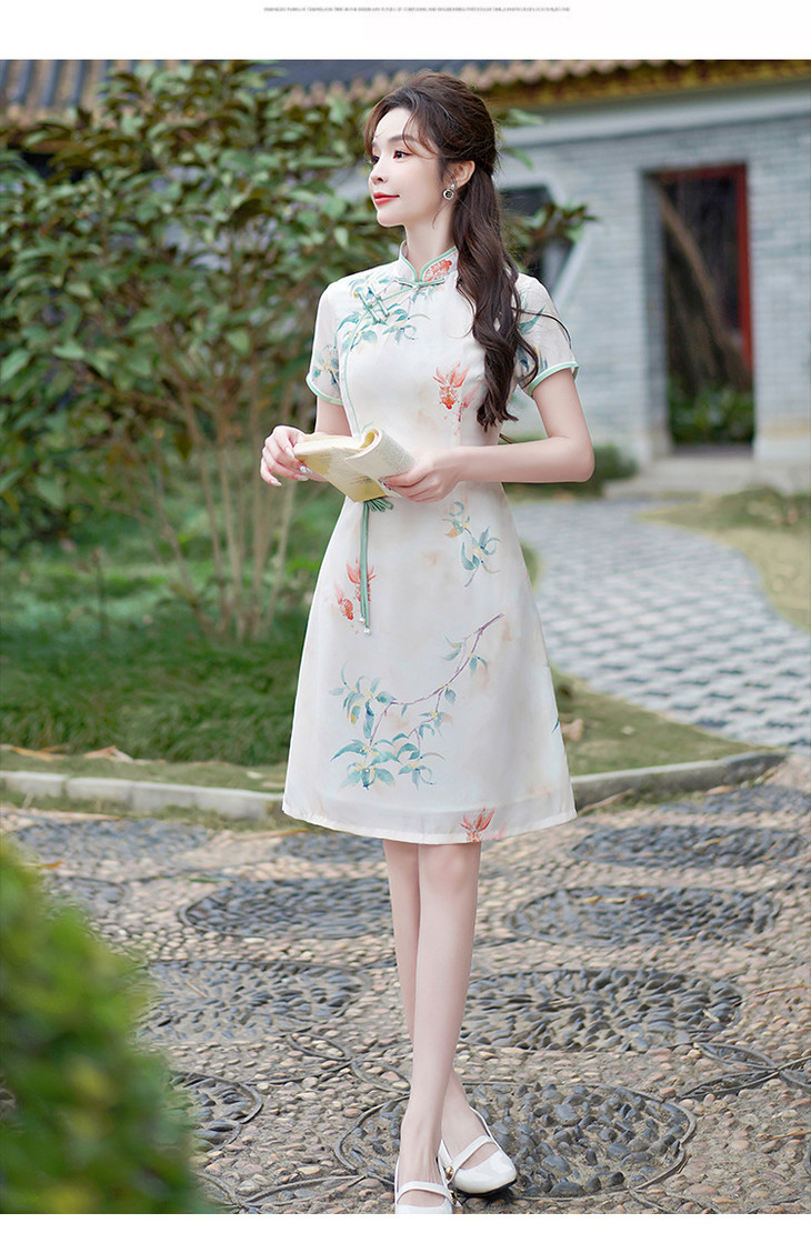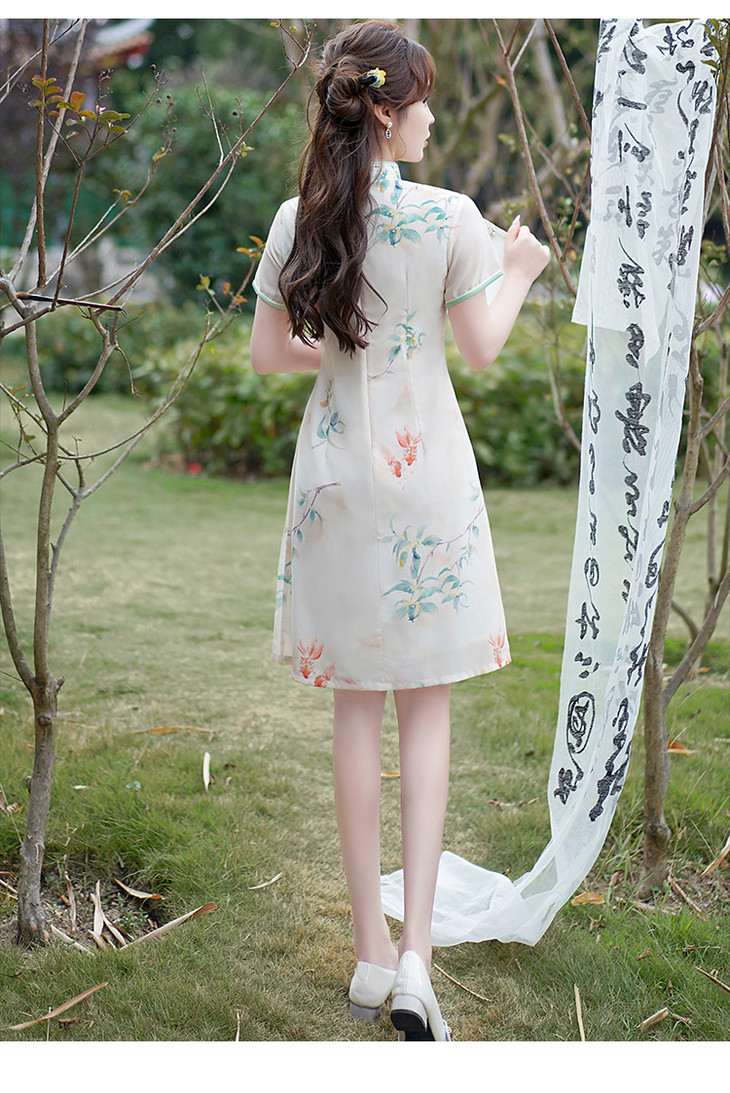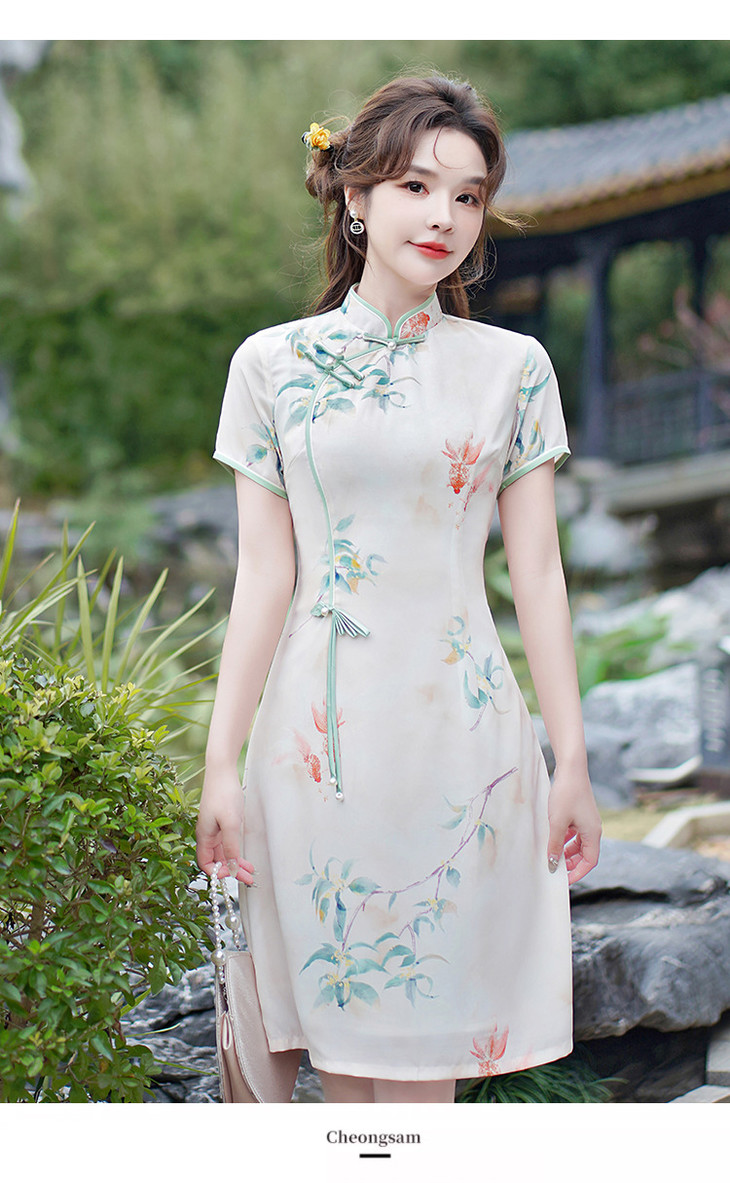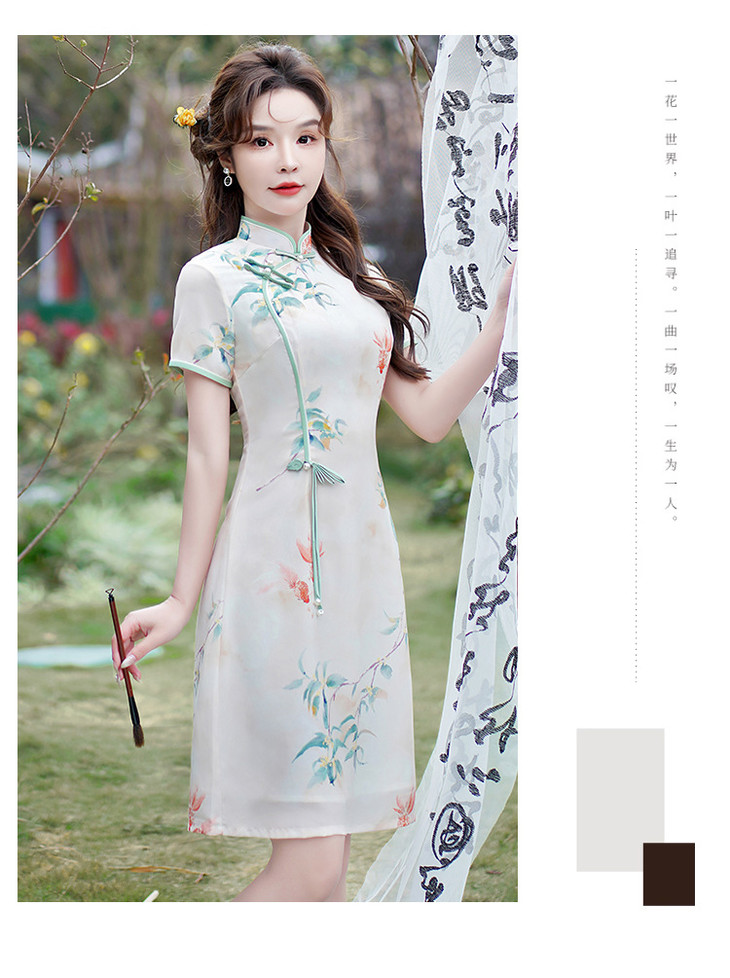 秋冬新款,气质仿水貂复合超柔中长款女士清新年轻款改良旗袍MLS-6826