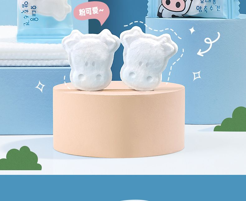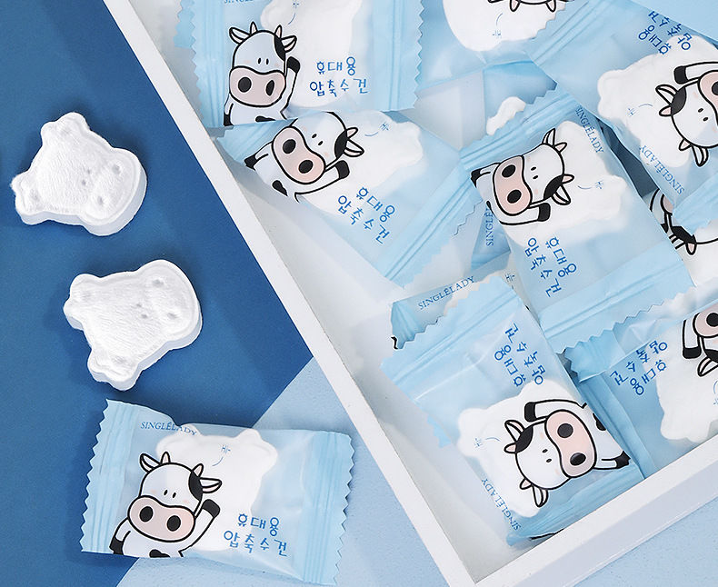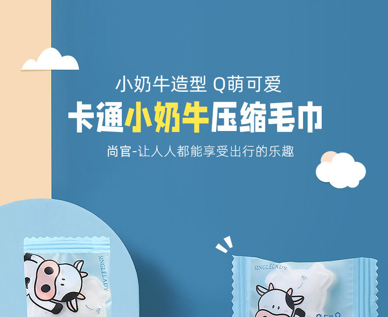 【爆款超低价预售 急单慎拍】尚官Q萌小牛一次性压缩毛巾洗脸巾旅行加大加厚便携洁面巾 小方巾
