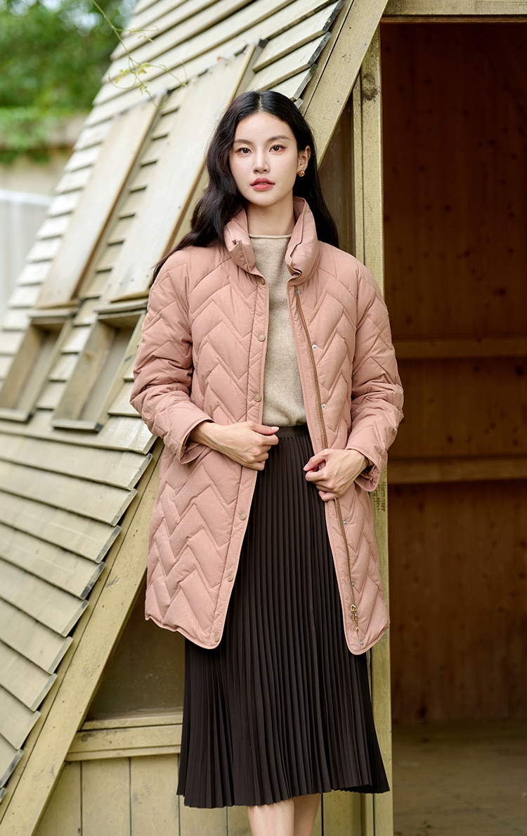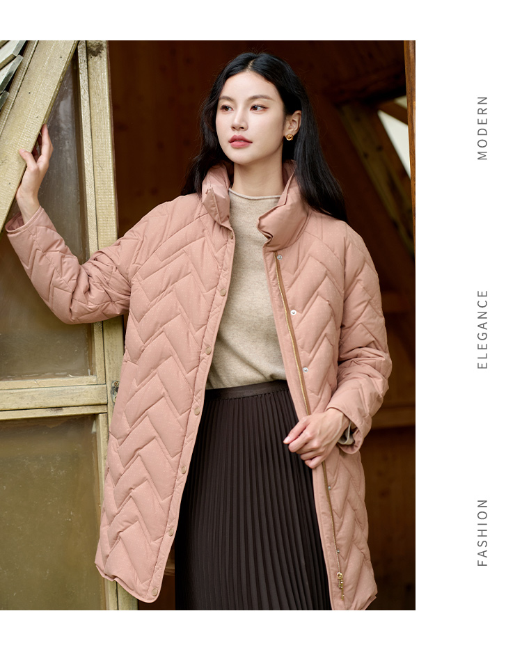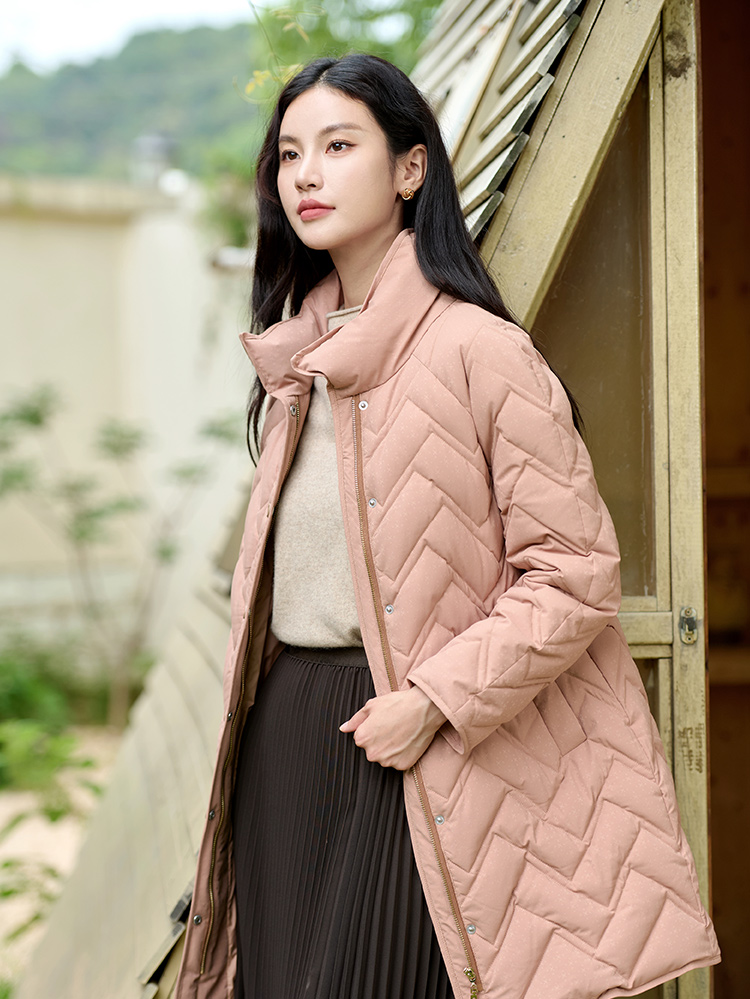 佐尔美冬季新款中长款立领时尚双穿波点羽绒服女E94YY42