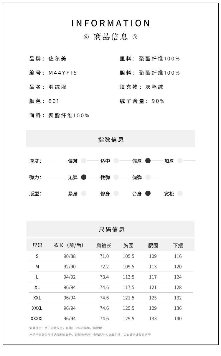 佐尔美冬季新款 经典气质羽绒服女新年礼M44YY15