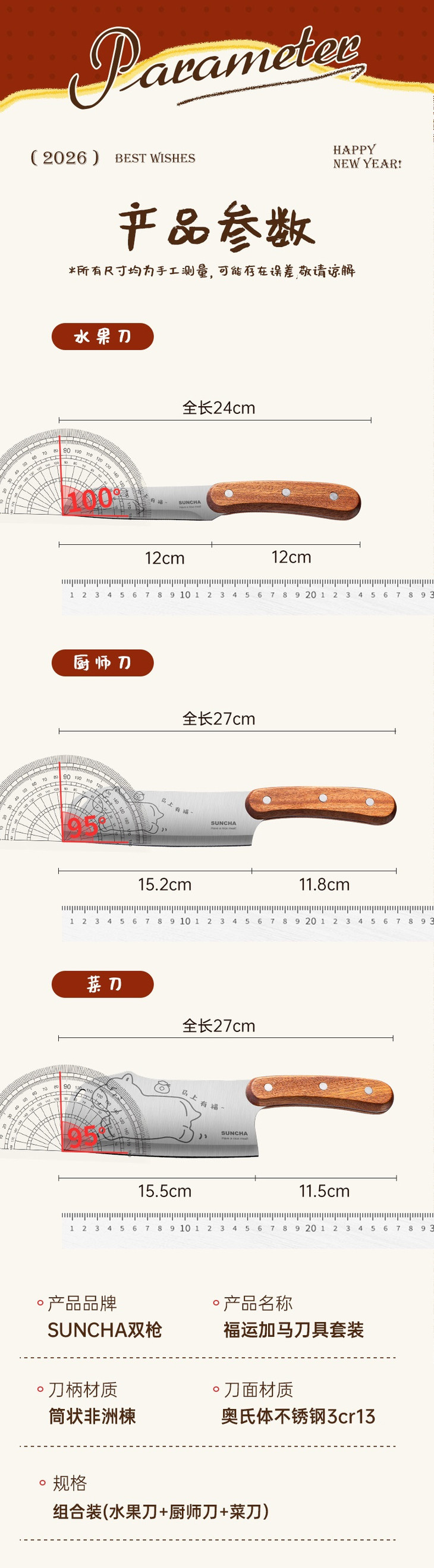 🌟3把组合39.9秒杀!【双枪福气加马套刀】🥰水果刀+切片刀+菜刀!!30年厨具品牌,💪好口碑放心入! 新的一年,🥳就要福运福气都加满~