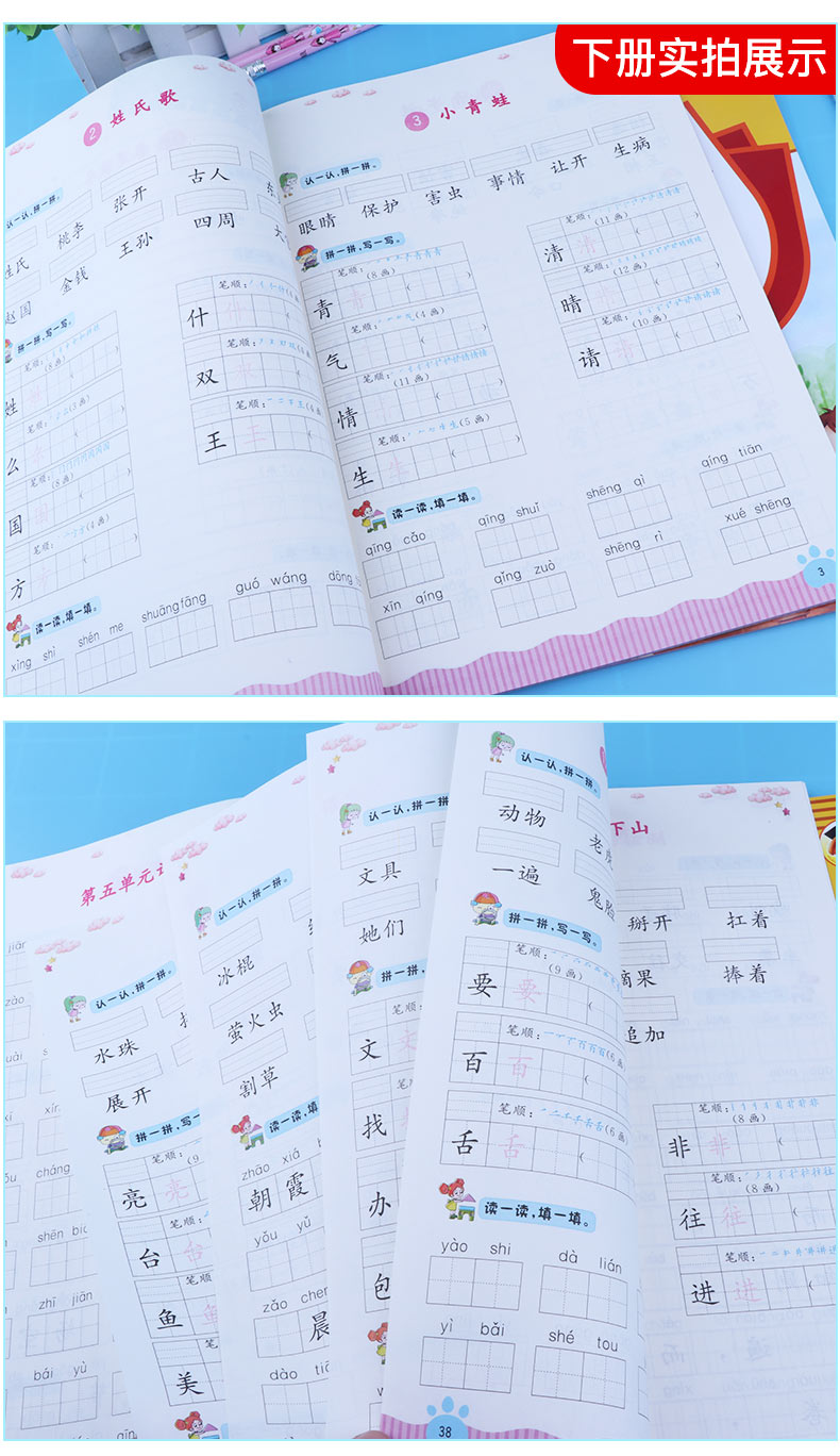 一年级看拼音写词语生字注音部编版语文人教版小学1年级上册下册专项生字练习册小学生默写能手写字强化训练小学生练习册练习题
