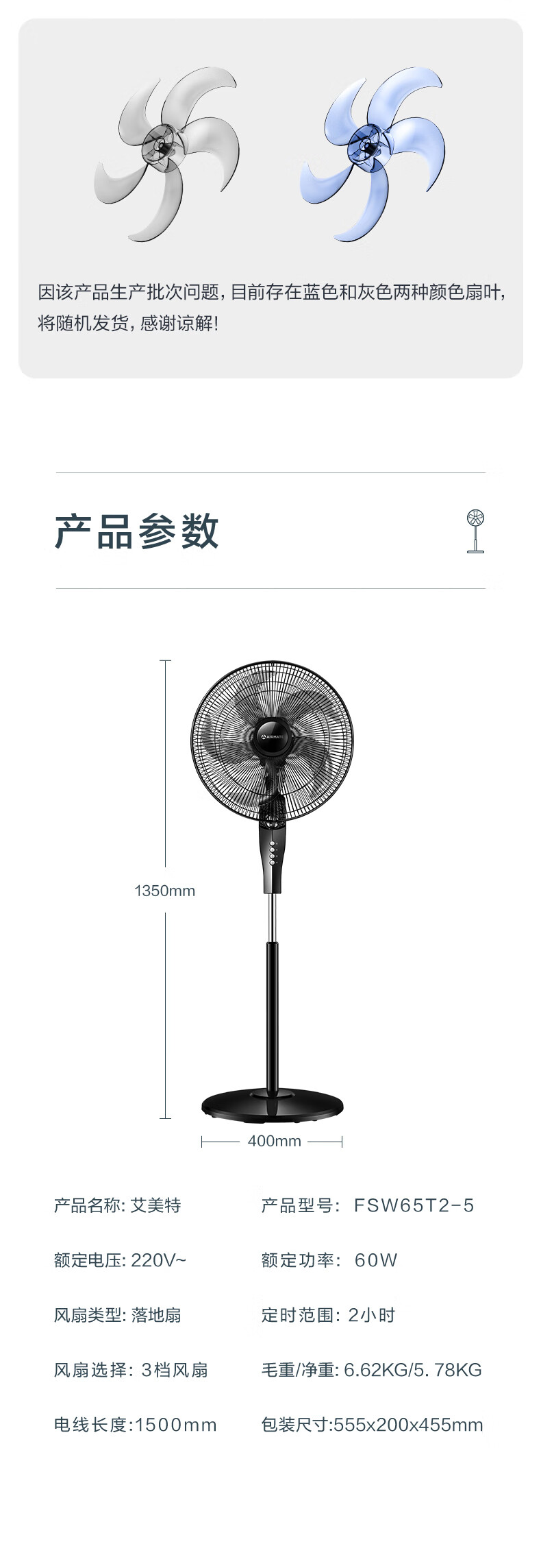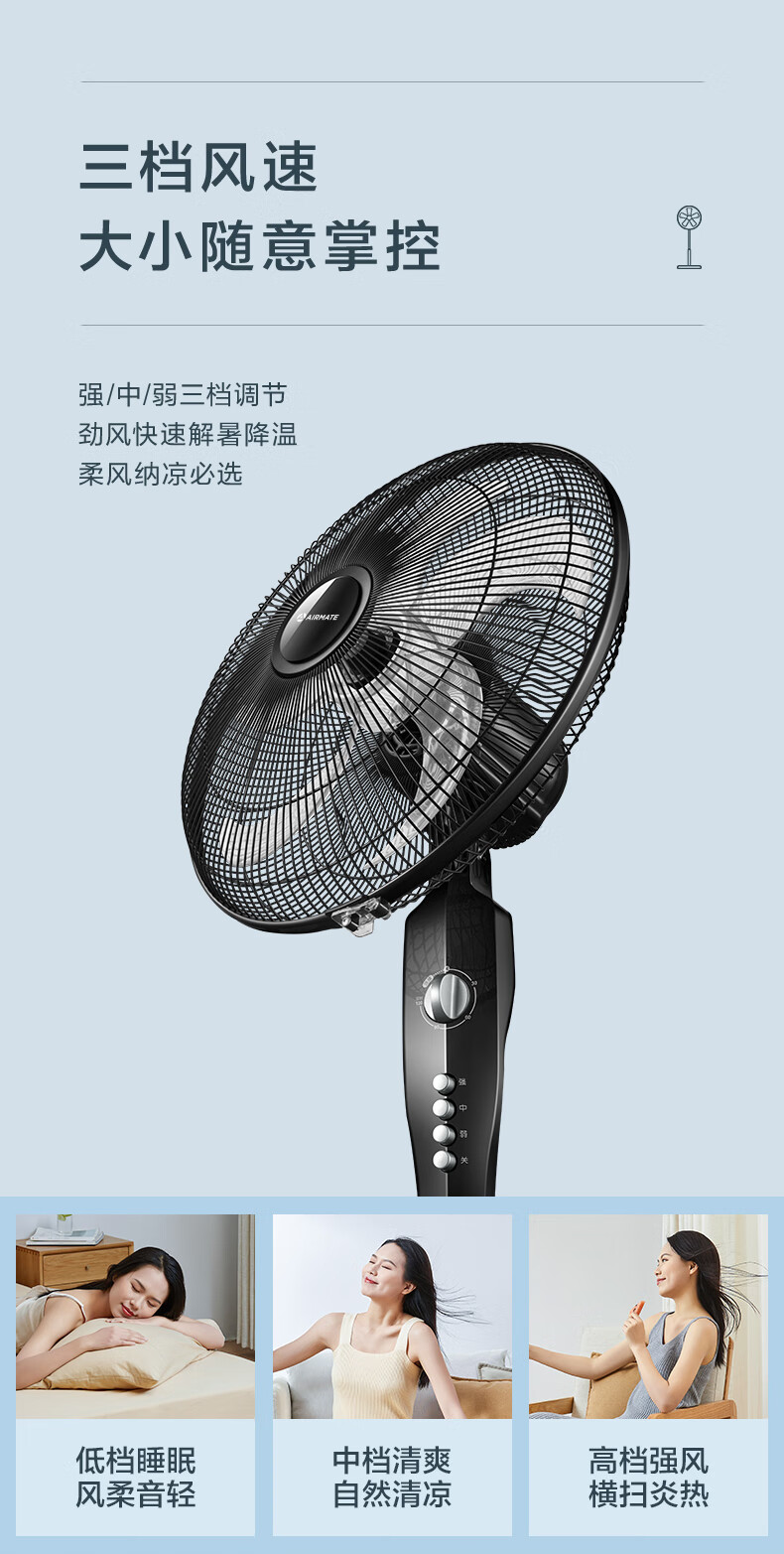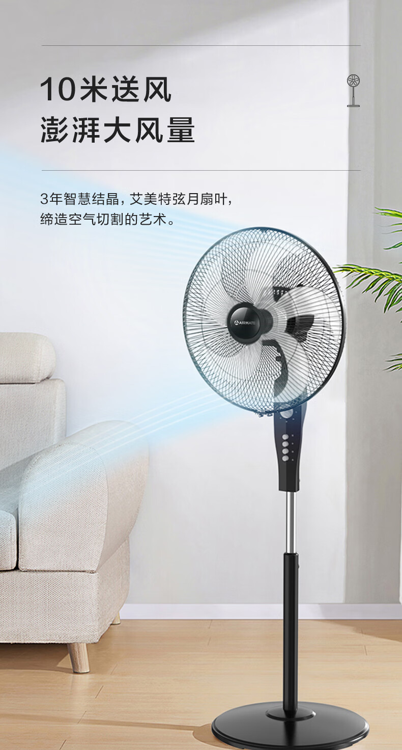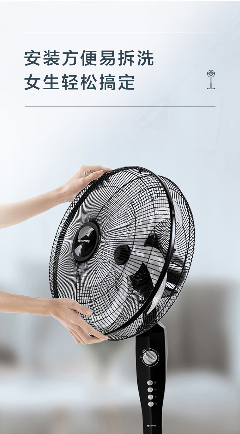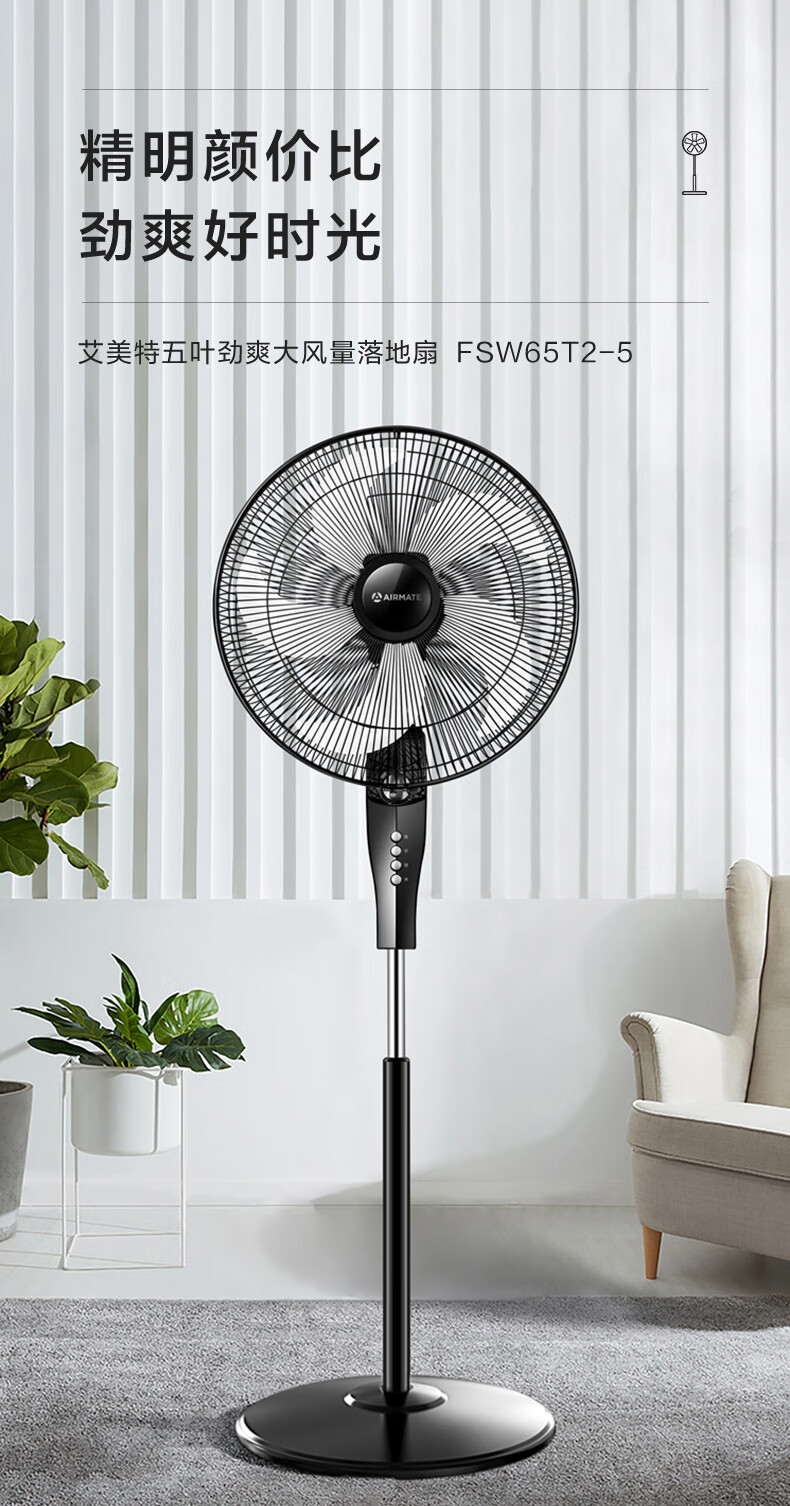 艾美特(AIRMATE)五叶 家用电风扇 大风量 机械立式 落地扇 轻音节能 柔风定时电扇宿舍降温风扇 FSW65T2-5