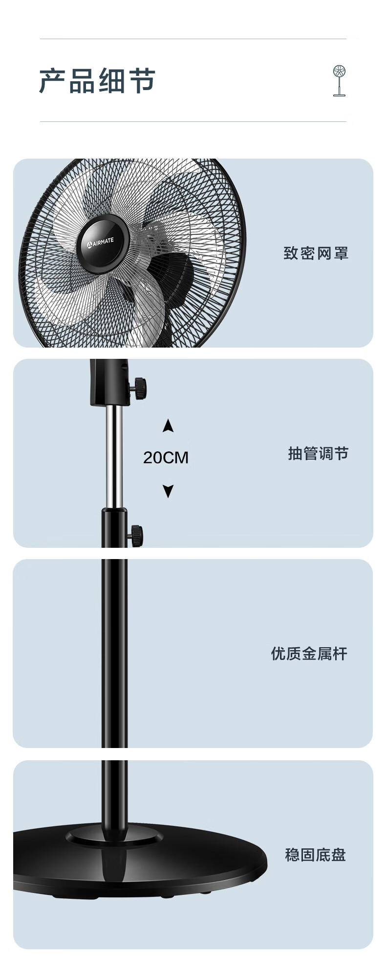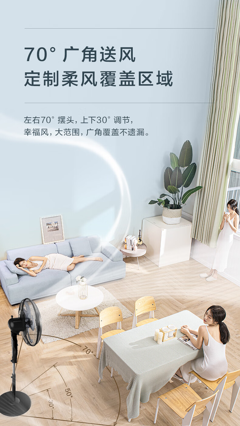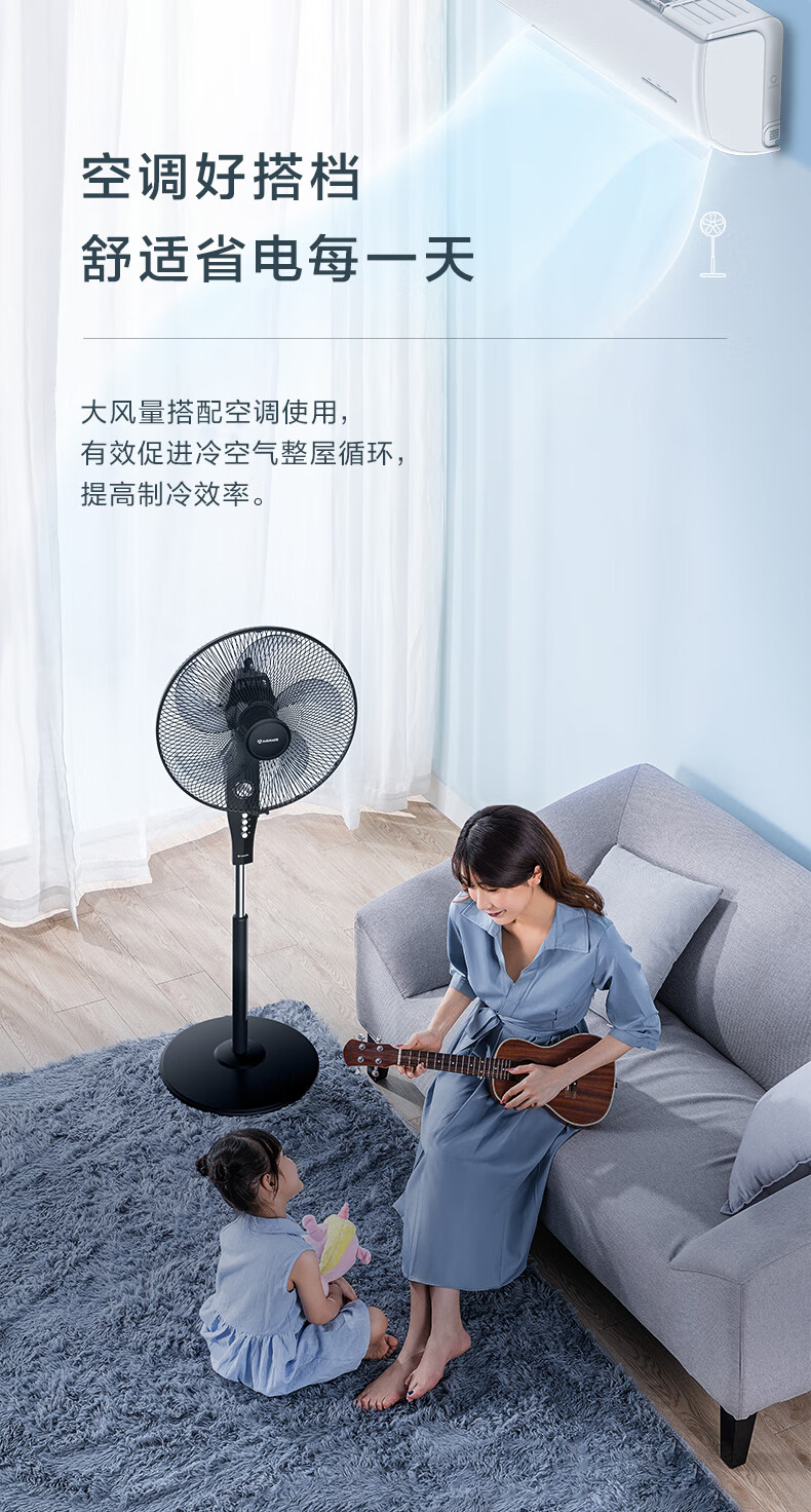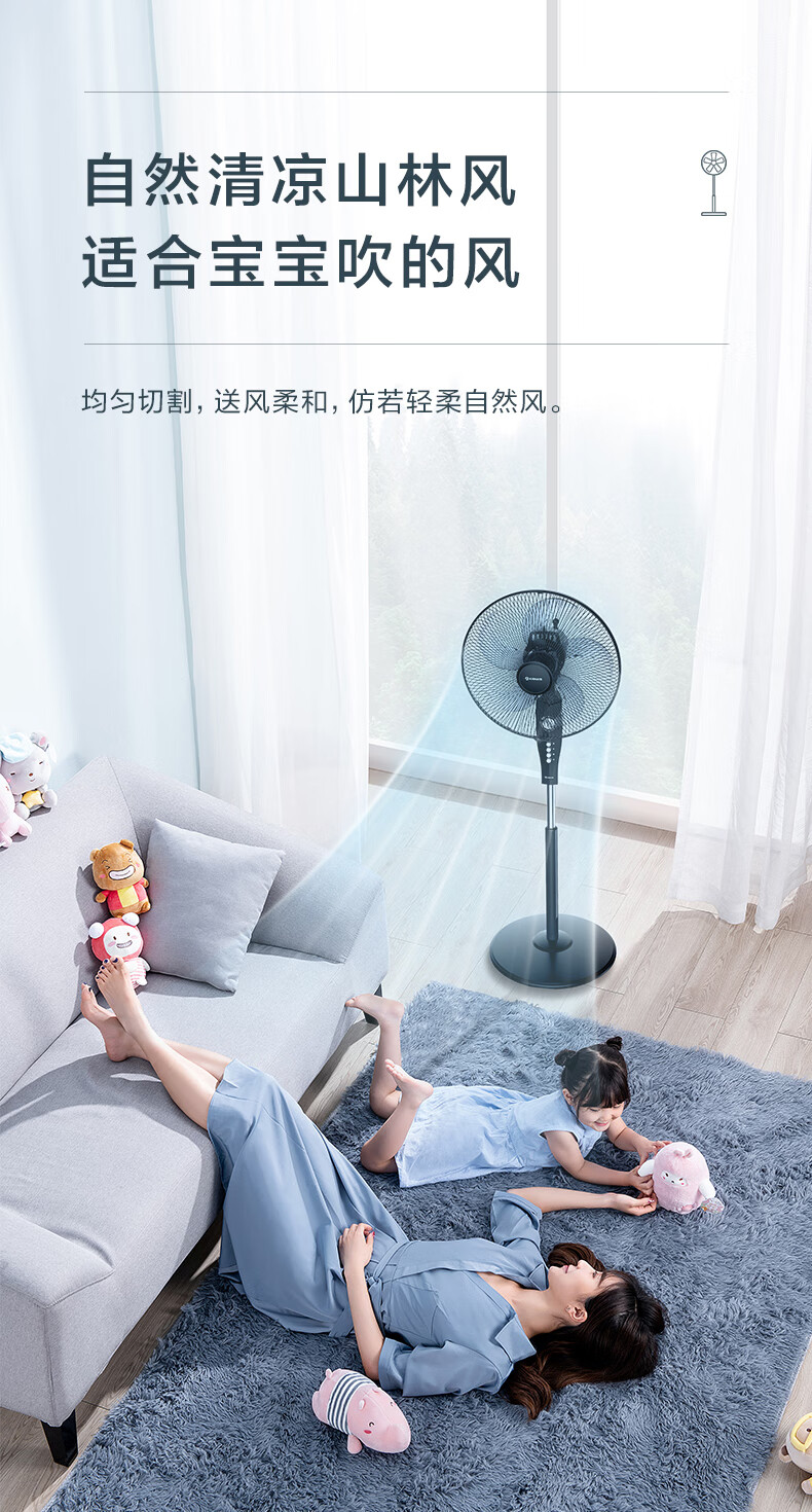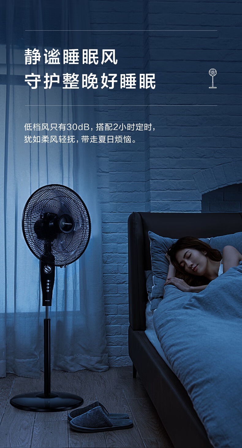 艾美特(AIRMATE)五叶 家用电风扇 大风量 机械立式 落地扇 轻音节能 柔风定时电扇宿舍降温风扇 FSW65T2-5