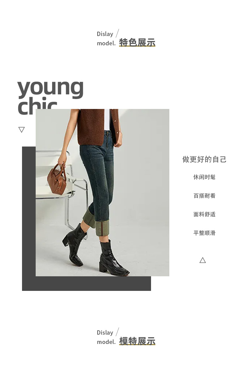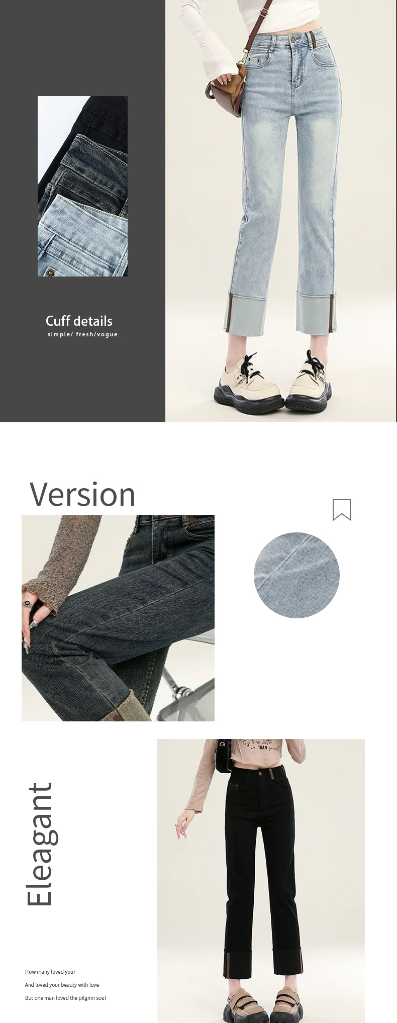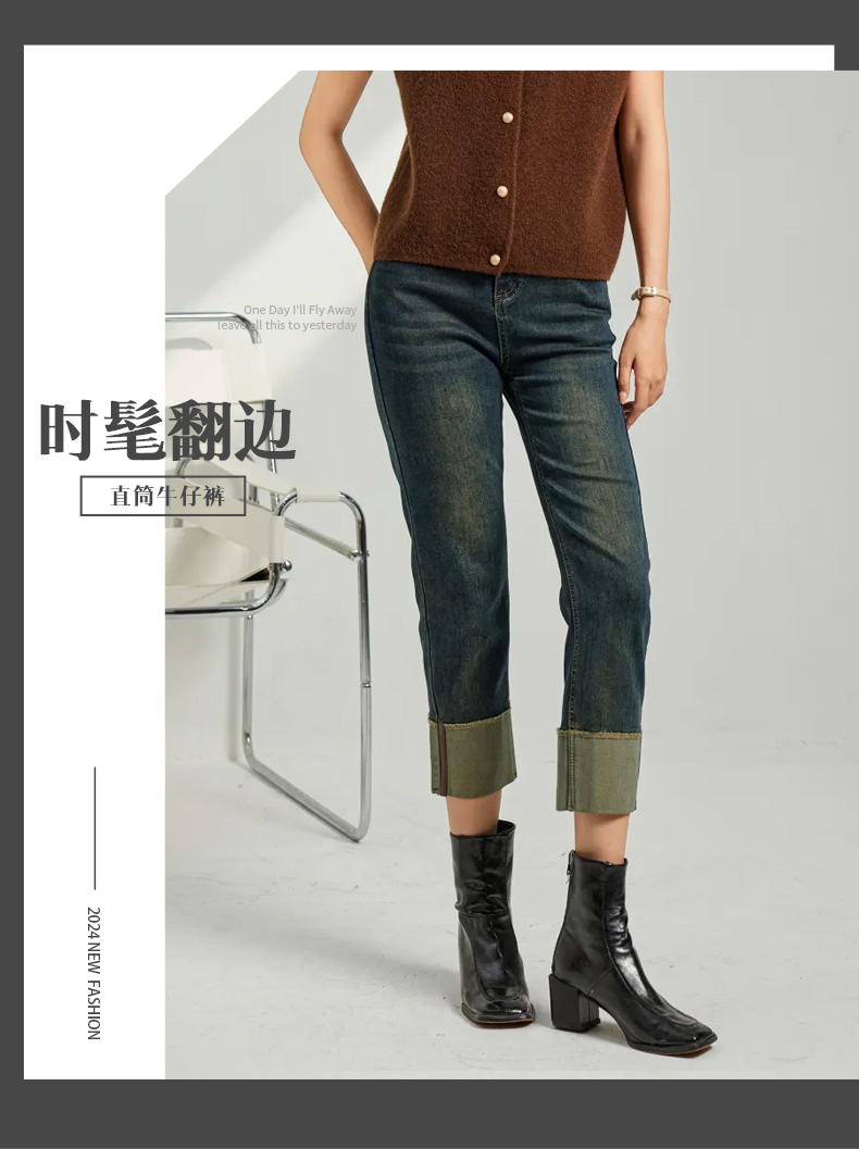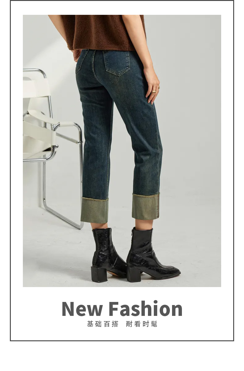 馥迦复古时髦翻边牛仔裤