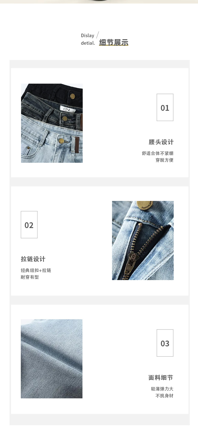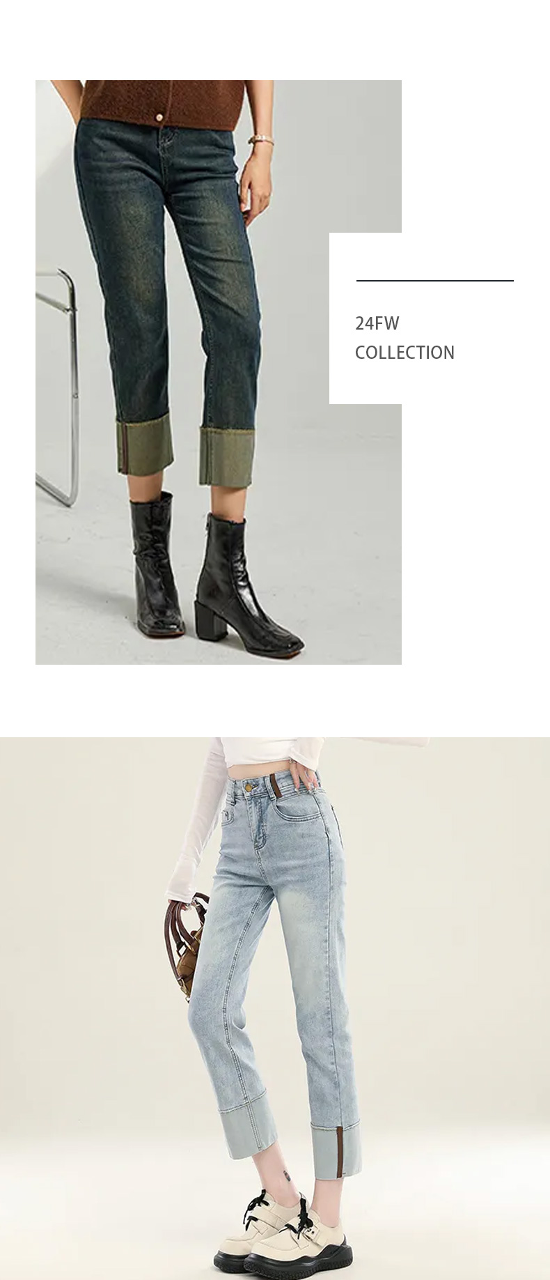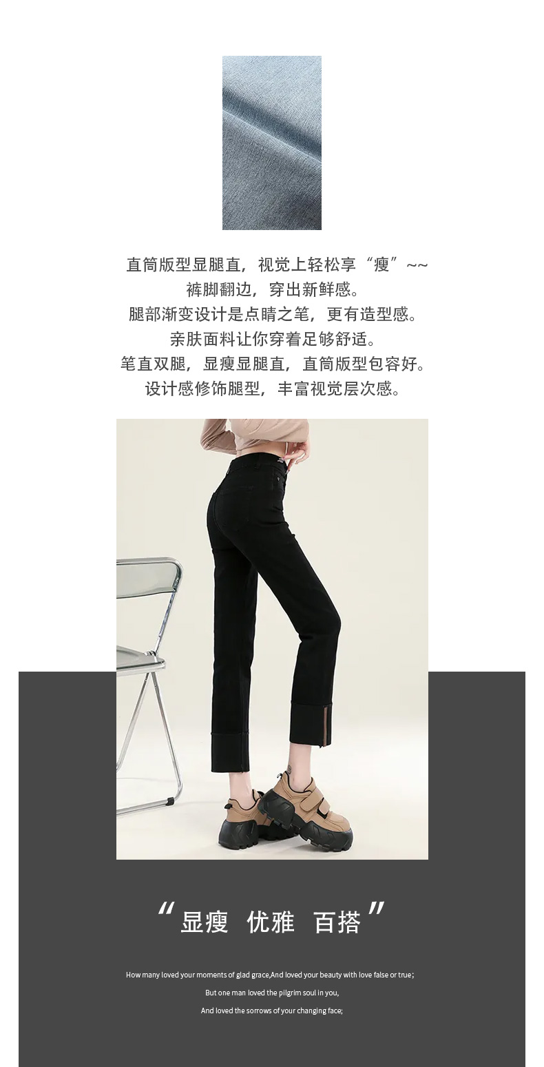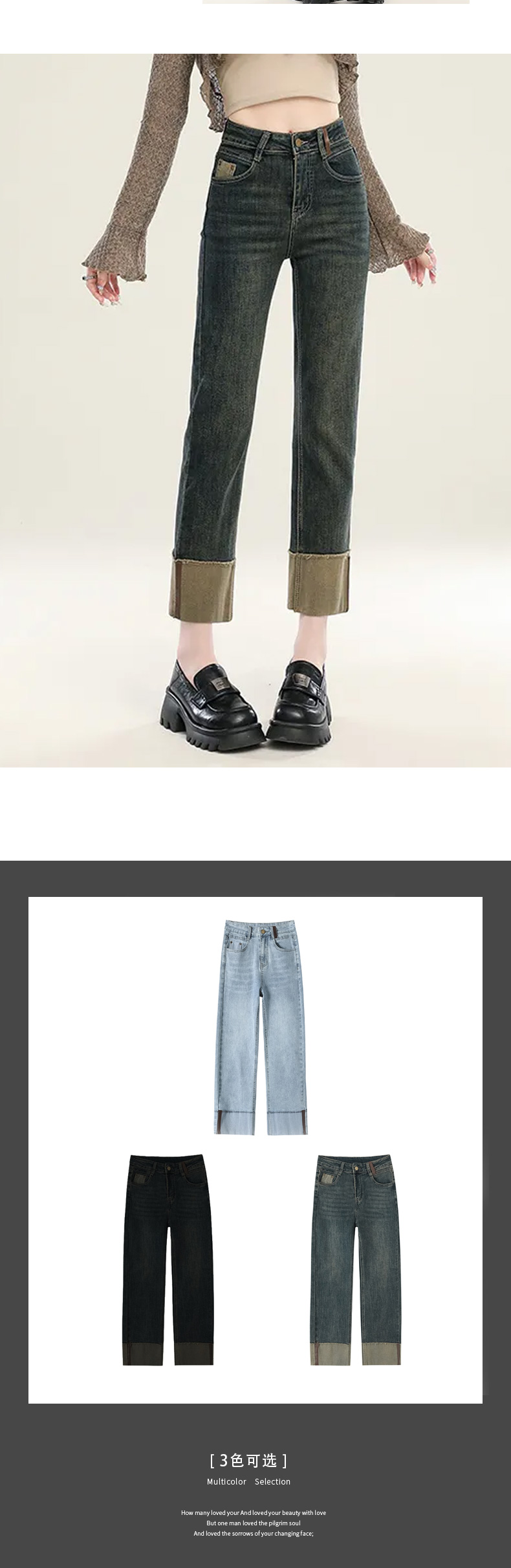 馥迦复古时髦翻边牛仔裤