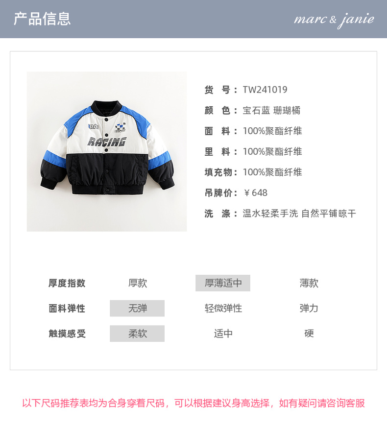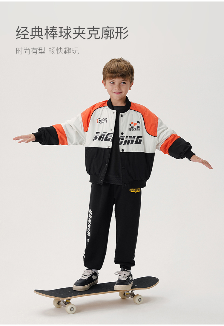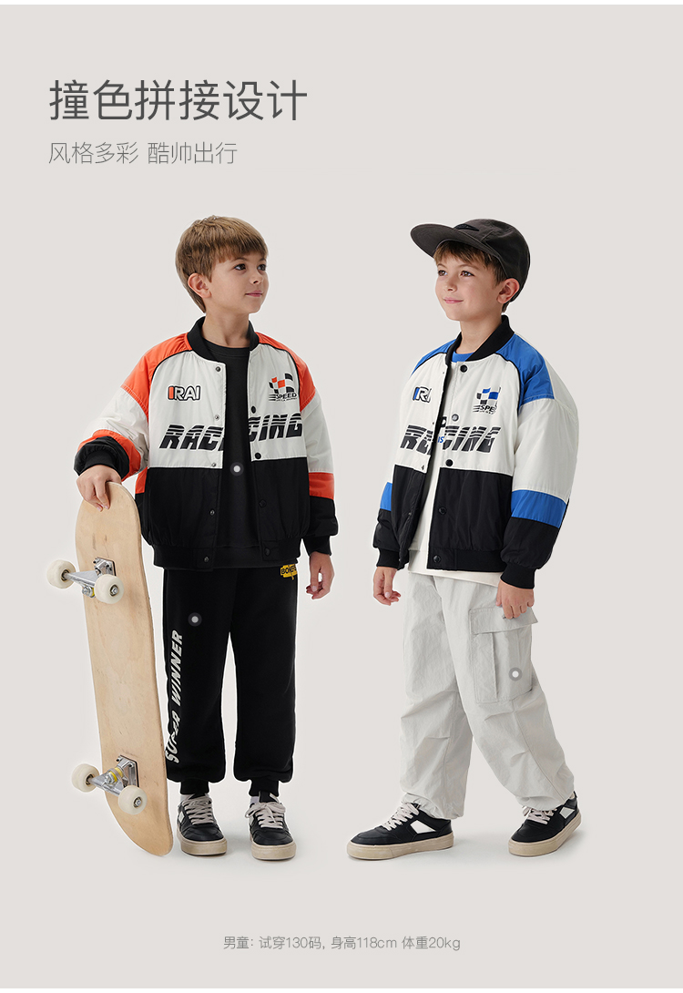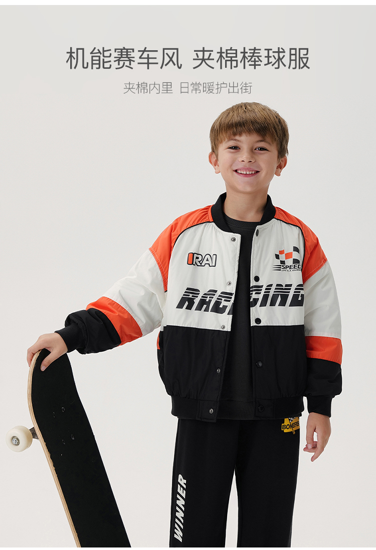马克珍妮男童潮酷赛车风棒球服儿童夹棉外套夹克秋冬新款241019