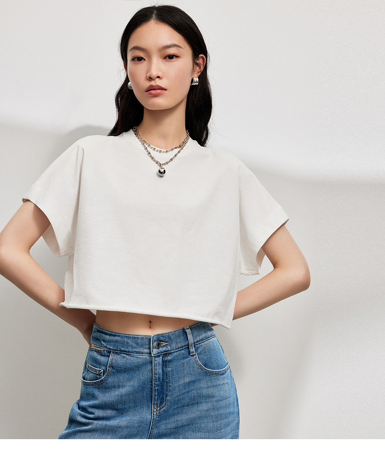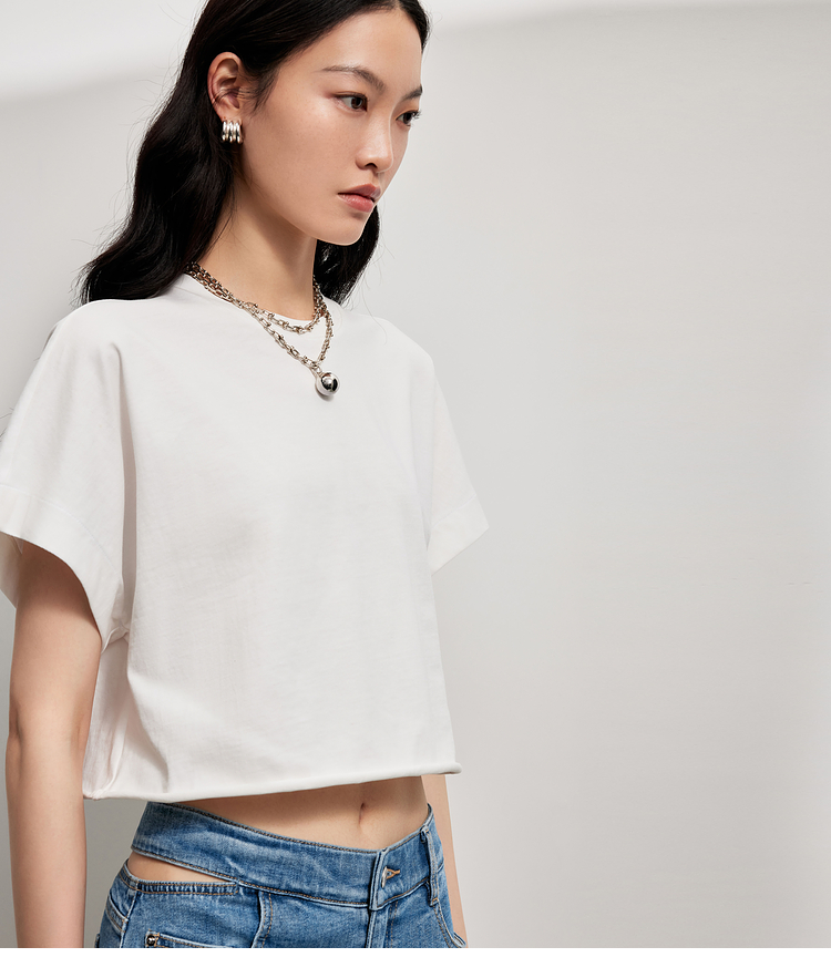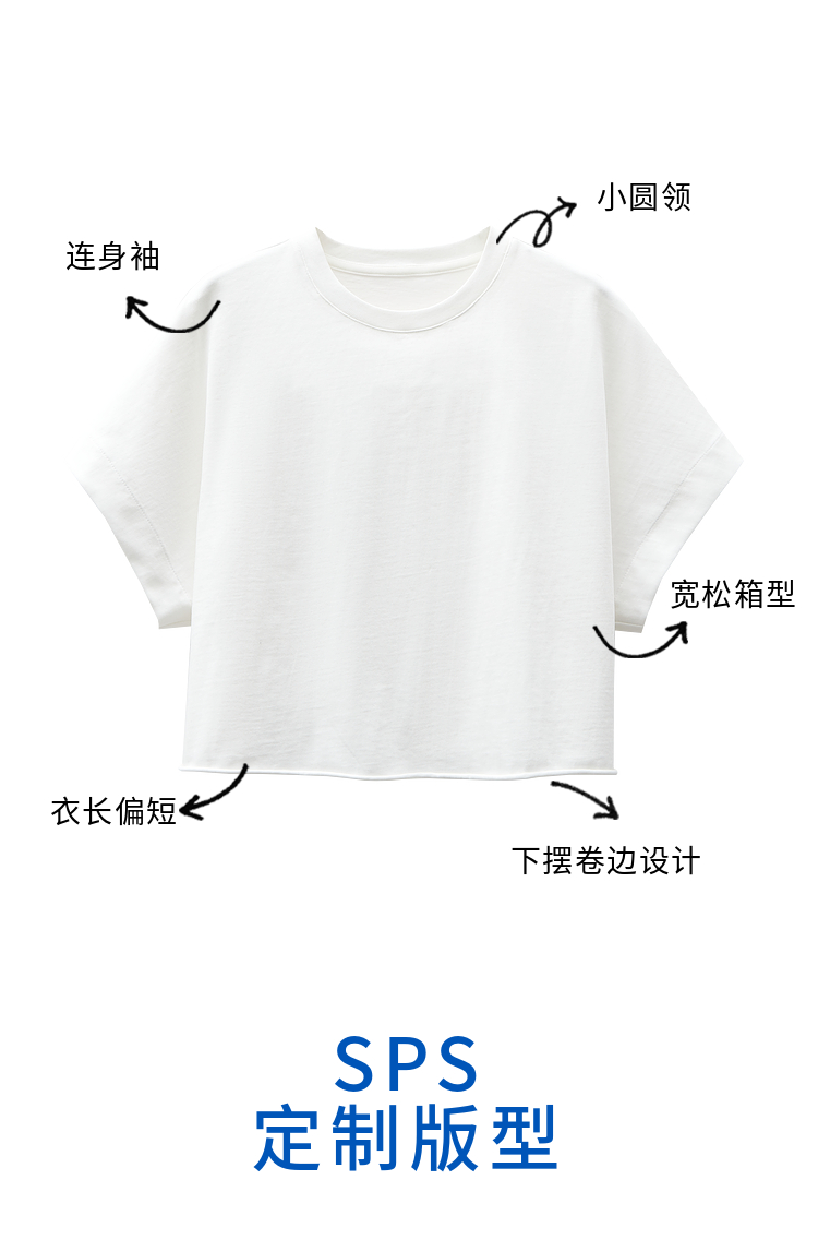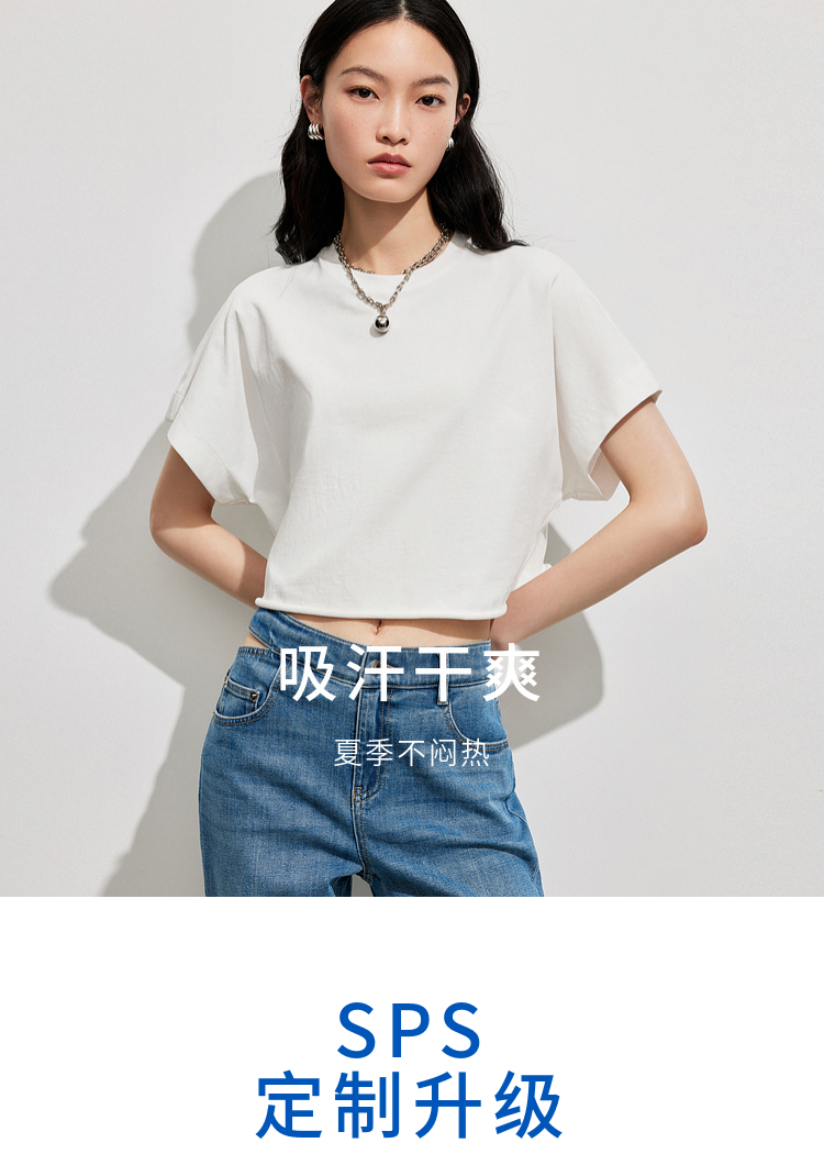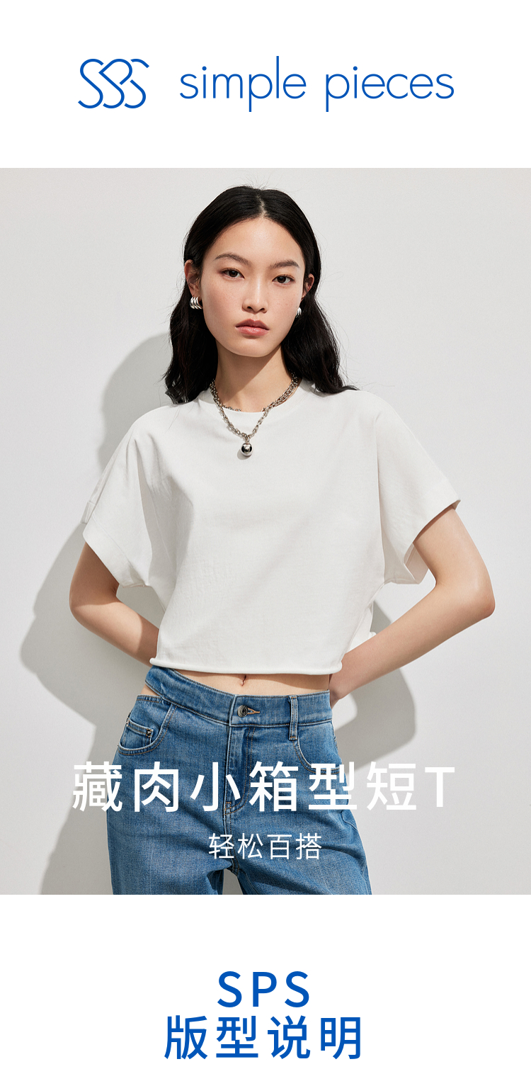 simplepieces夏季新品SPS上衣女宽肩短款短袖T