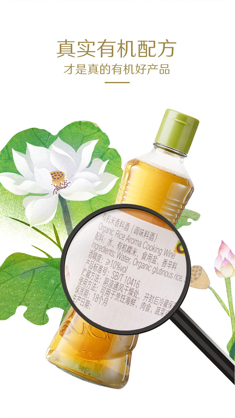 【品名】禾然有机料酒 【配料】水、有机糯米、食用盐、香辛料 【规格】500ml/瓶 【酒精度】≥10%vol 【生产标准】有机原料,零添加生产 【食用方法】腌肉、炒肉时放,可去腥提香 【发货时间】原乡库房产品,满199包邮,15点前下单当天可发。(遇周末及节假日顺延) |