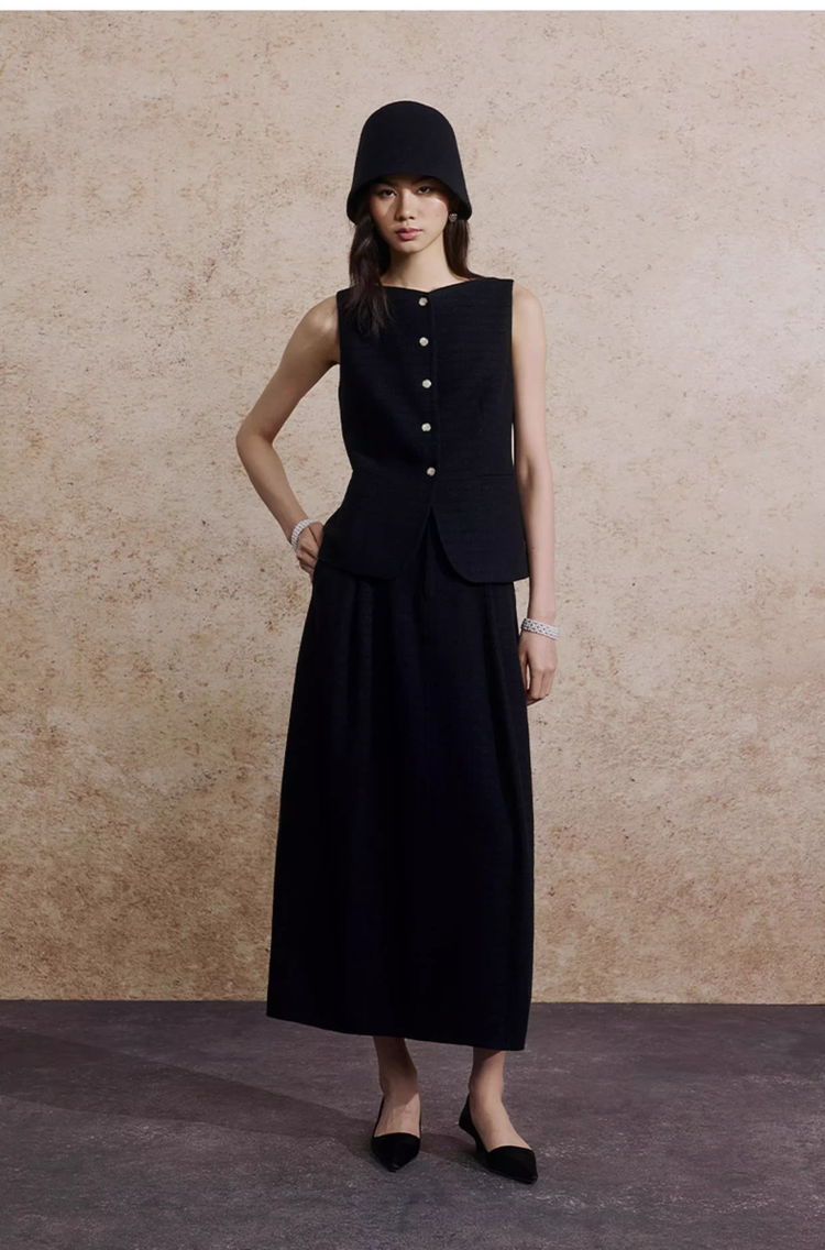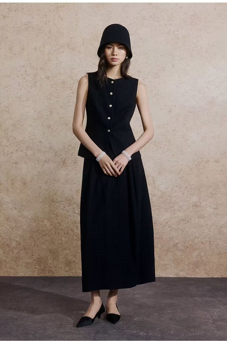 【高品质私服】【ZZ肌理感黑色马甲+半裙】立裁式超短版型,不过分紧勒,却精细托起腰线G1548/G1547-CC【无标出货 介意慎拍】