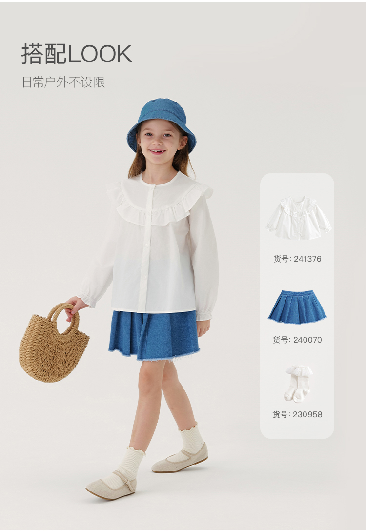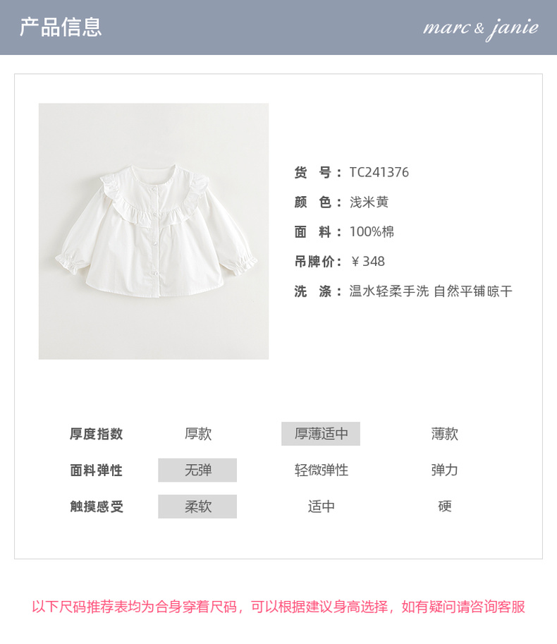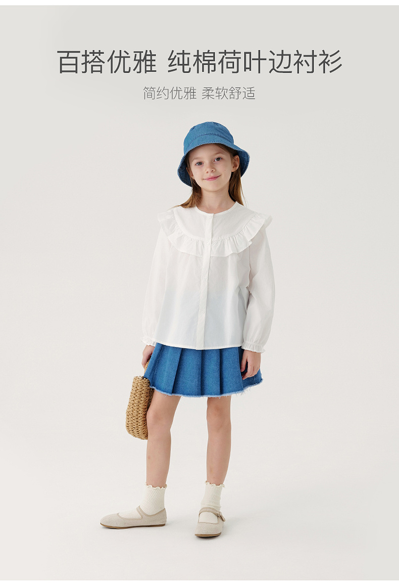 马克珍妮女童甜美荷叶边衬衫儿童衬衣纯棉小衫上衣秋装新款241376