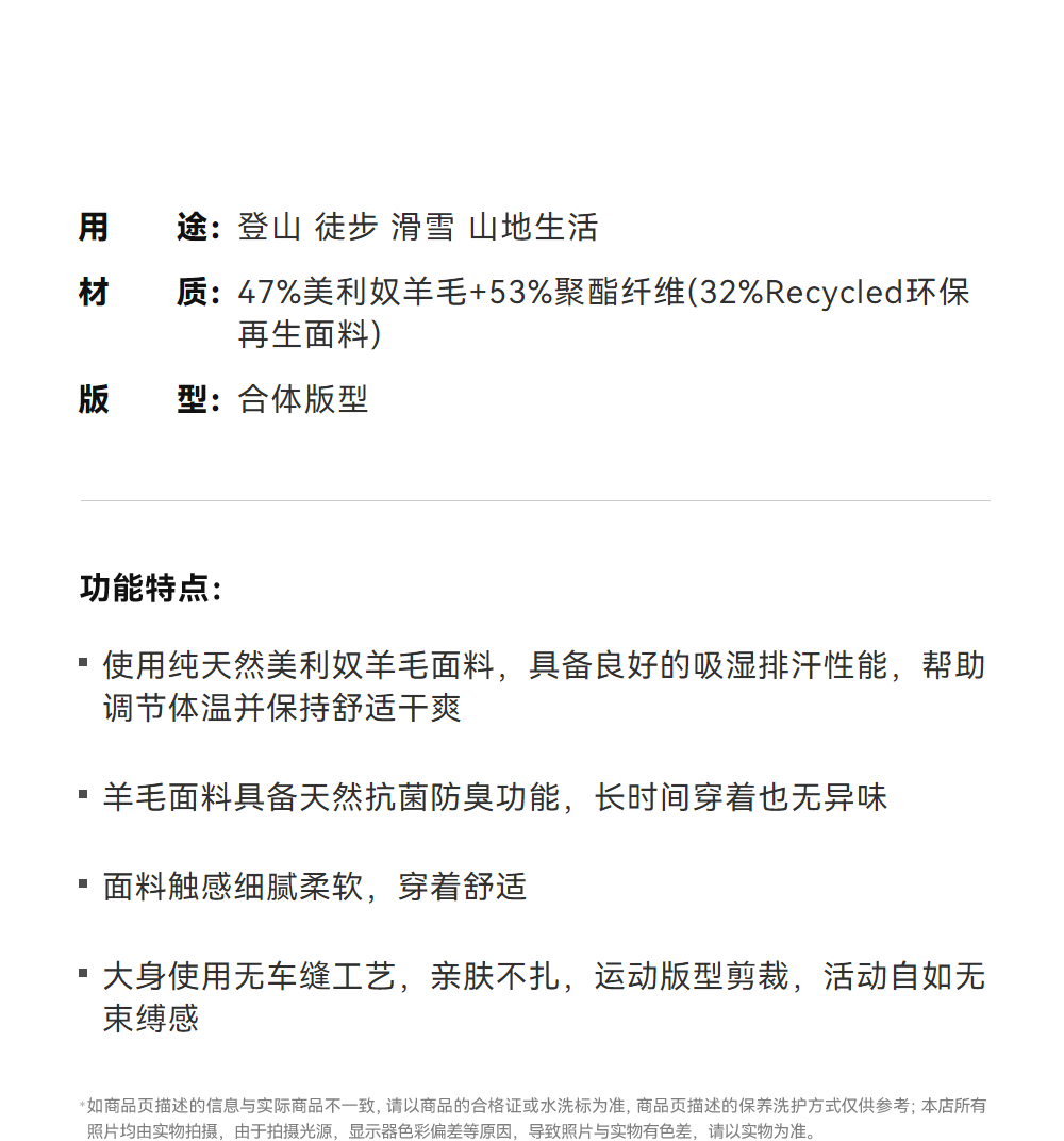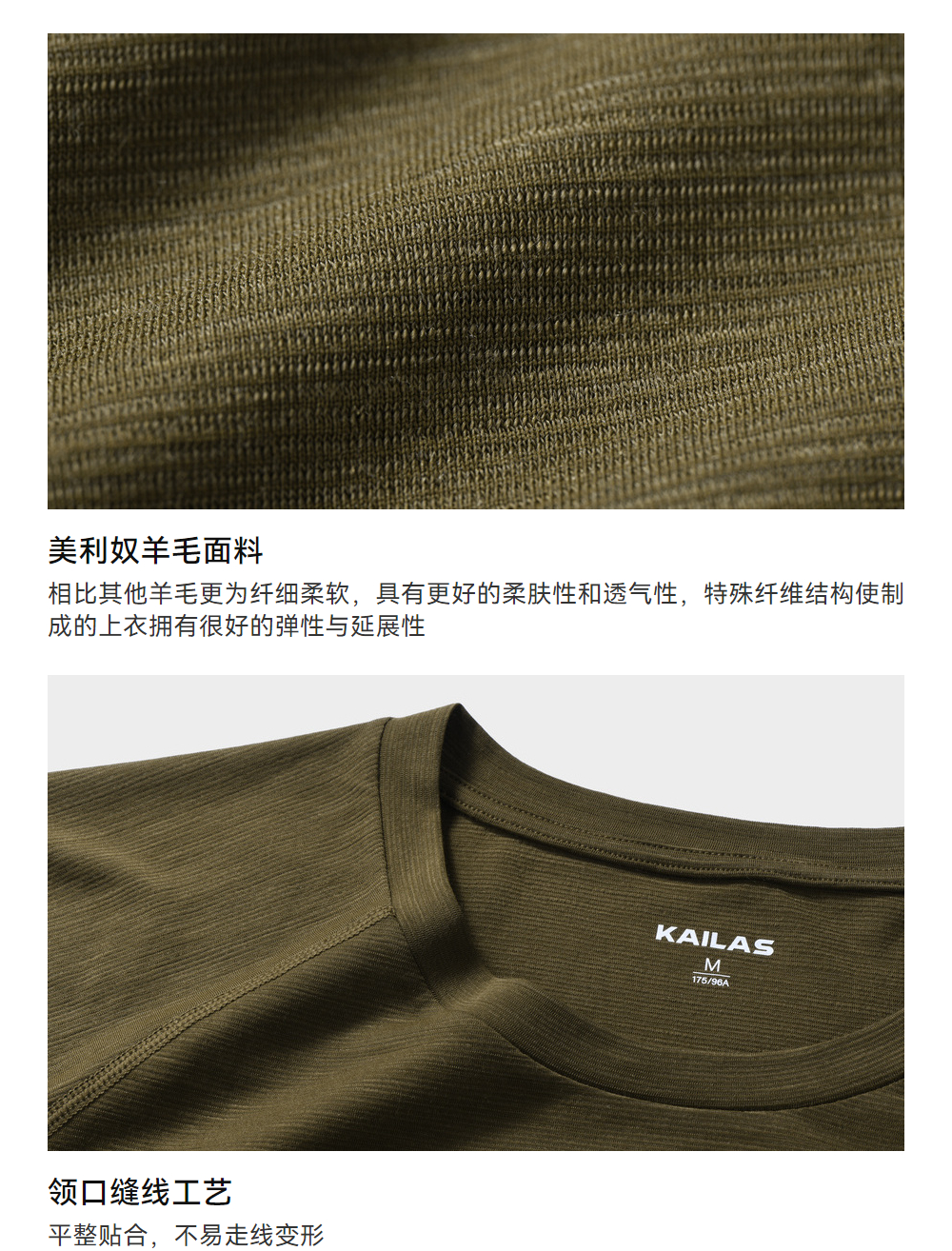 KAILAS凯乐石 户外运动 男款H1羊毛圆领功能长袖T恤 KG2437114【Z】