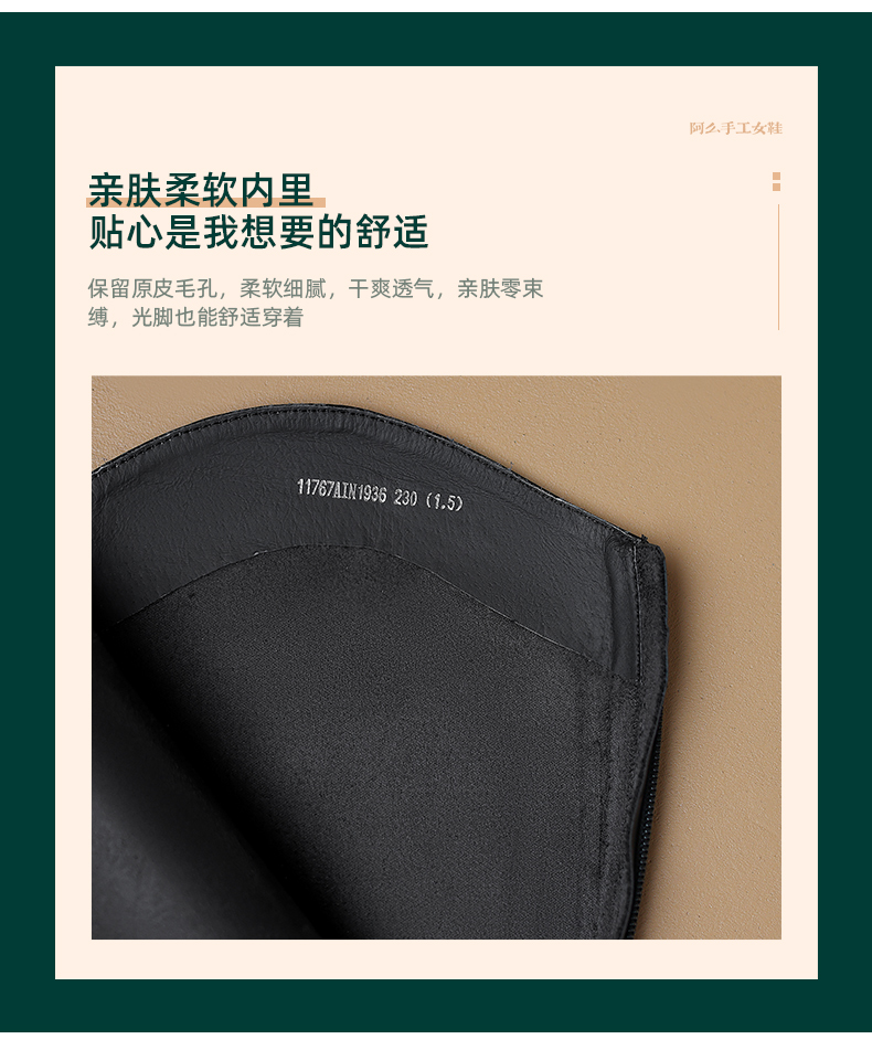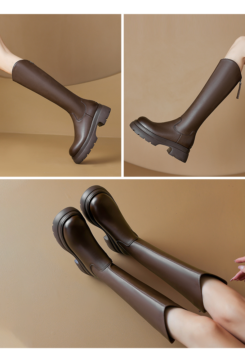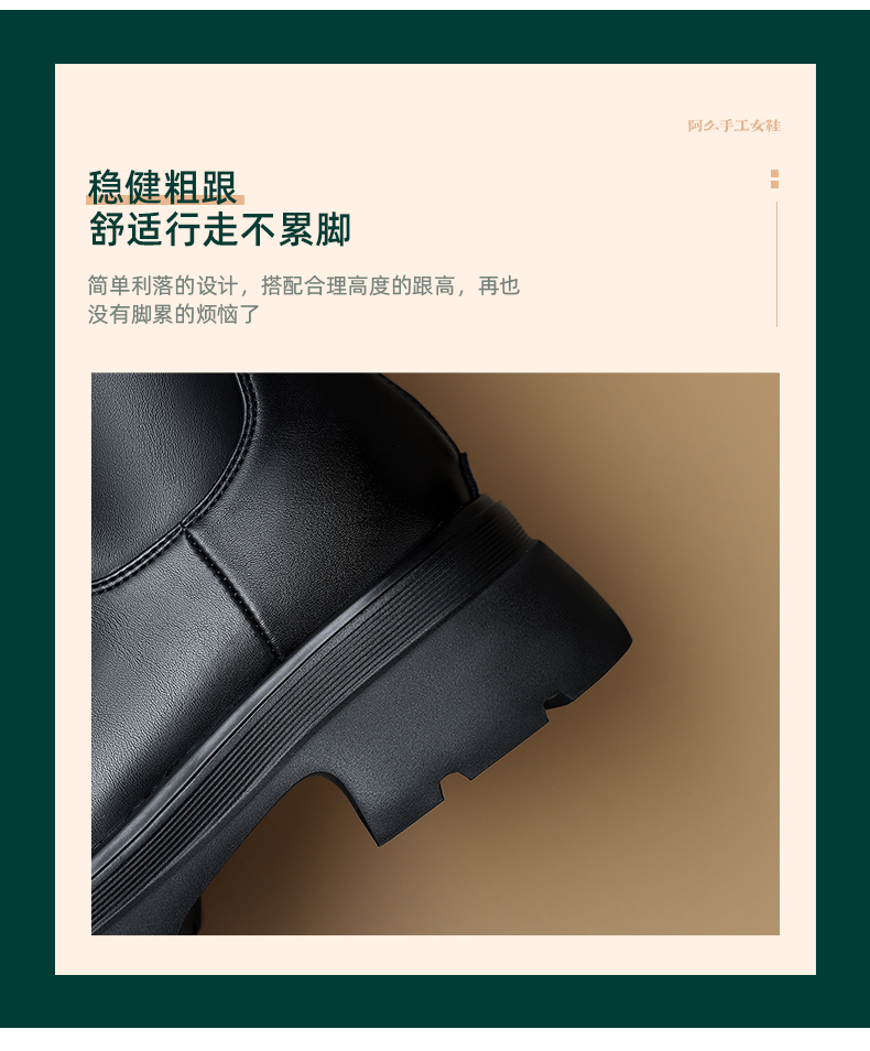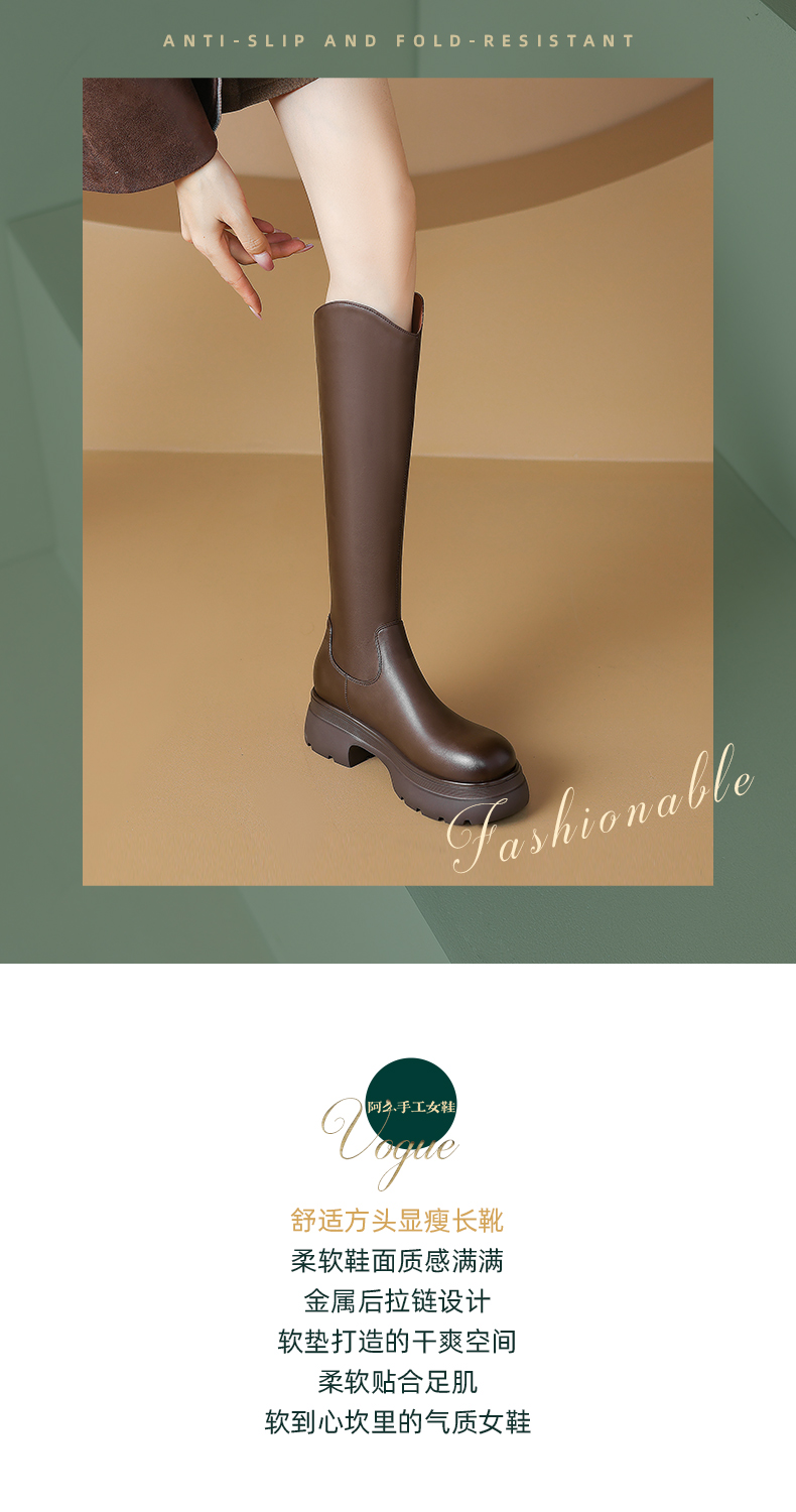 阿么手工女鞋厚底小个子长靴子5.5CM百搭真皮时尚英伦风V口高筒靴