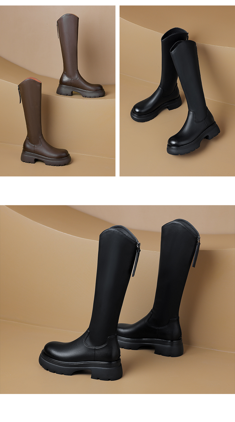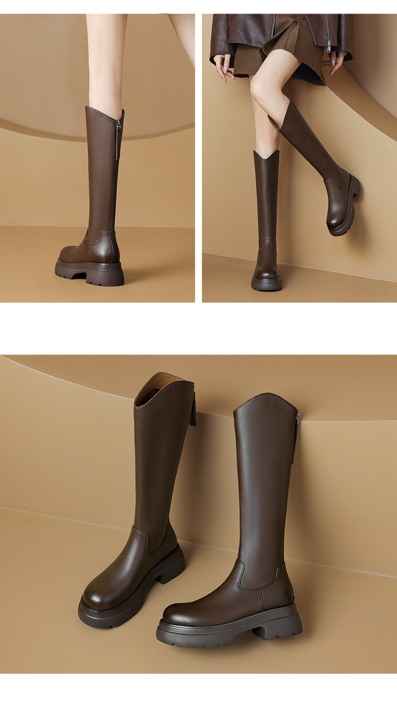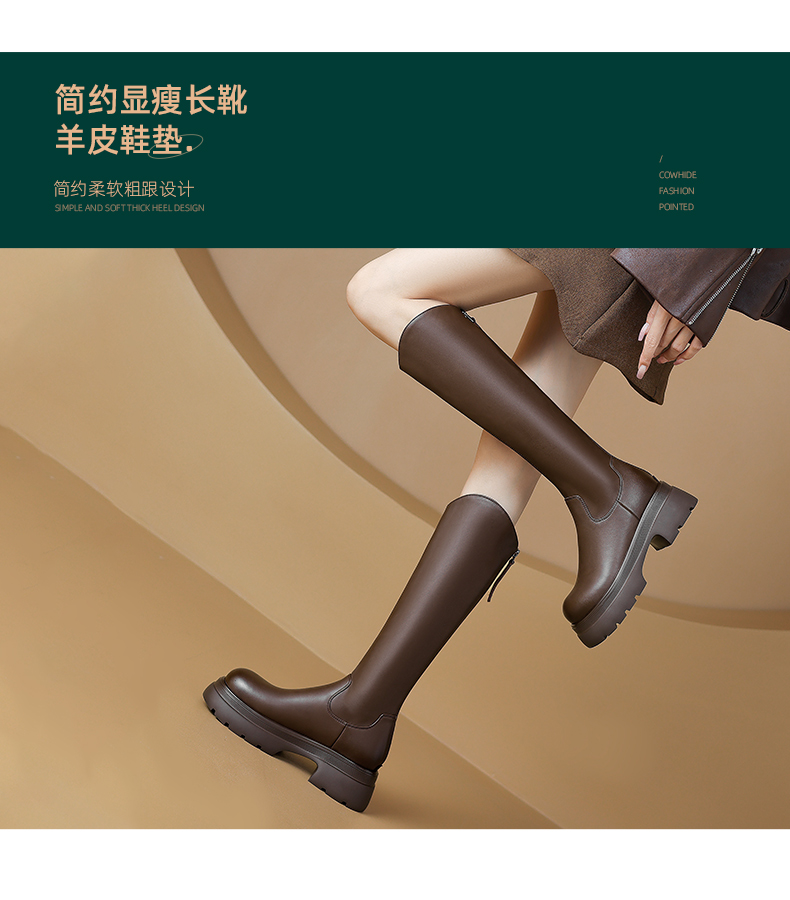 阿么手工女鞋厚底小个子长靴子5.5CM百搭真皮时尚英伦风V口高筒靴