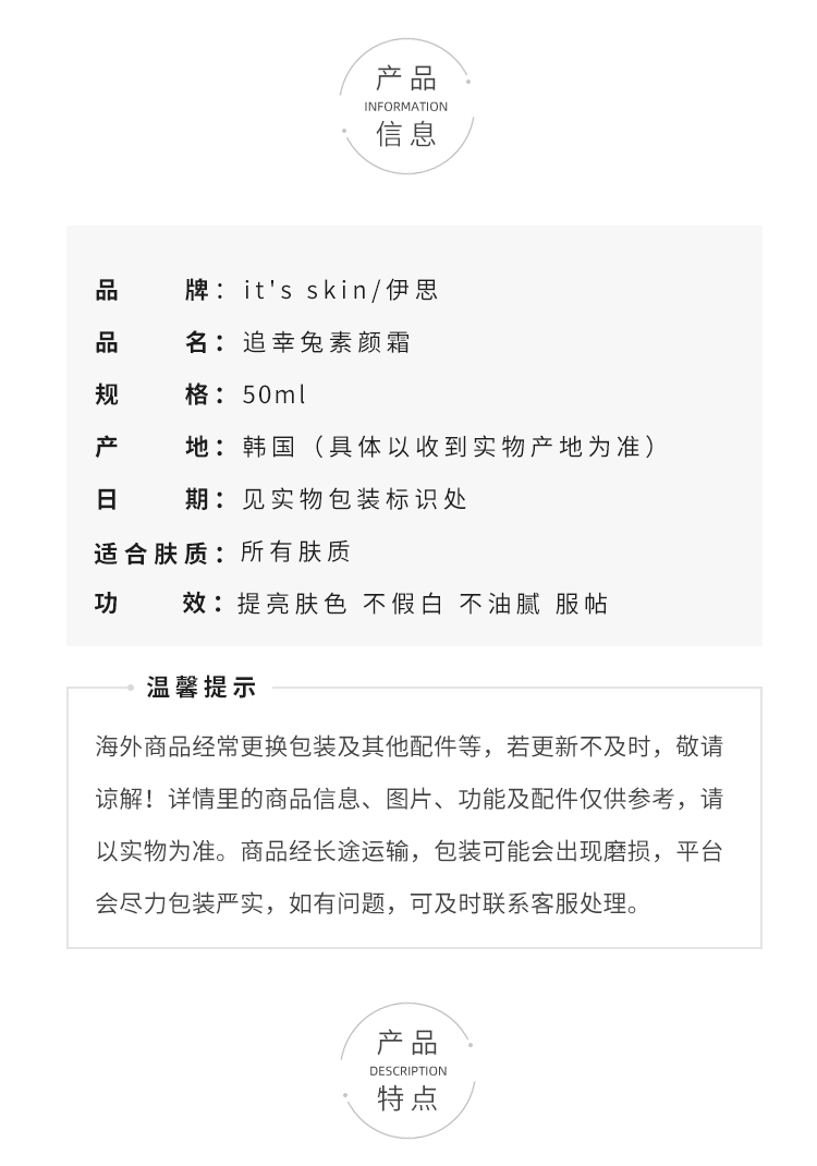 韩国its skin伊思追幸兔素颜霜50ml多漾焕彩 提亮肤色 懒人霜