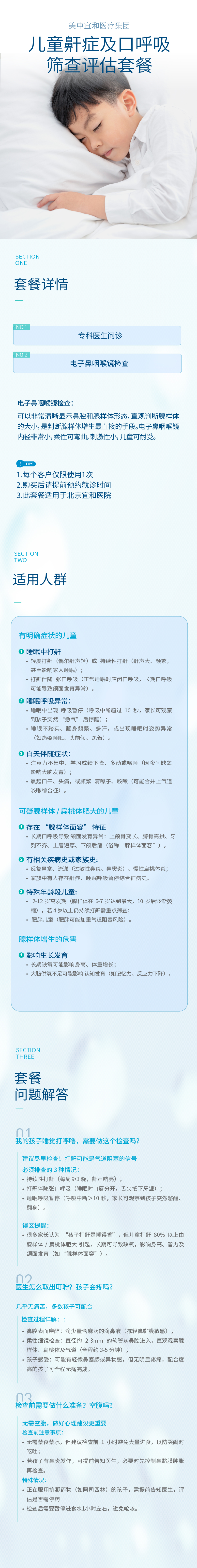 【暑期钜惠】儿童鼾症及口呼吸筛查评估套餐
