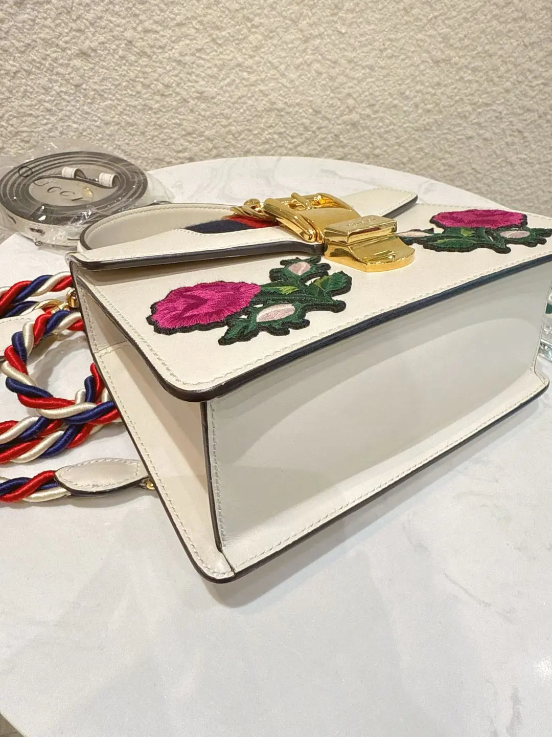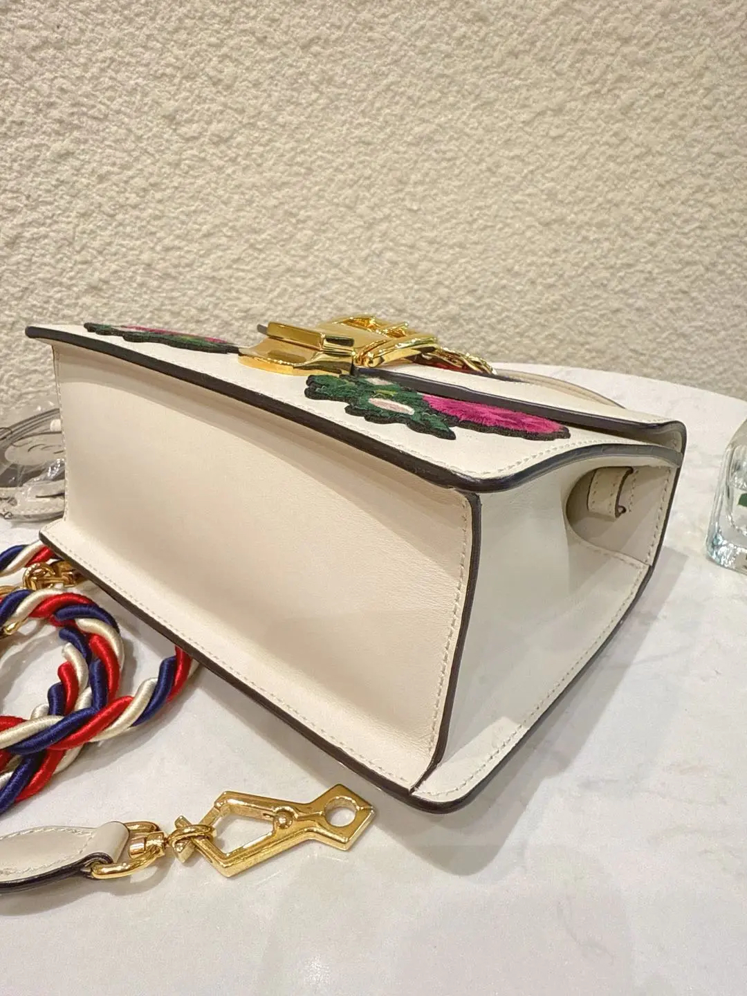 GUCCI 塞尔维亚 白色 花卉刺绣 box牛皮 小号 斜挎包