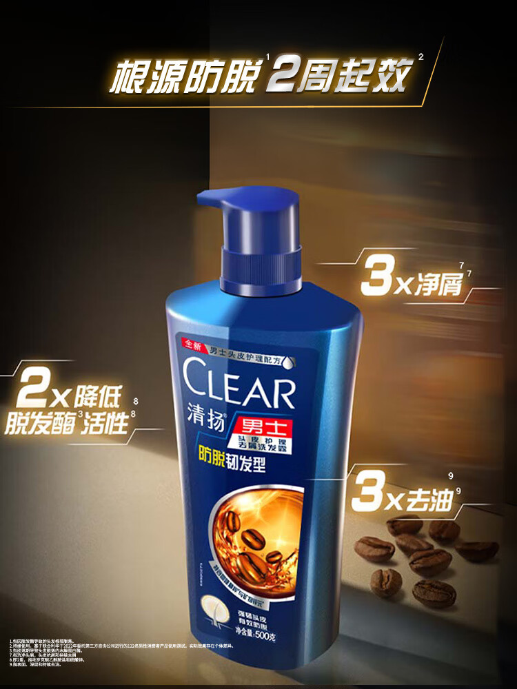 清扬男士去屑洗发露防脱韧发型500g