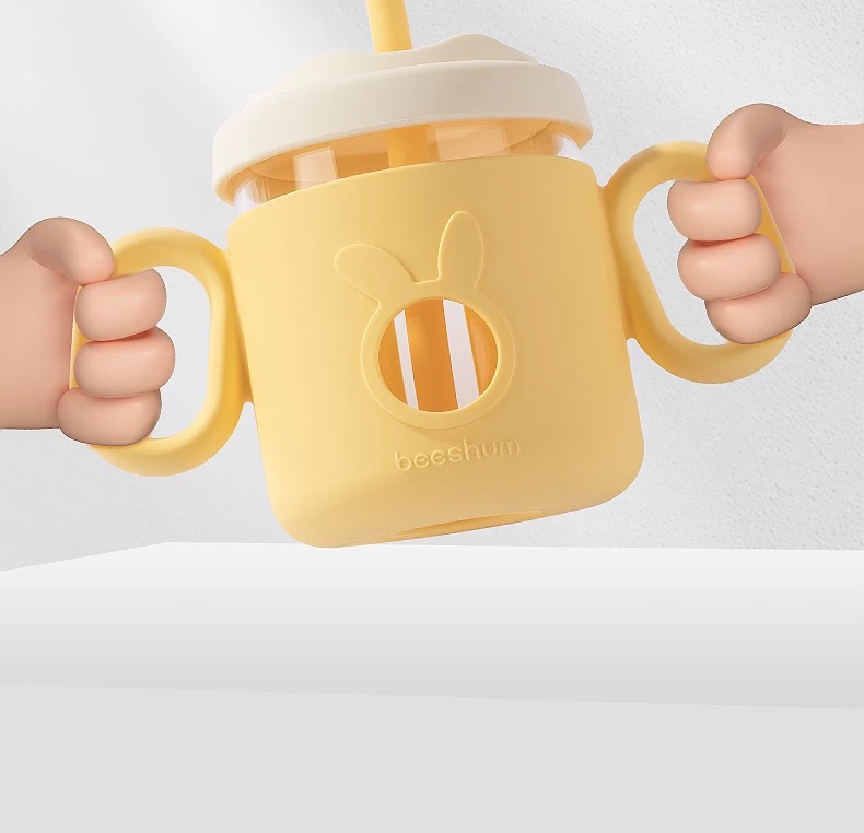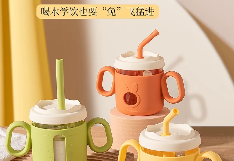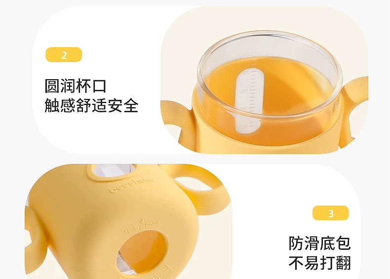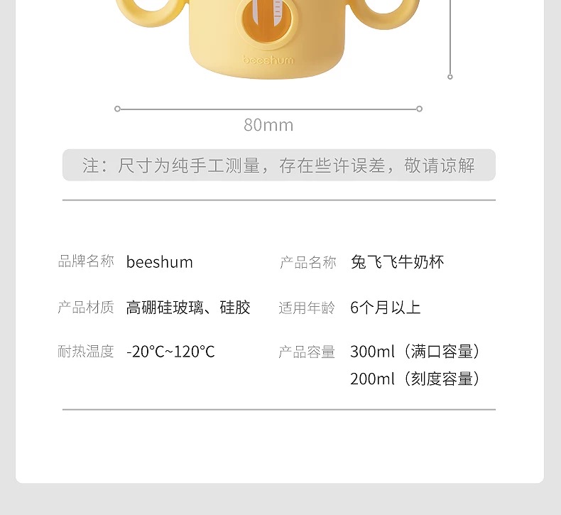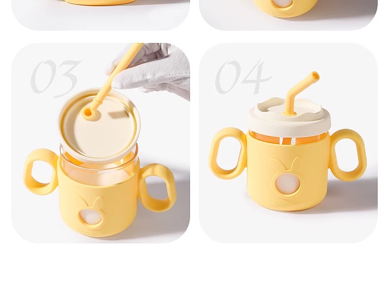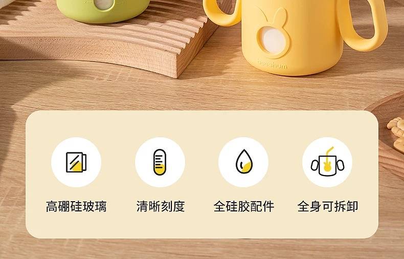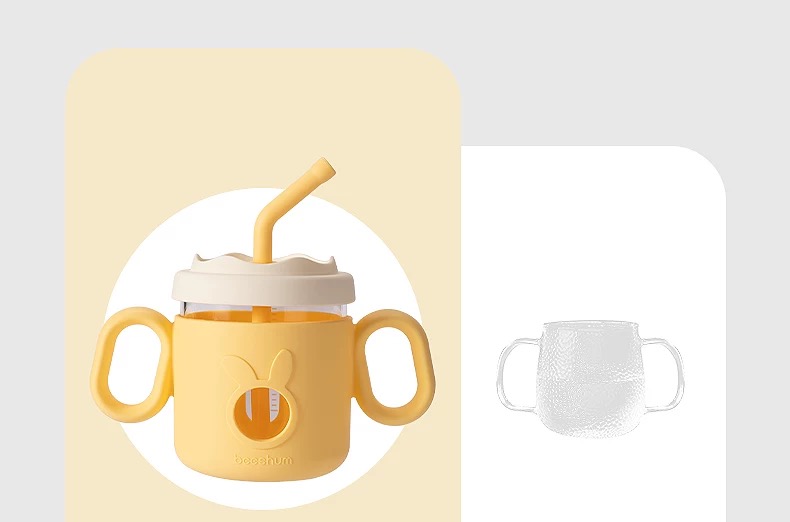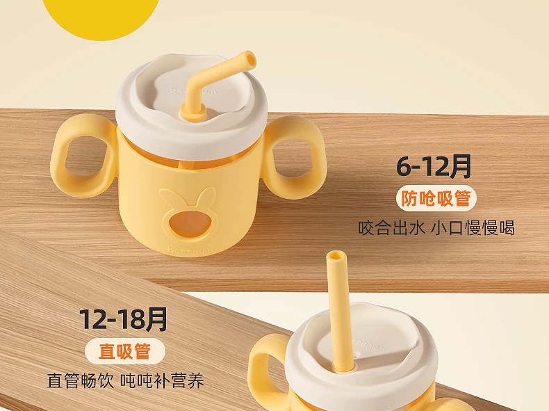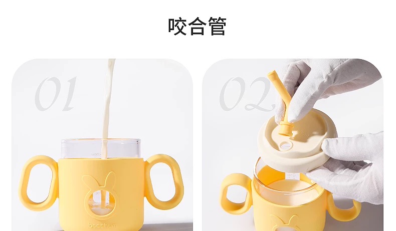 beeshum儿童牛奶刻度杯微波炉可加热专用玻璃喝水宝宝吸管米糊杯
