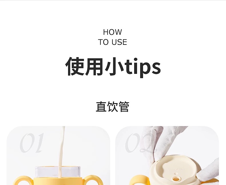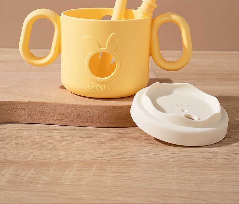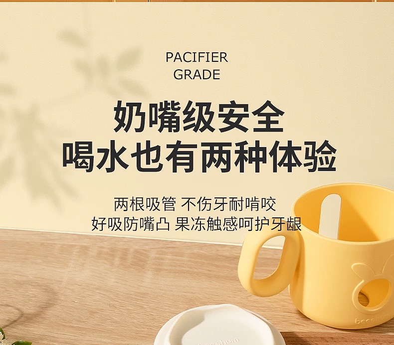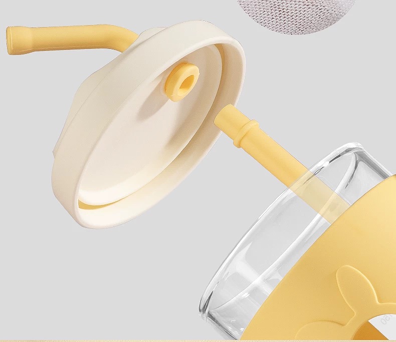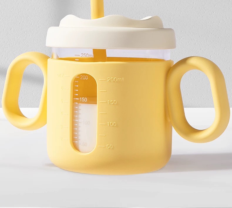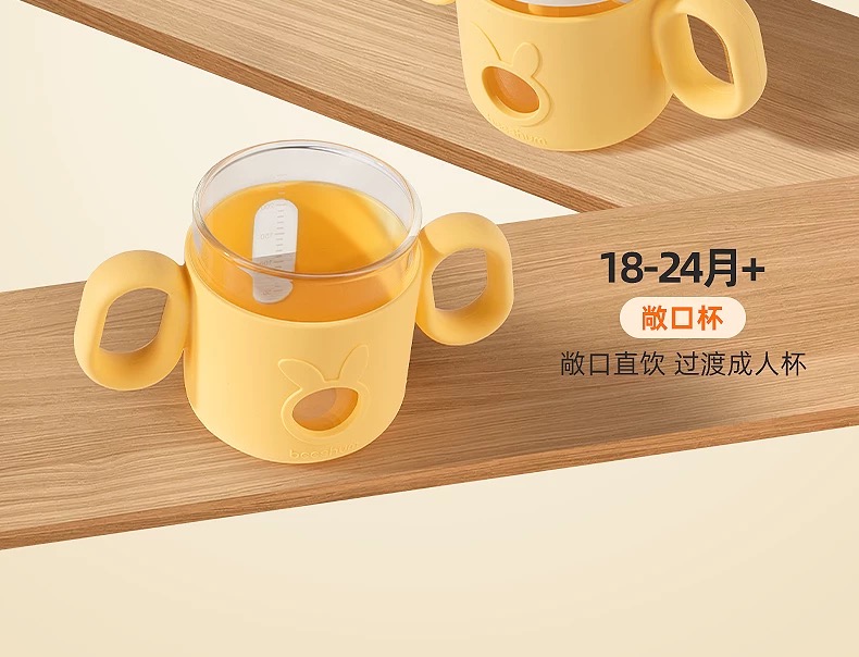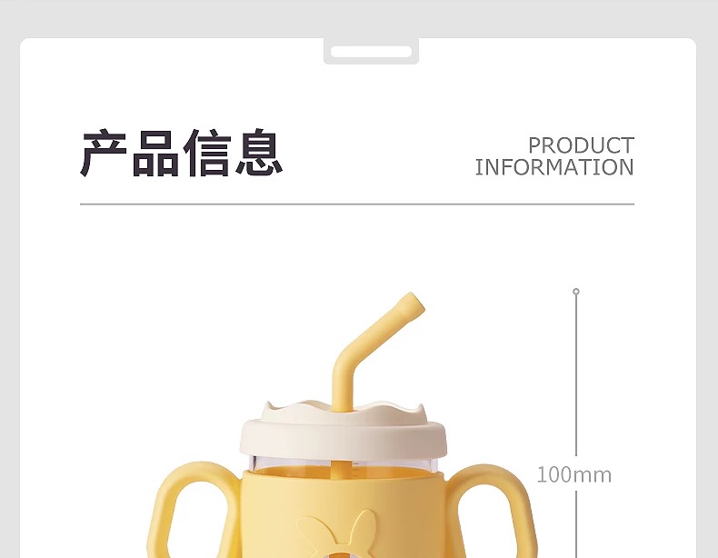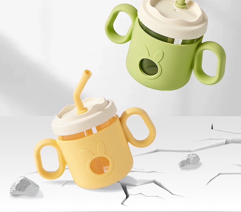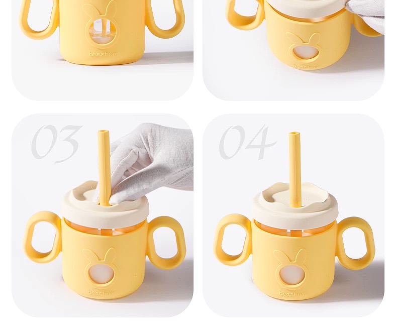 beeshum儿童牛奶刻度杯微波炉可加热专用玻璃喝水宝宝吸管米糊杯