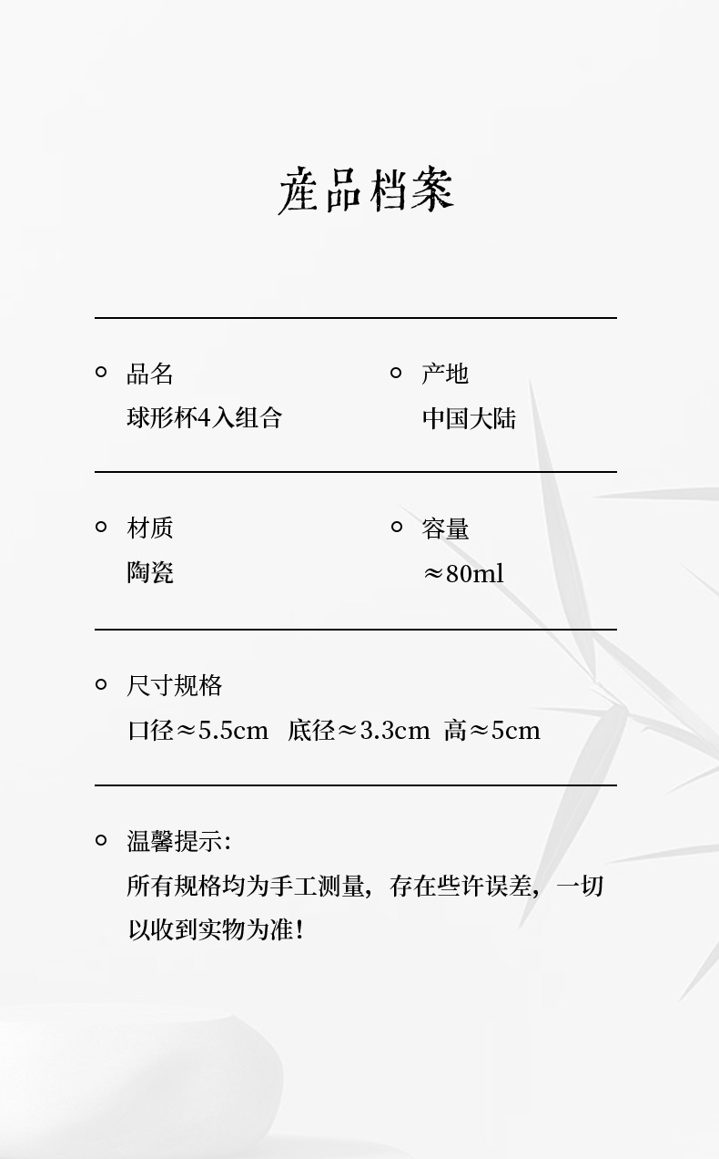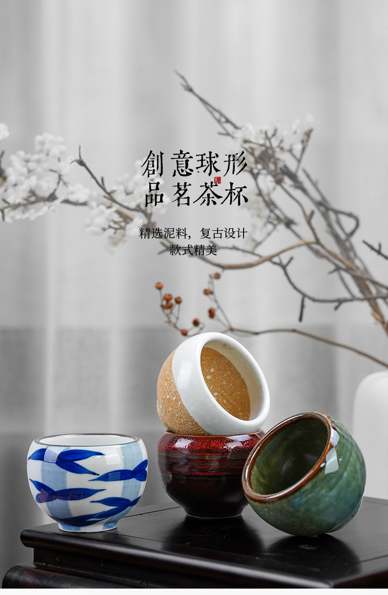 创意复古球形杯4入组合 加厚品名杯 茶杯 陶瓷品杯