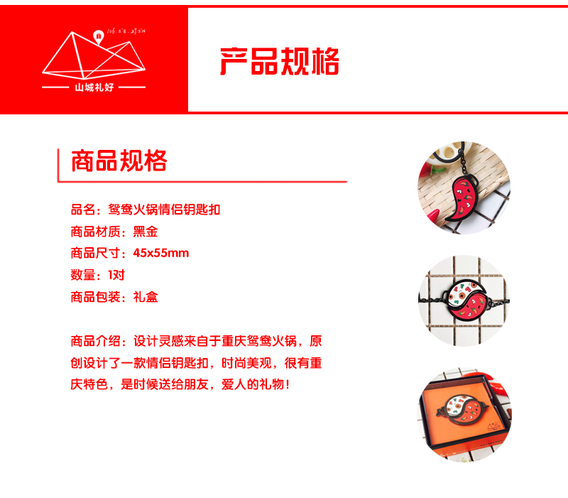 山城鸳鸯火锅钥匙扣/钥匙扣/重庆原创伴手礼/旅游纪念品