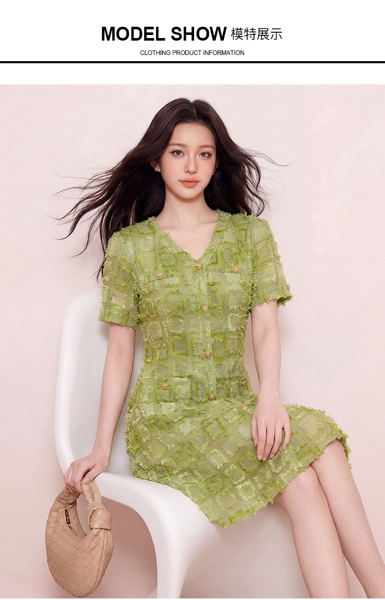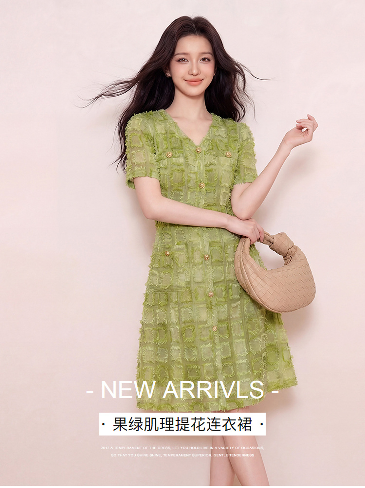 奢姿大码女装2026夏季胖妹妹轻奢优雅连衣裙气质V字肌理提花A字裙9962860009