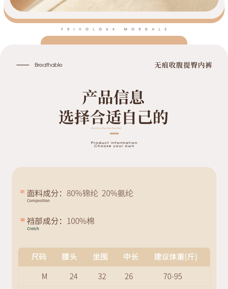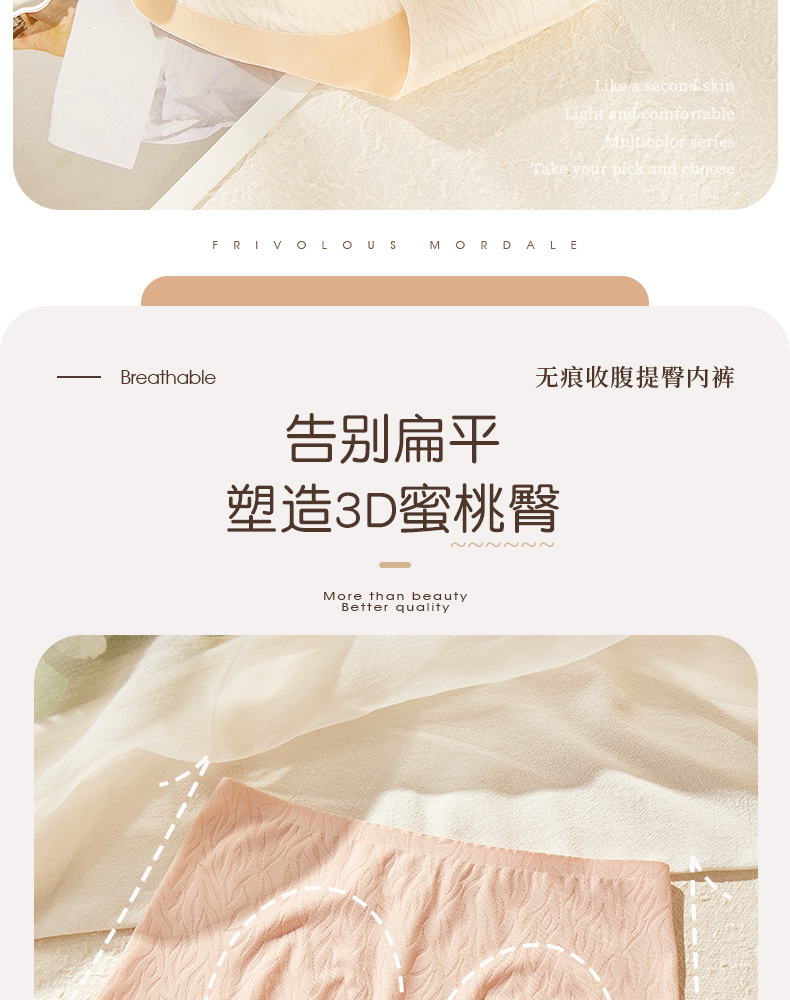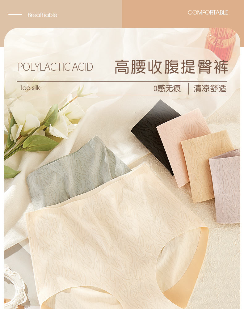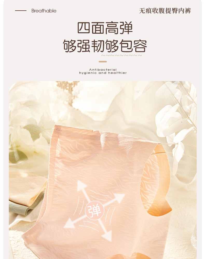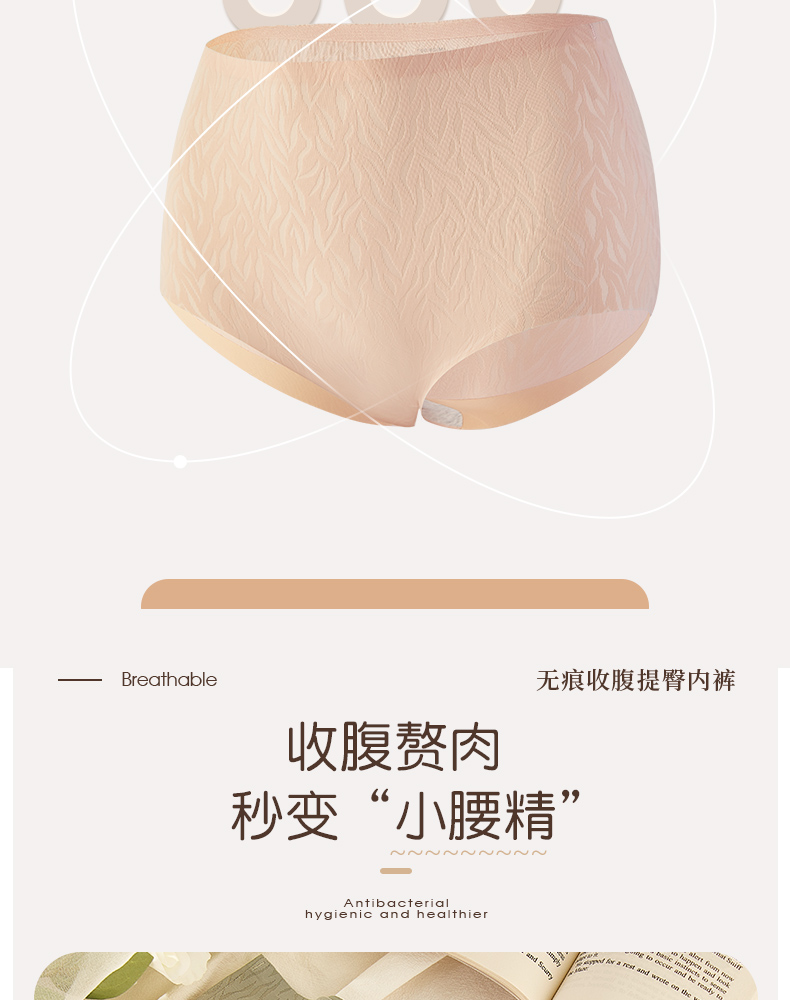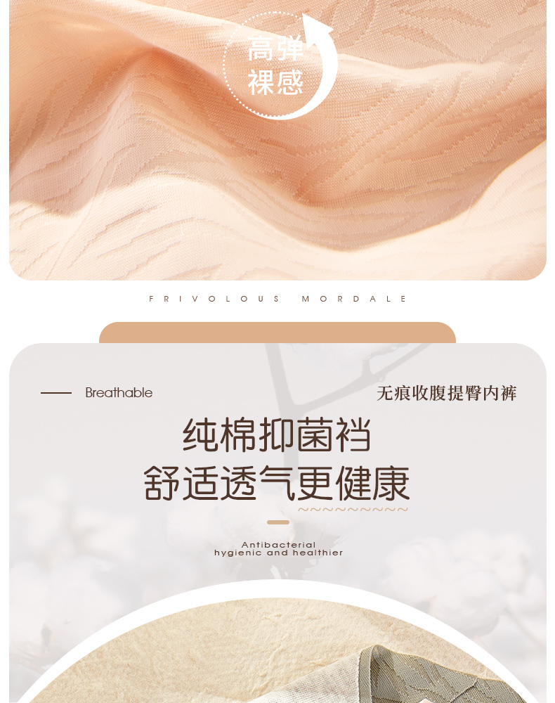 洁丽雅女士高腰收腹提臀裤裸感轻薄舒适亲肤双层纯棉内裆三角裤
