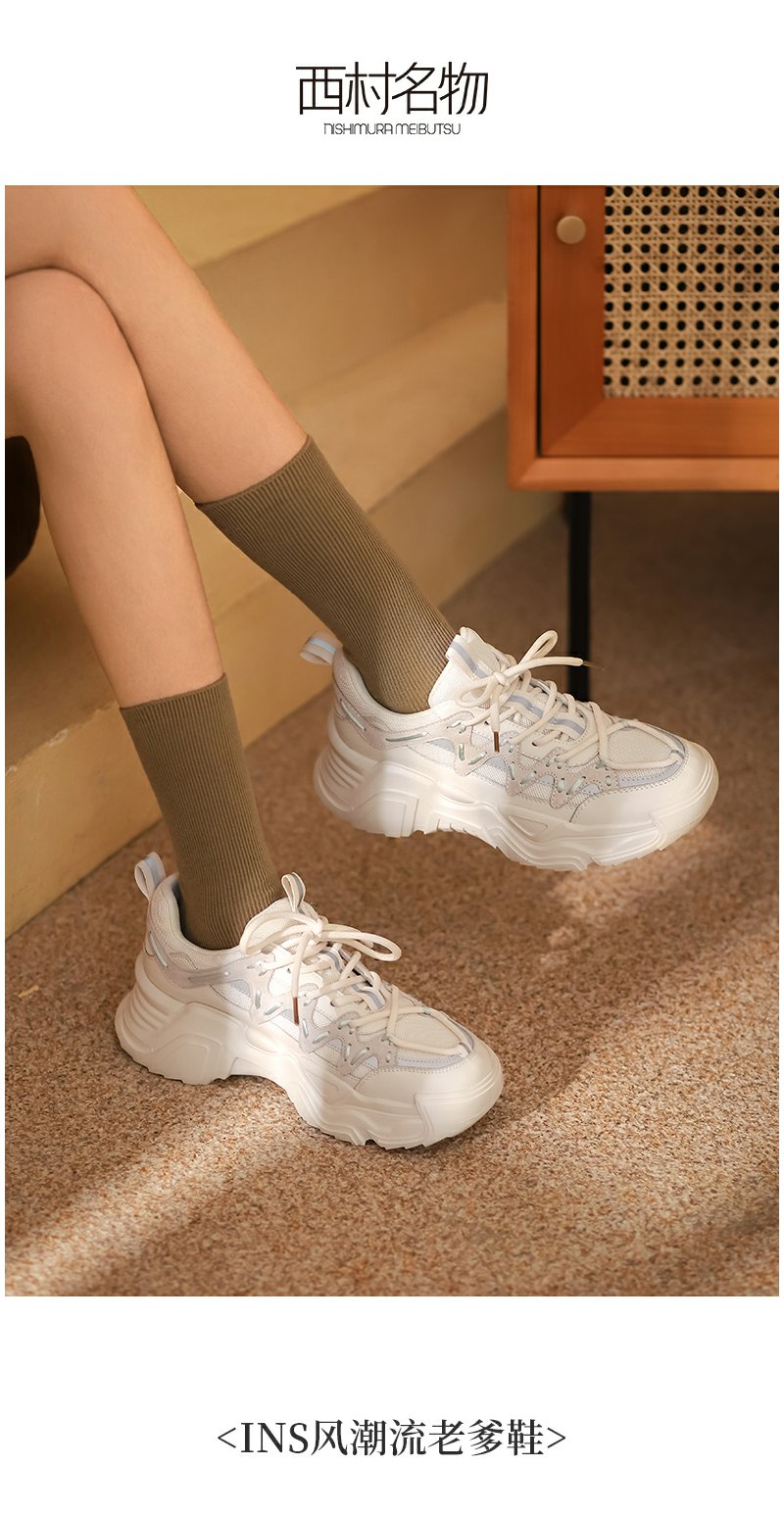 西村名物2022春季新款老爹鞋女百搭ins潮运动休闲鞋厚底女T22AM18541