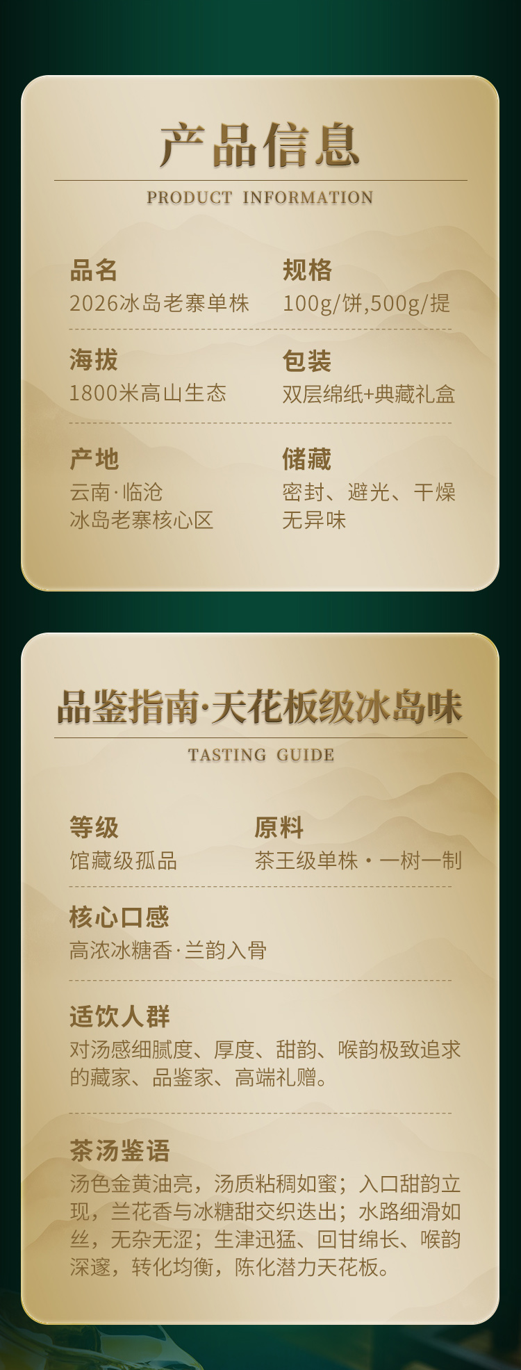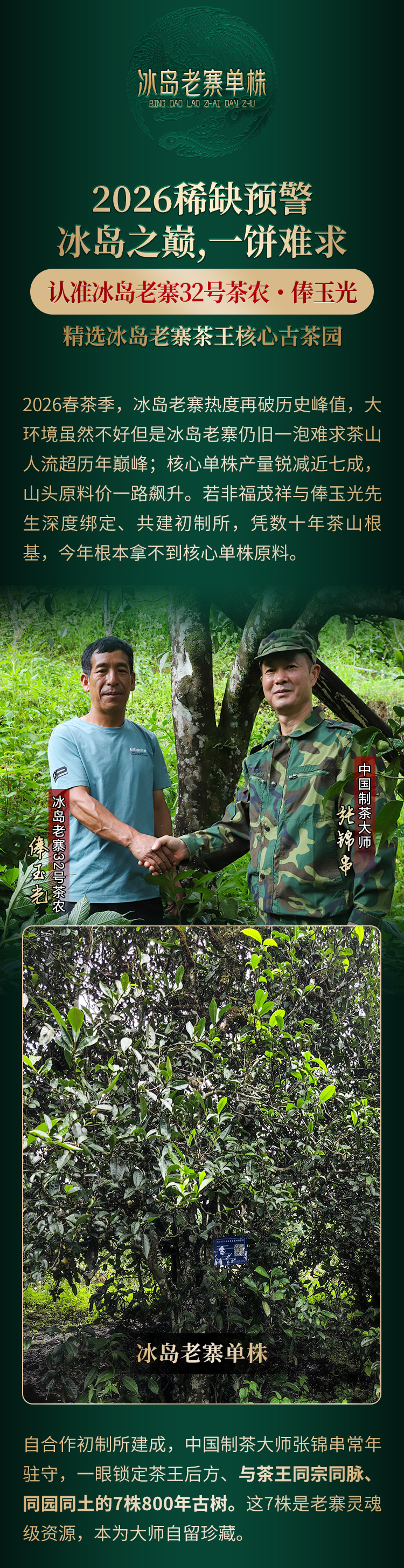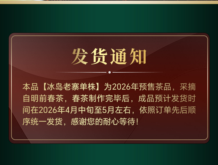 2026头春【冰岛老寨单株】纯料古树茶,临沧茶区冰岛老寨签约古茶园核心茶地古树茶100g*5饼竹箱装