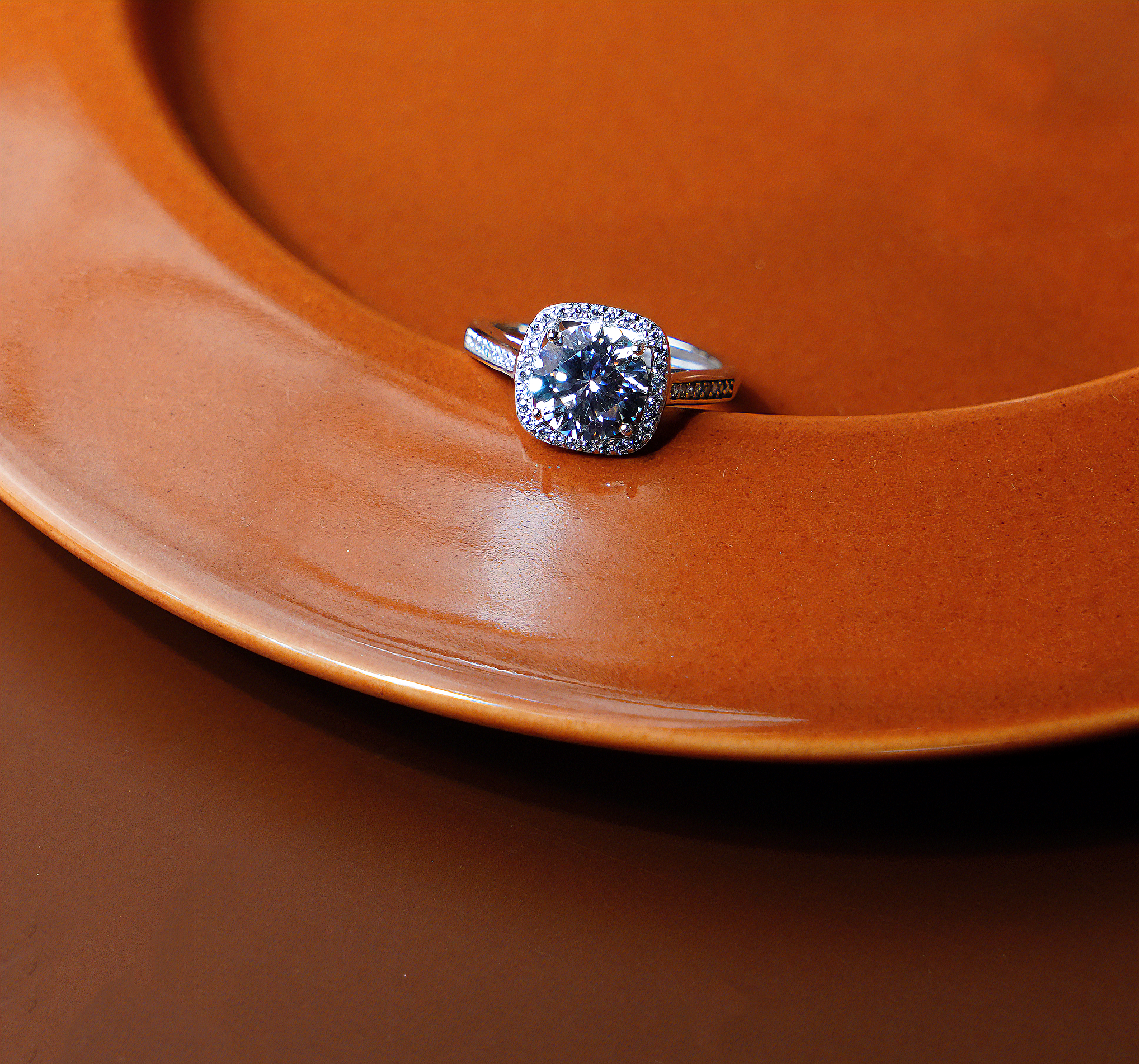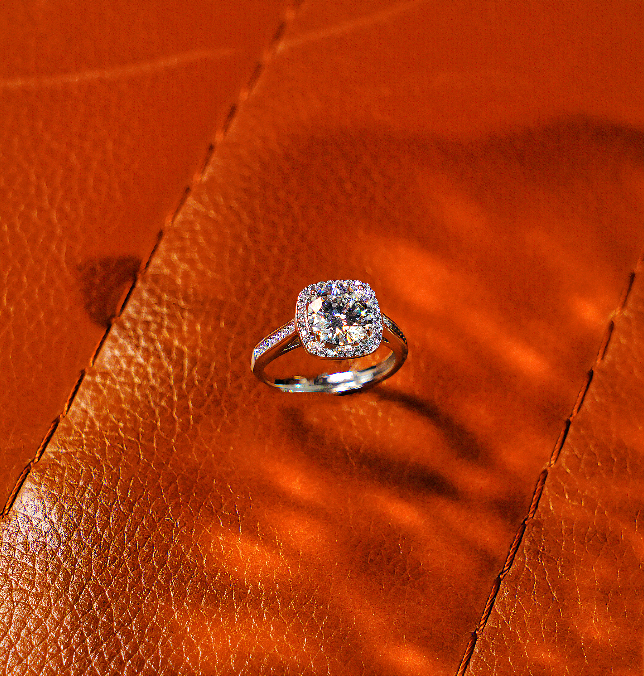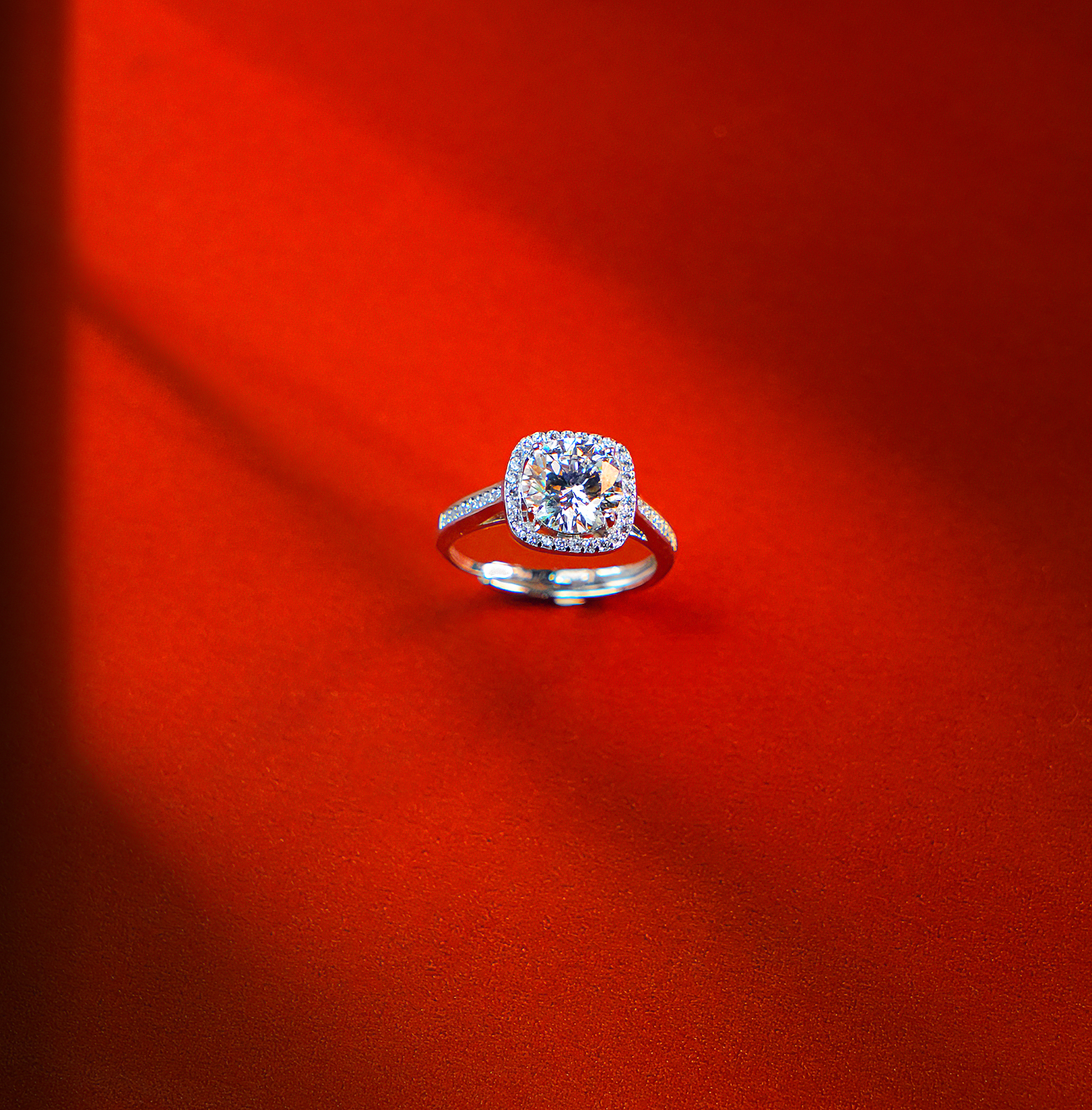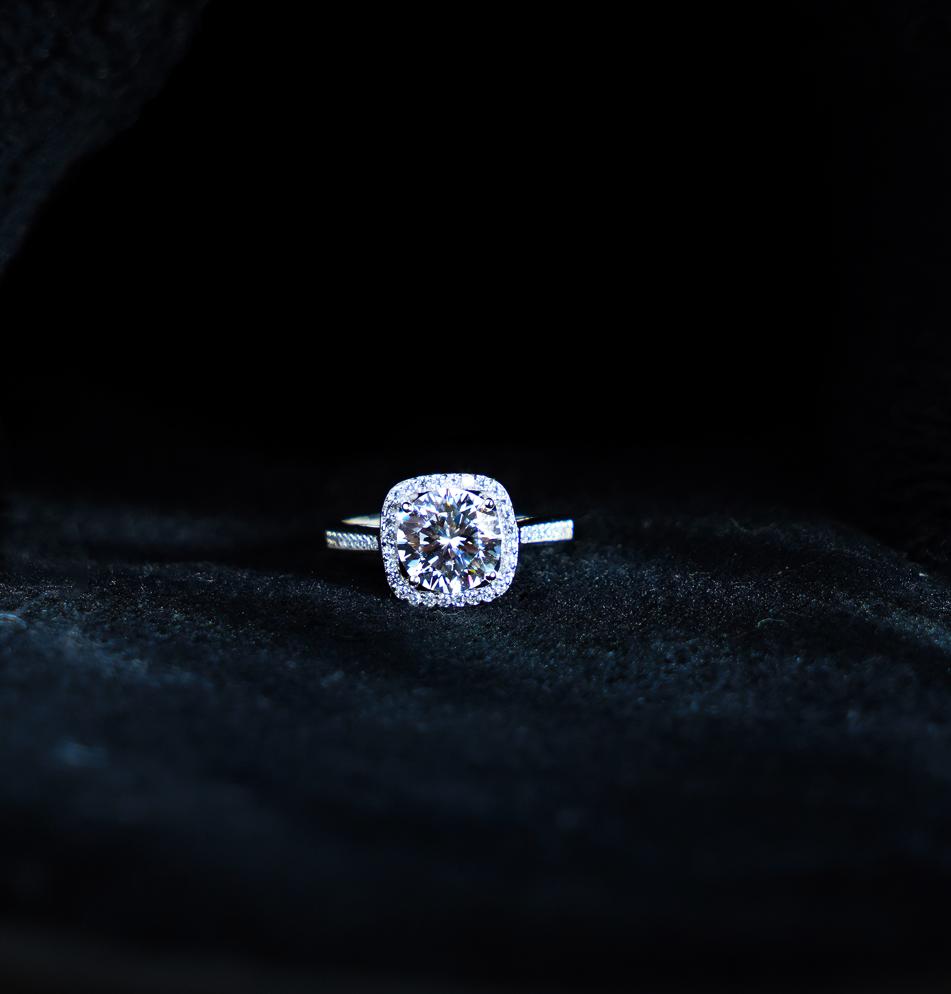 L925银莫桑石戒指 方形满钻戒指带证书百搭简约轻奢气质时尚