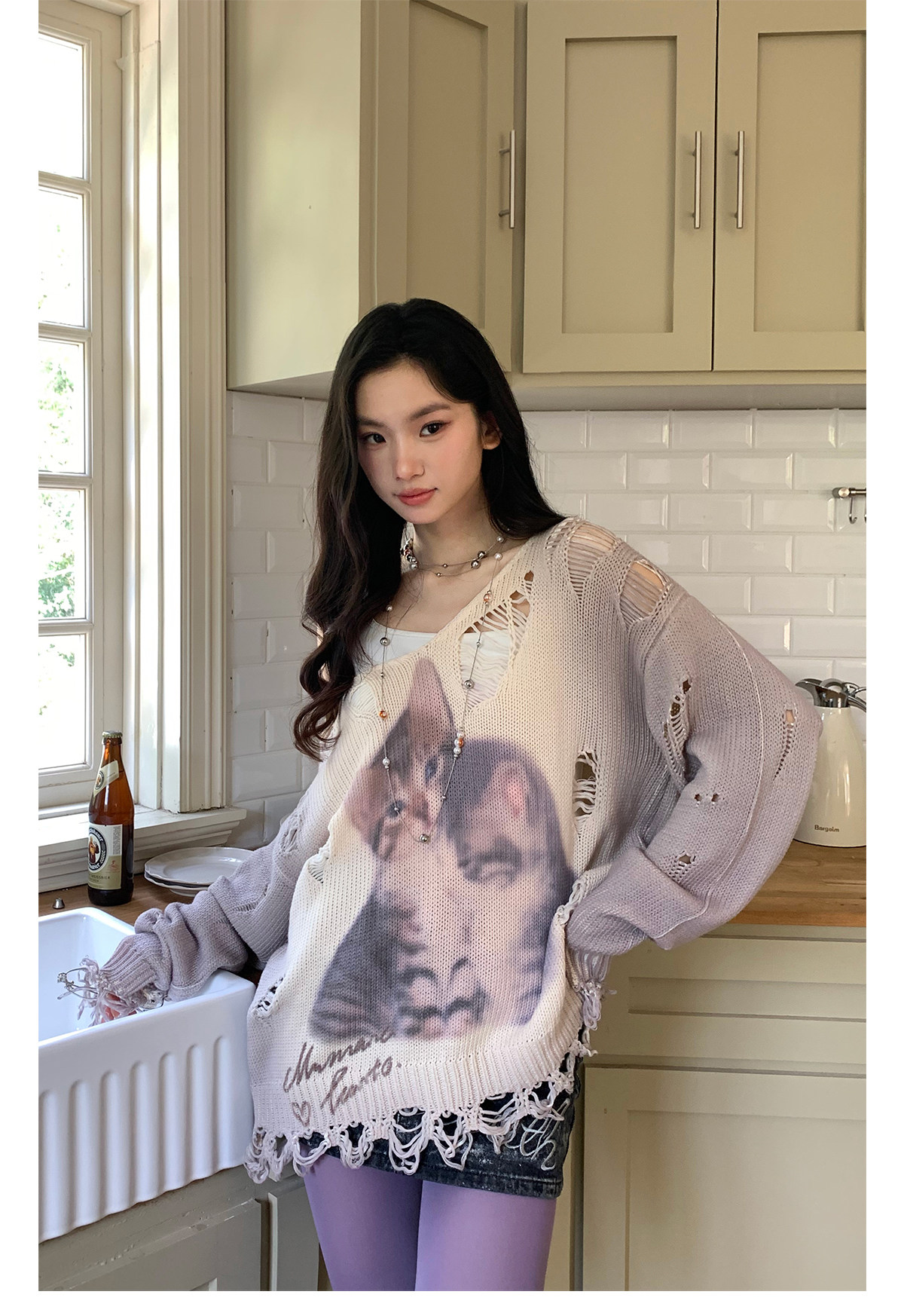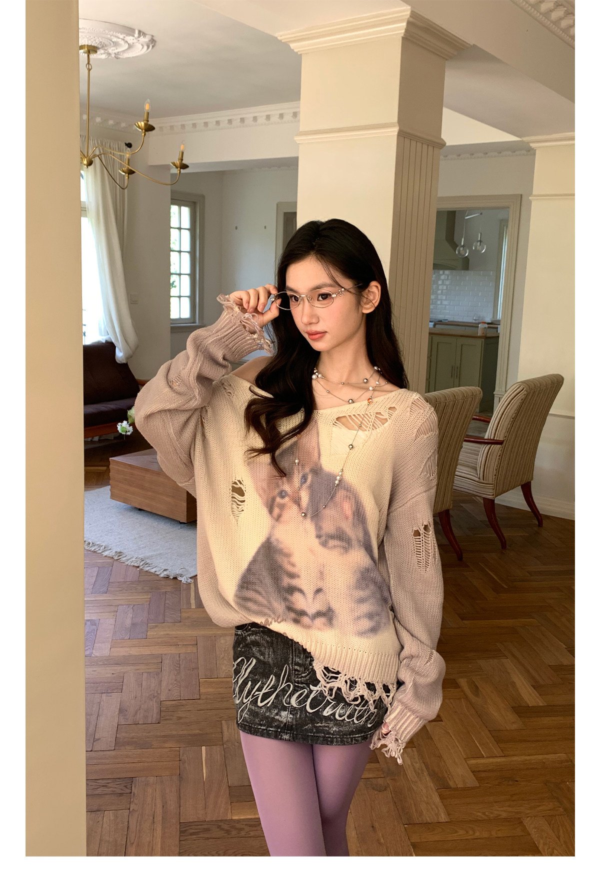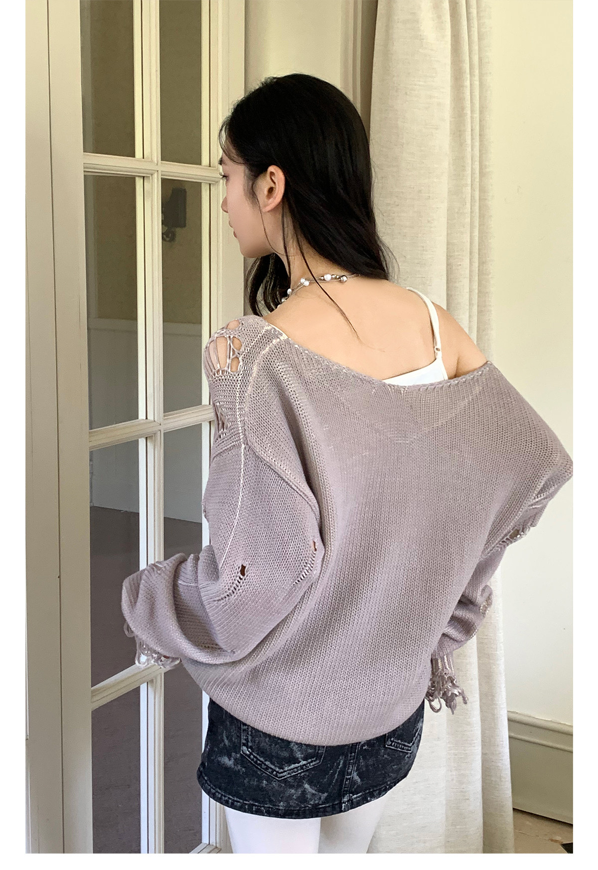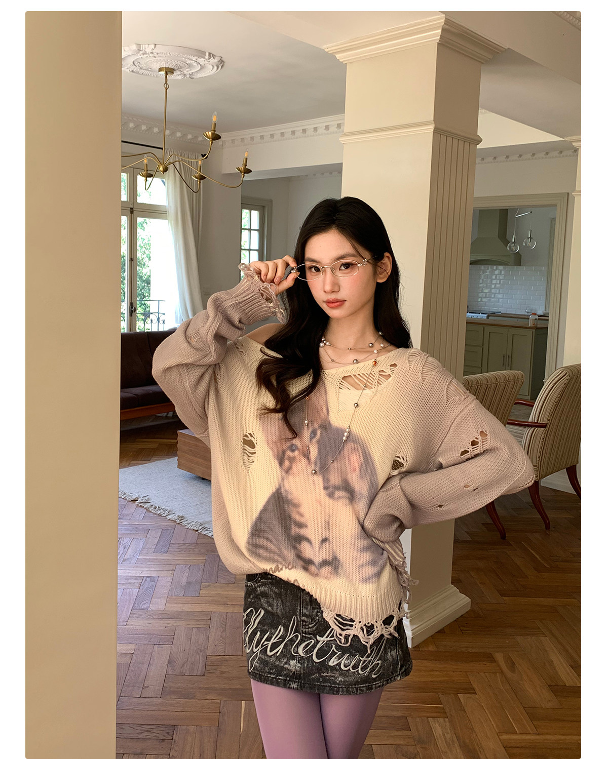 FTT FlyTheTruth『柔软禁区』 破洞毛衣女秋冬宽松慵懒上衣针织衫
