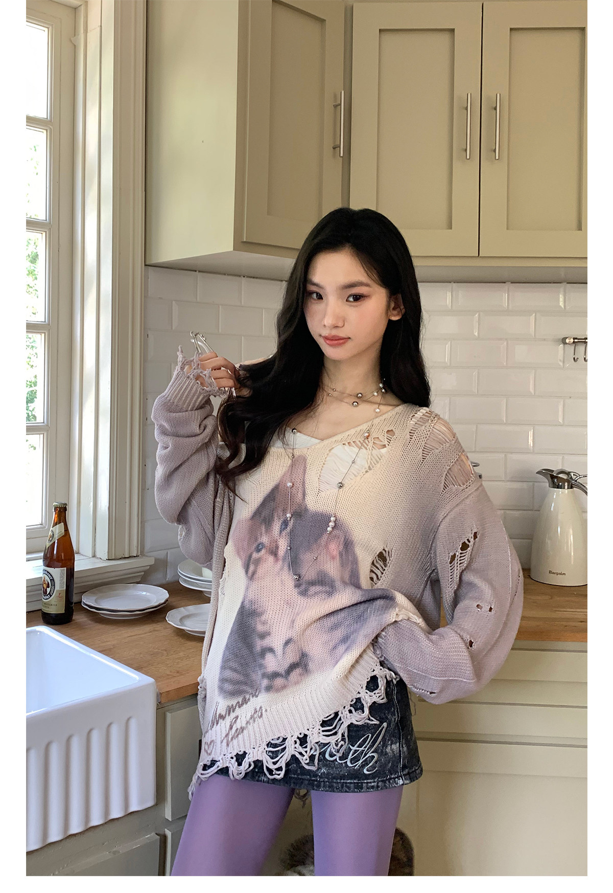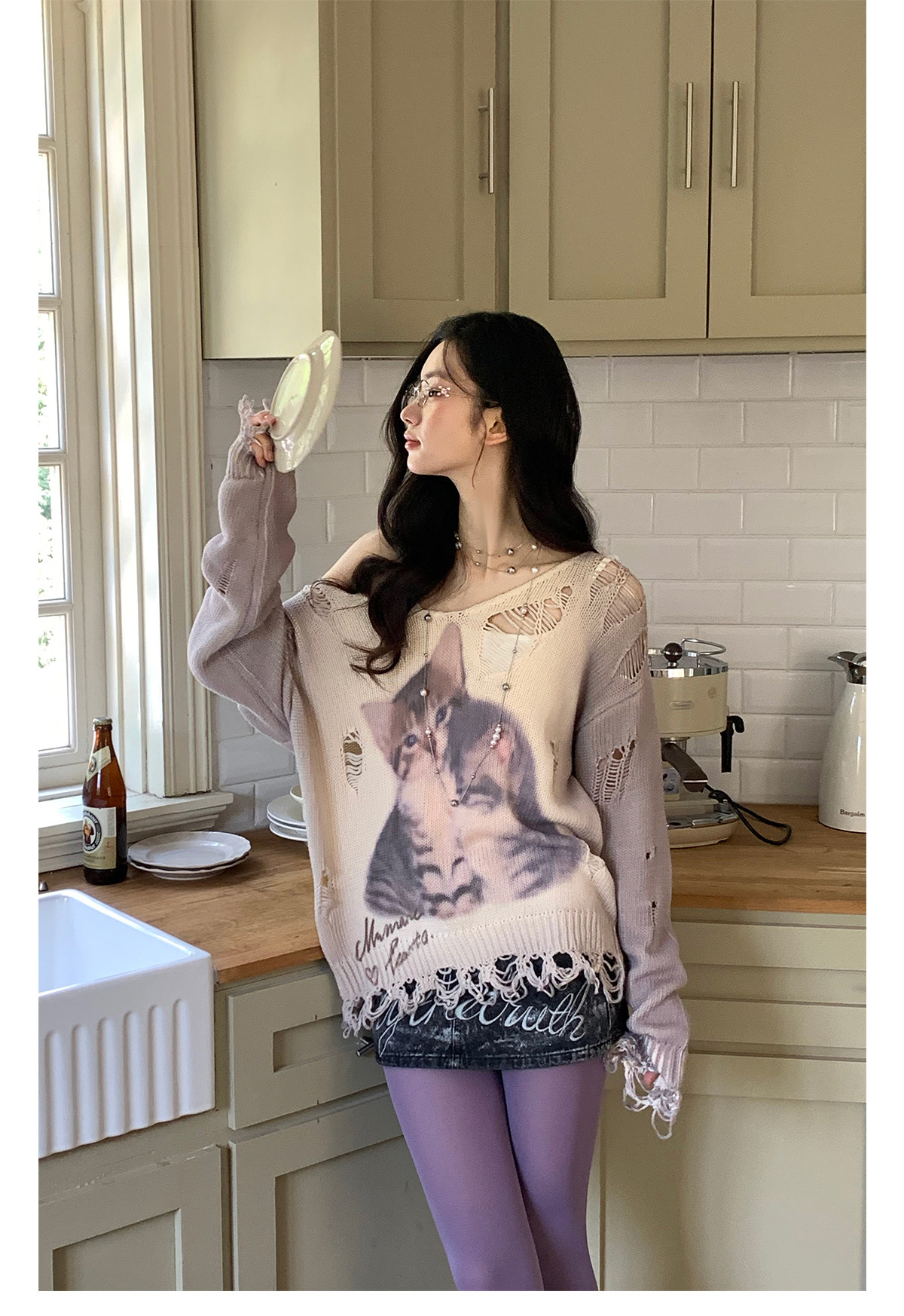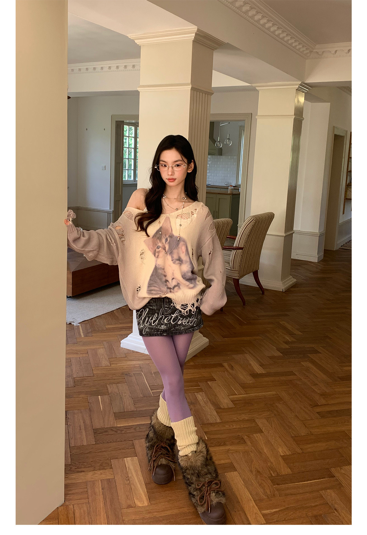 FTT FlyTheTruth『柔软禁区』 破洞毛衣女秋冬宽松慵懒上衣针织衫
