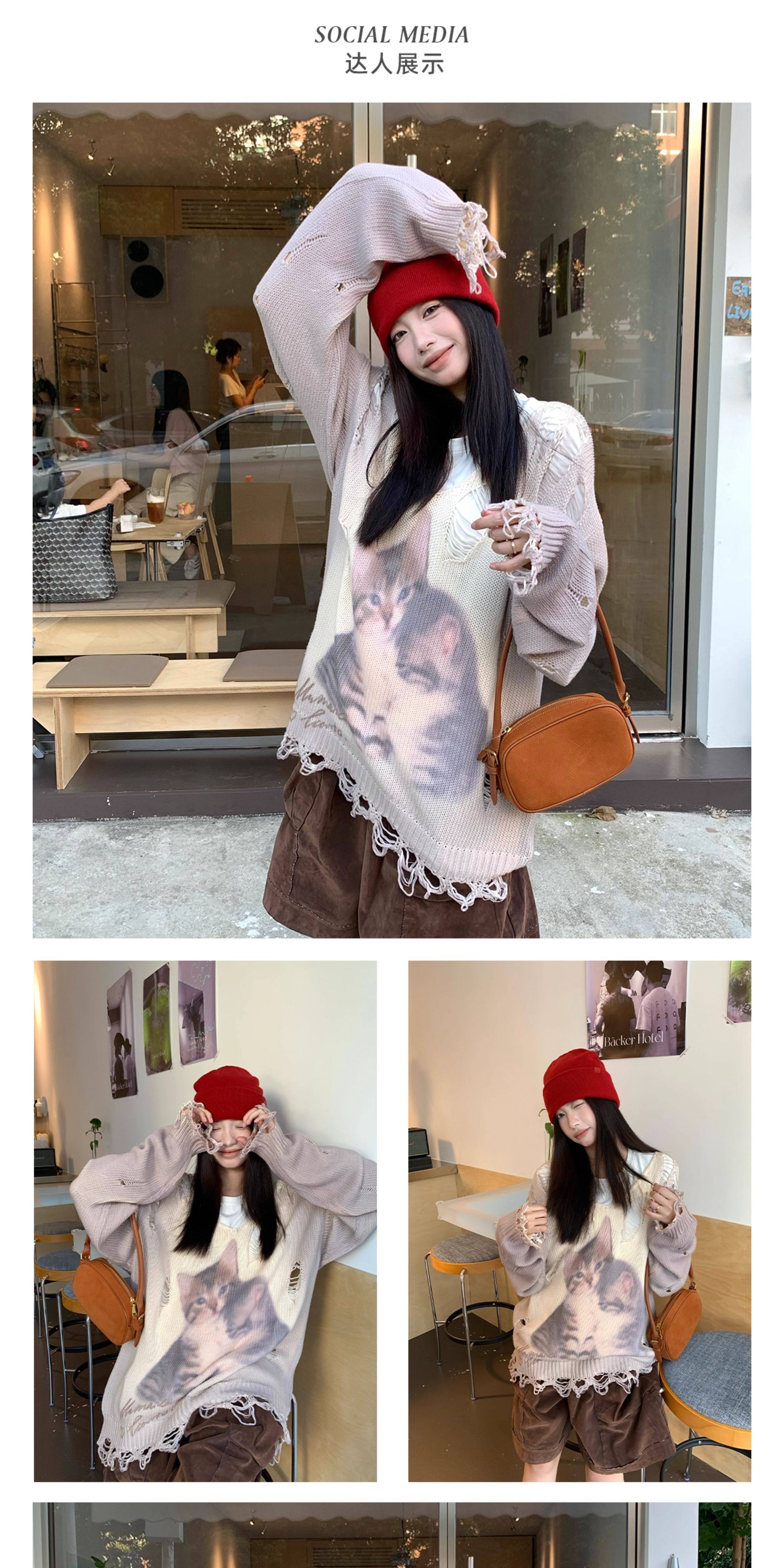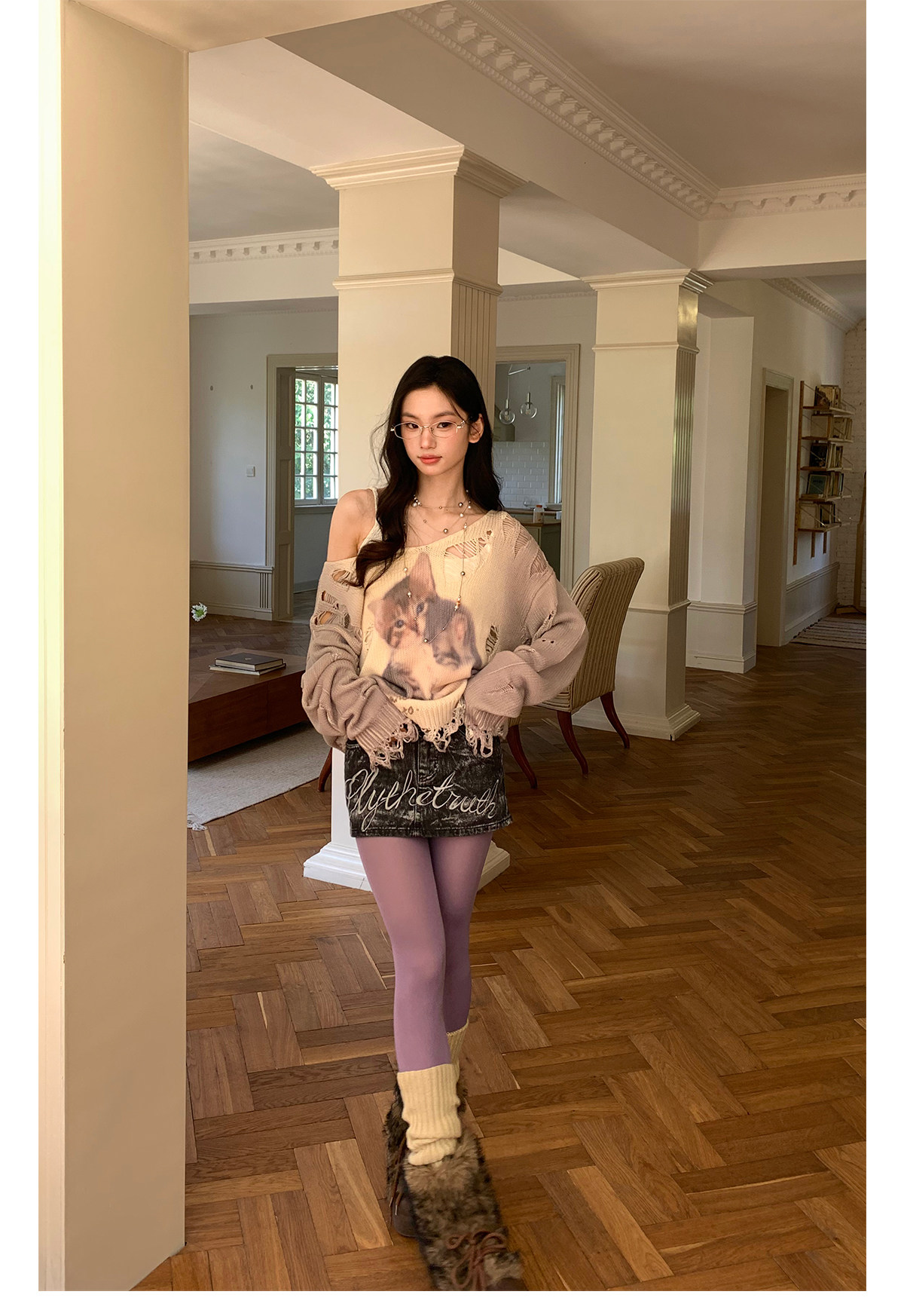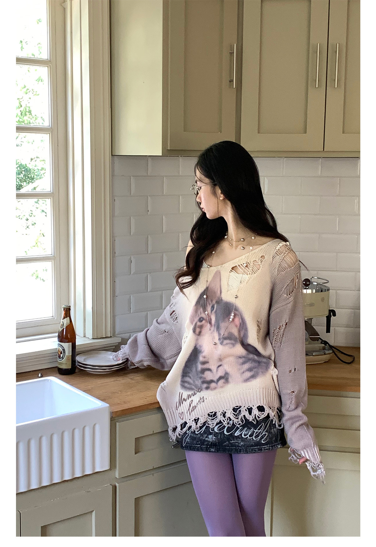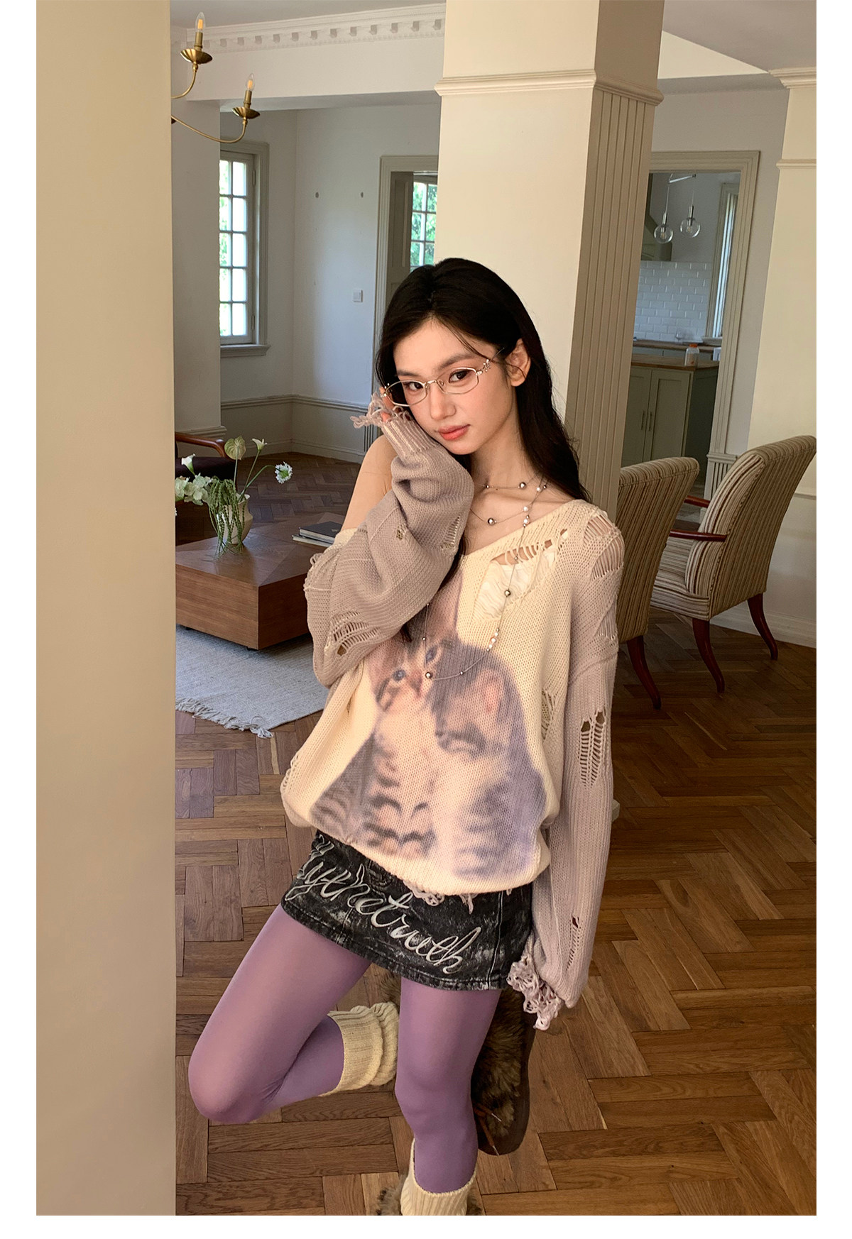 FTT FlyTheTruth『柔软禁区』 破洞毛衣女秋冬宽松慵懒上衣针织衫
