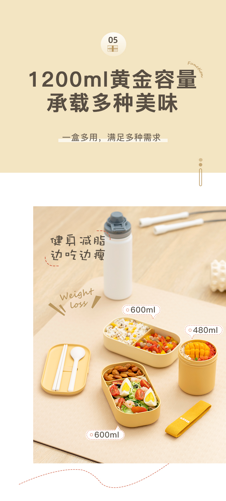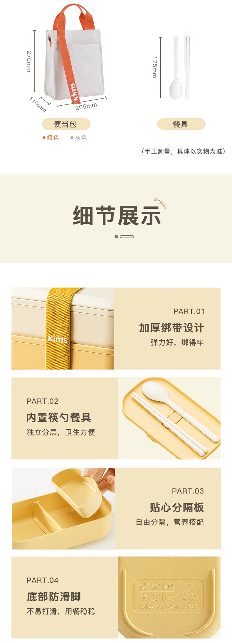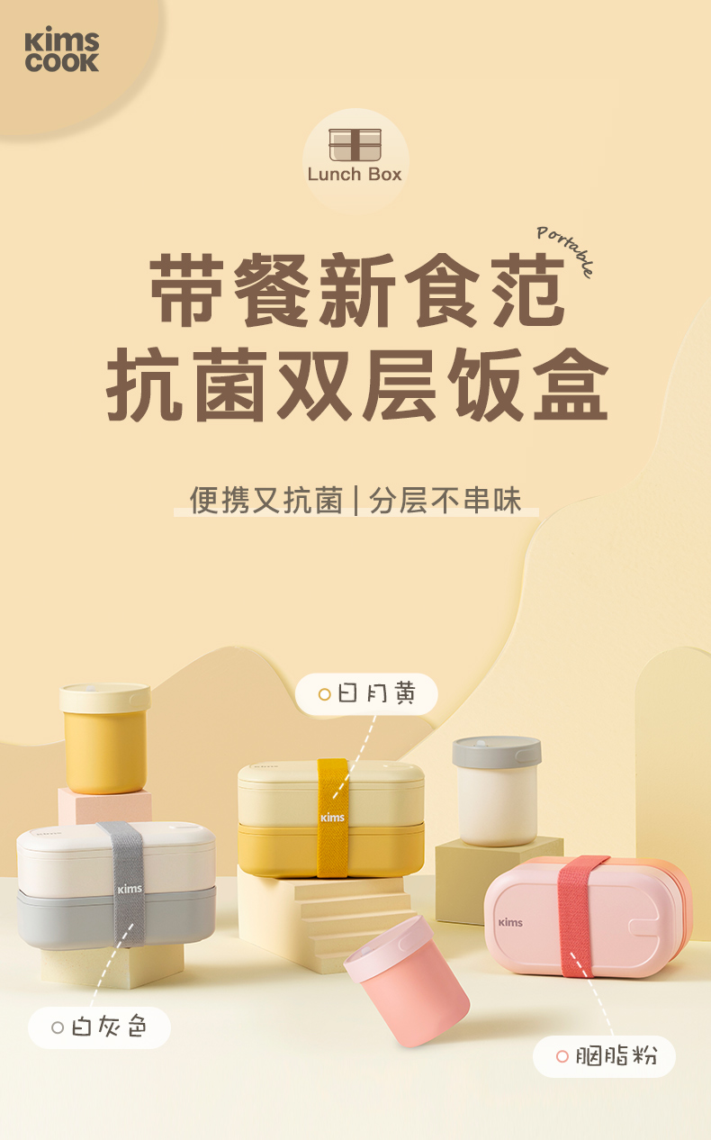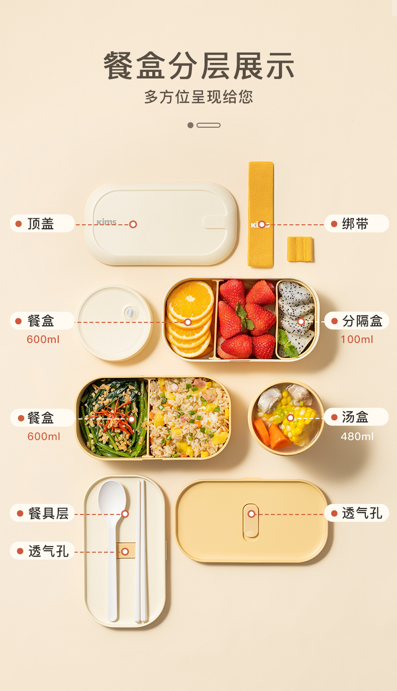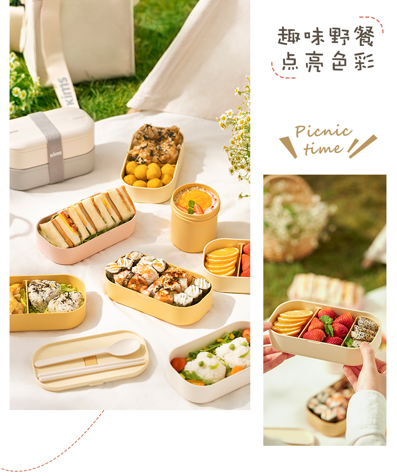 【品牌直发】KIMS COOK饭盒上班族可微波炉加热专用日式便当盒轻食分格女生带饭餐盒便携