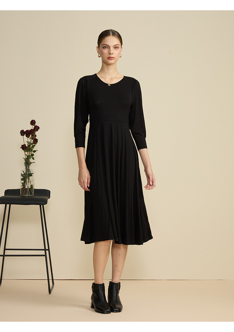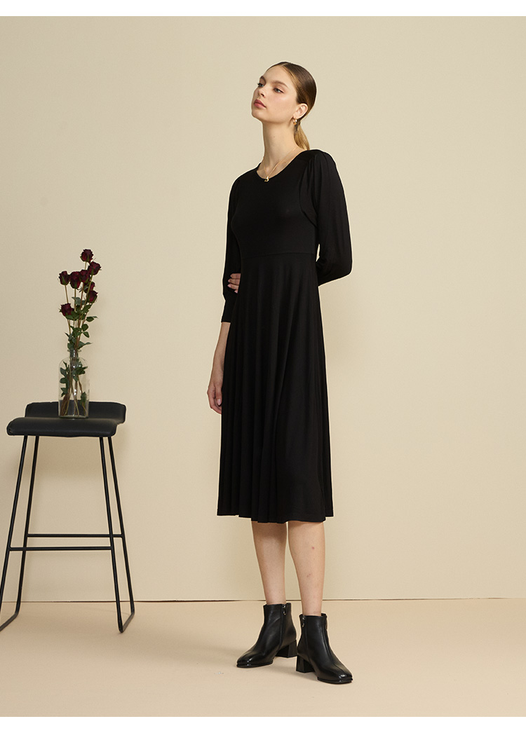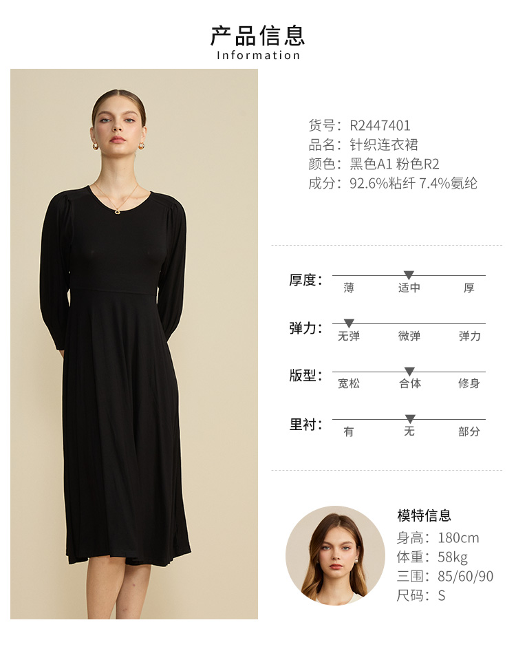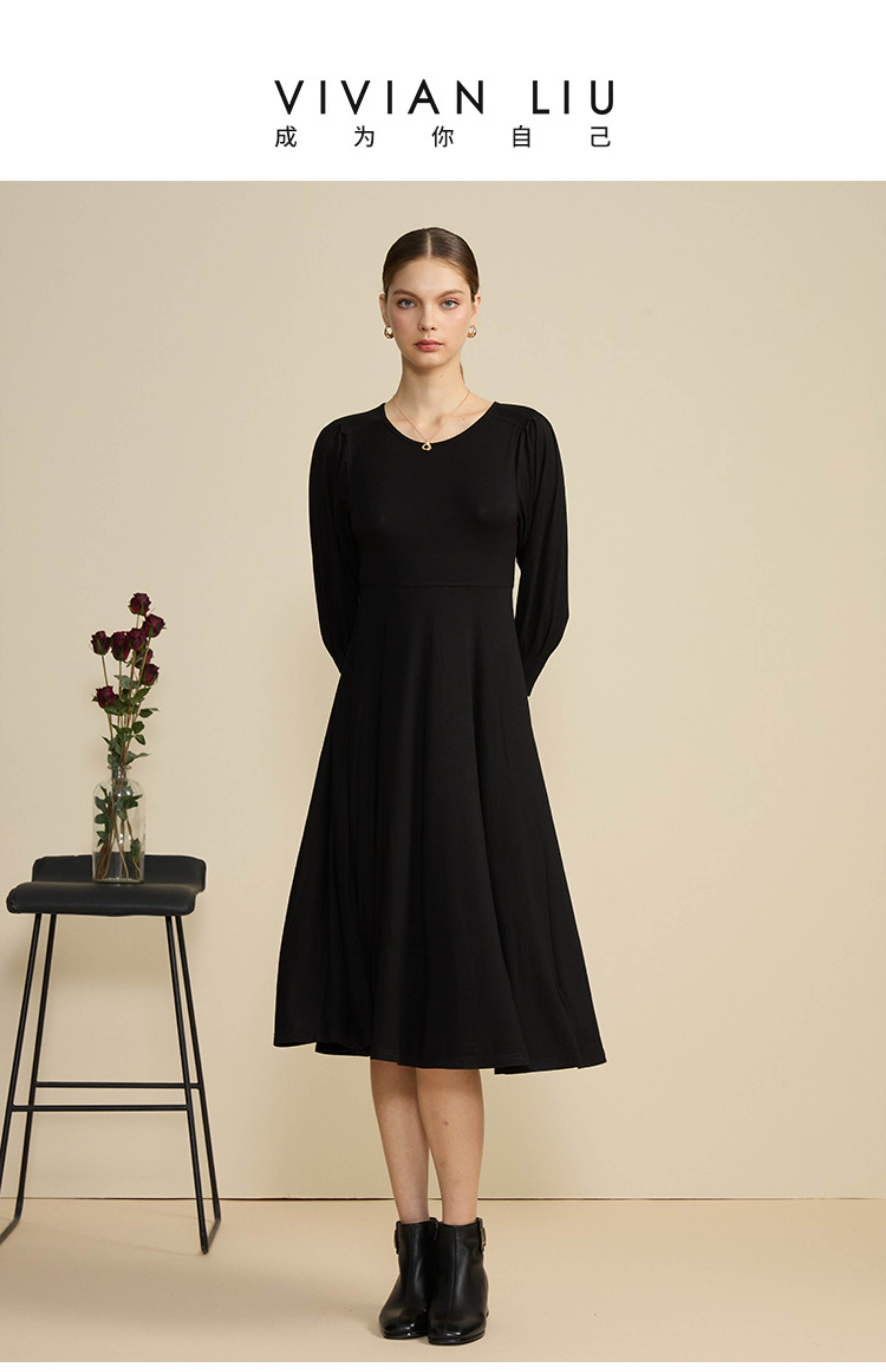 VIVIAN LIU薇薇安刘R2447401初秋女装新款圆领合体长袖连衣裙