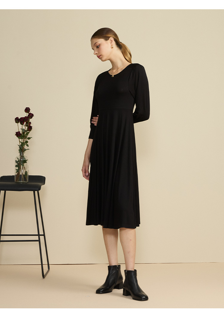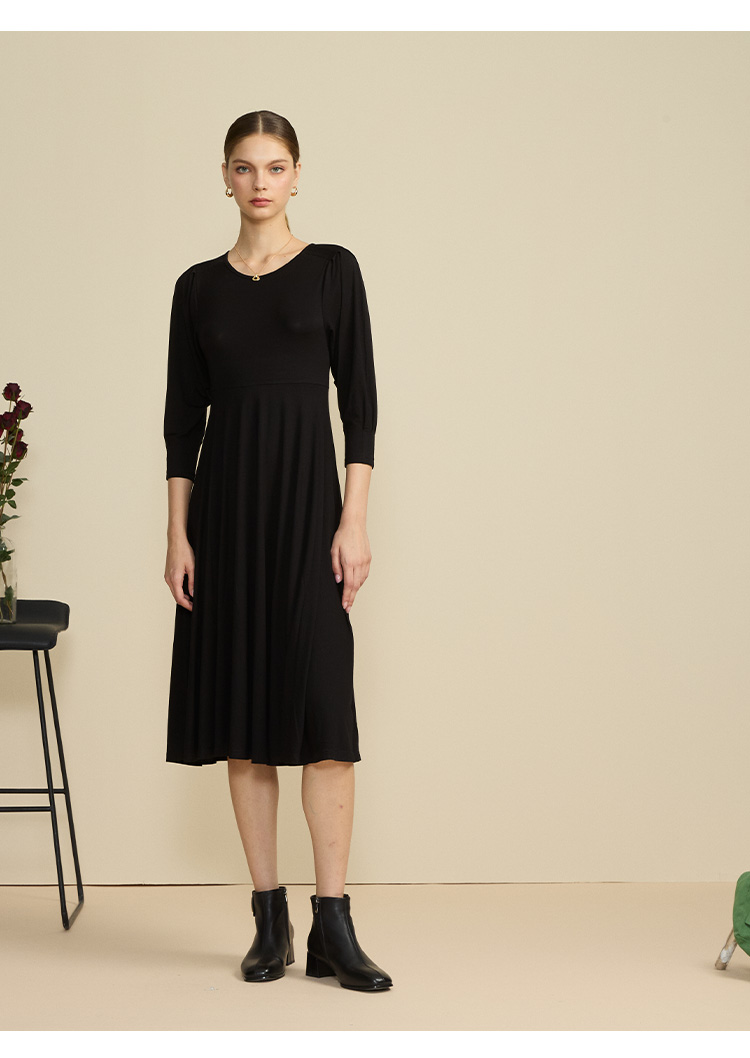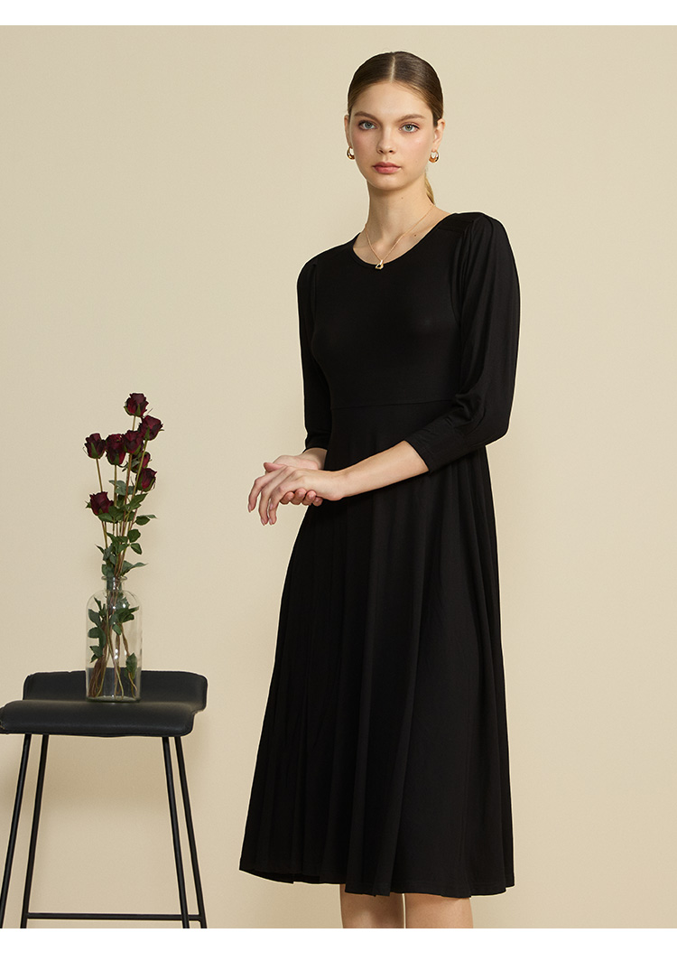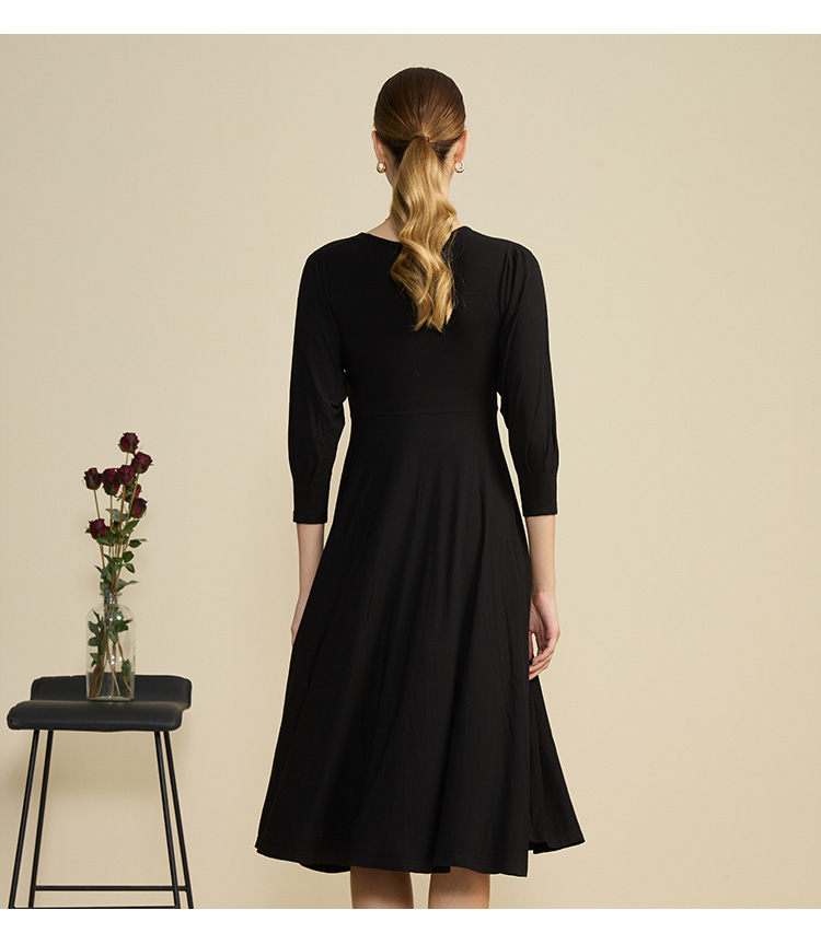 VIVIAN LIU薇薇安刘R2447401初秋女装新款圆领合体长袖连衣裙