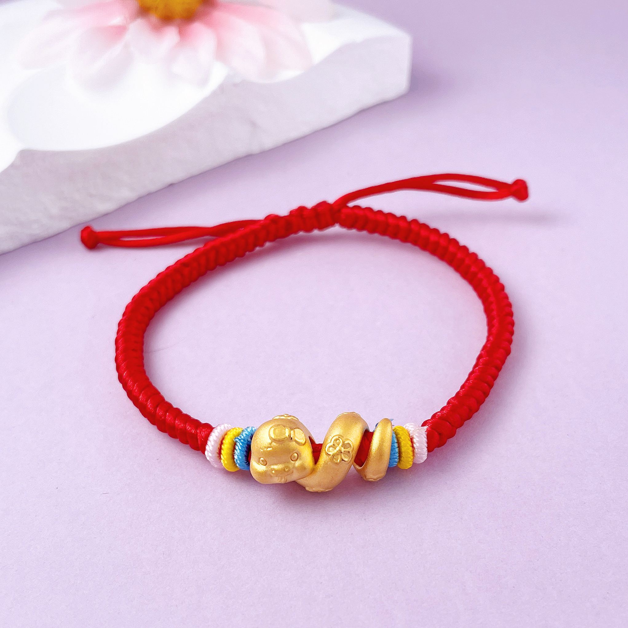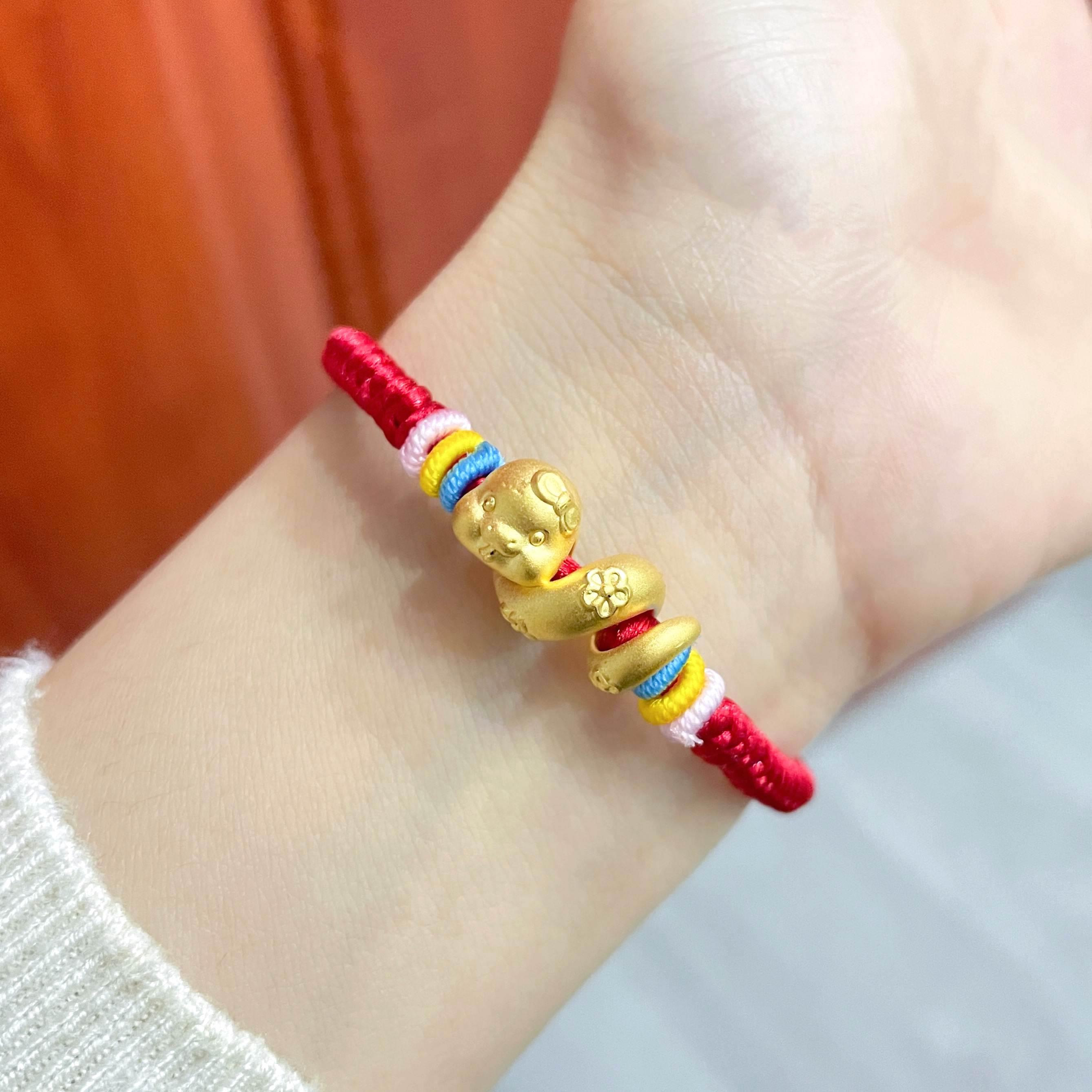 【限时7.5折】【定价黄金】足金 #蛇年新品 #生肖 3D硬金蛇年生肖手串卷卷蛇小花金蛇灵蛇编织绳调节成品手串(成人佩戴)(AA3DSC00559)预售产品下单后不退款不退货不换货不补差价
