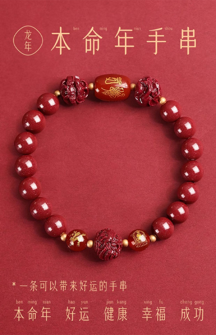 金六福吉祥朱砂生肖转运珠手串JLFZSC0594★