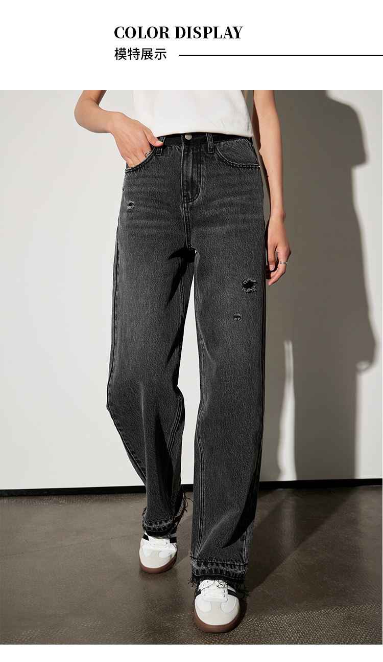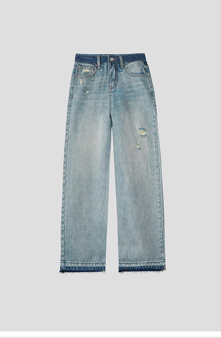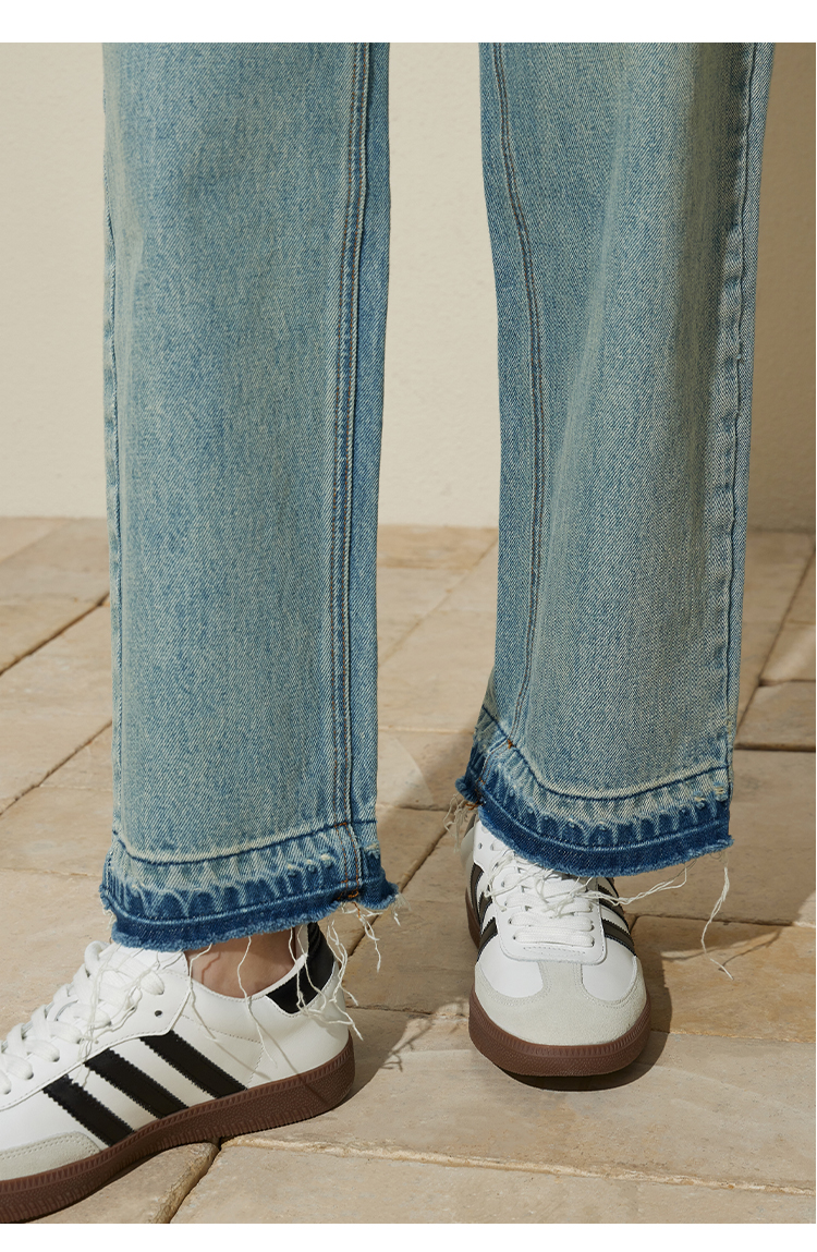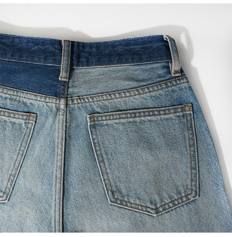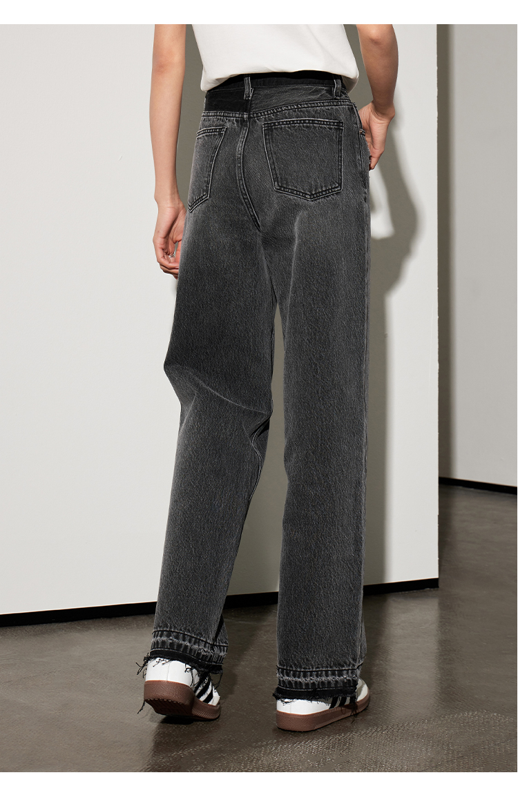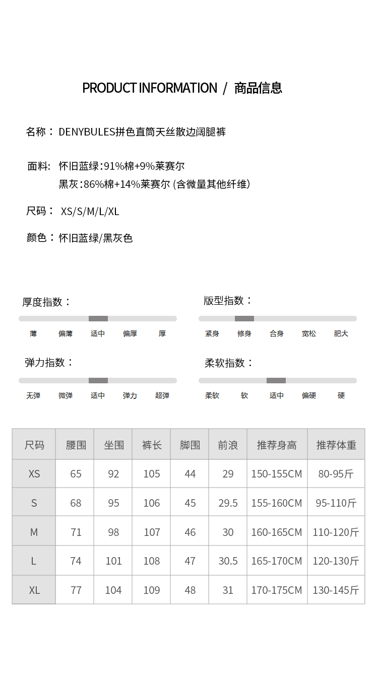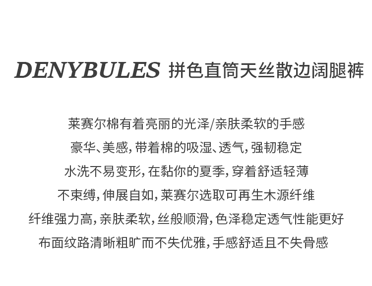 【好看好看】DENYBULES 夏季拼色直筒散边天丝阔腿裤休闲宽松显瘦复古撞色DB6108